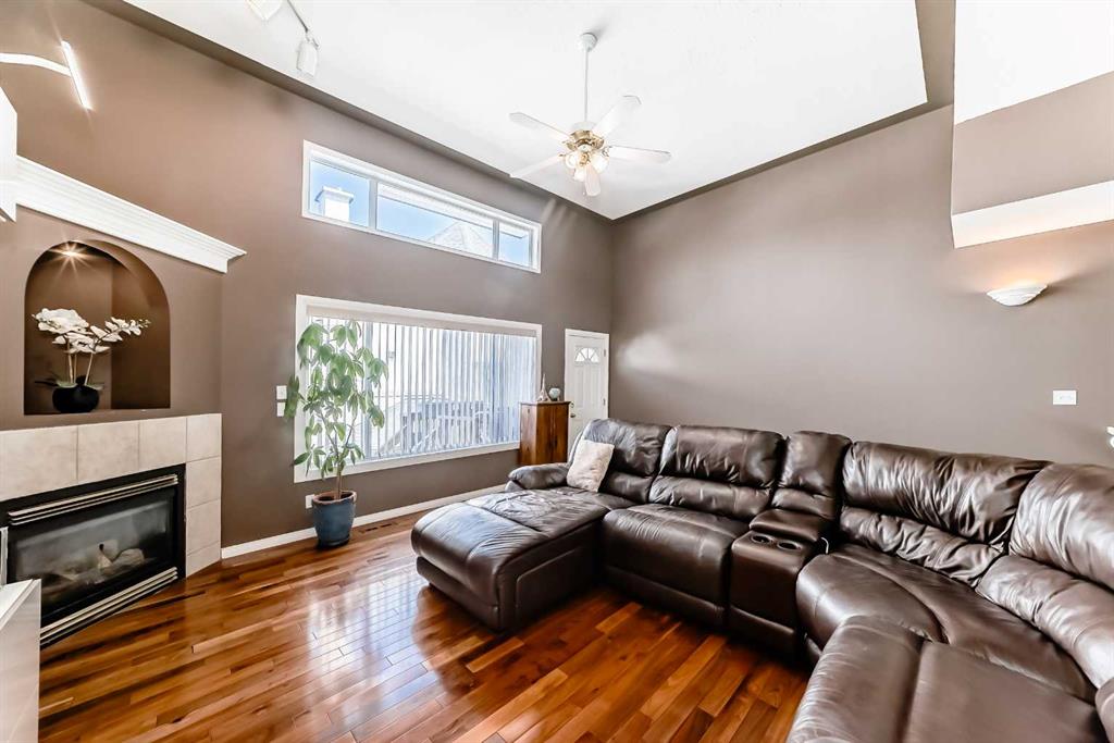 Located on the quieter street and with an oversized attached garage, the home welcomes you with a spacious foyer. Step up into the bright, open living room with high ceilings and beautiful hardwood flooring—an inviting space that immediately showcases the quality of the home.