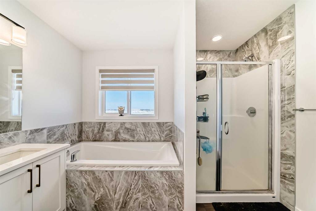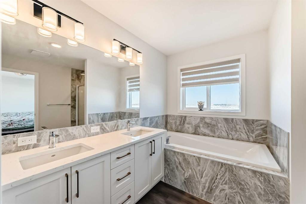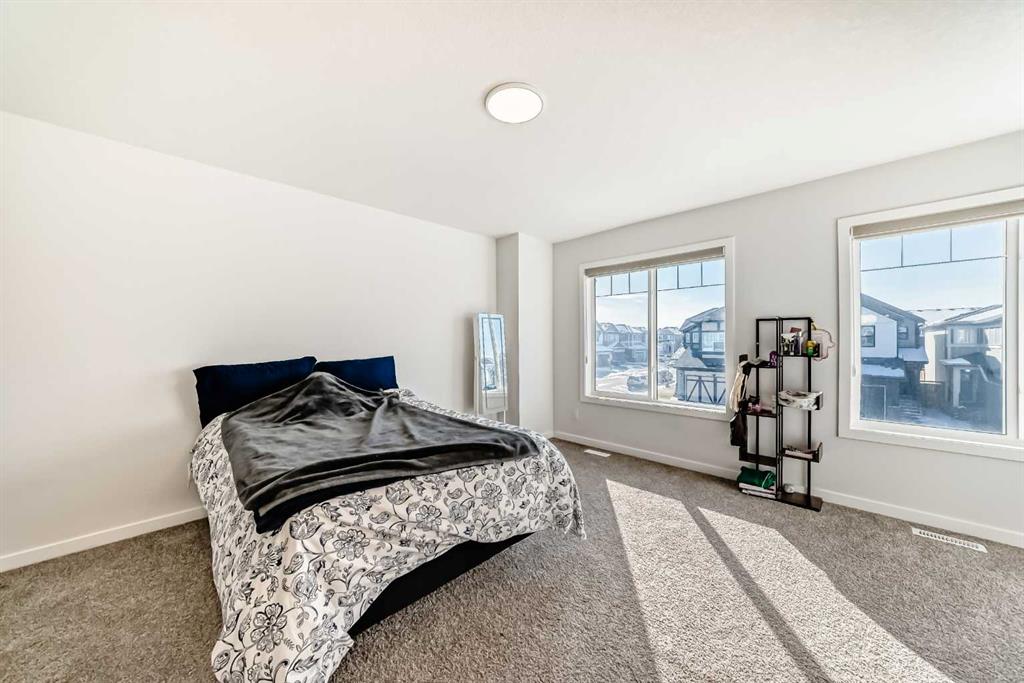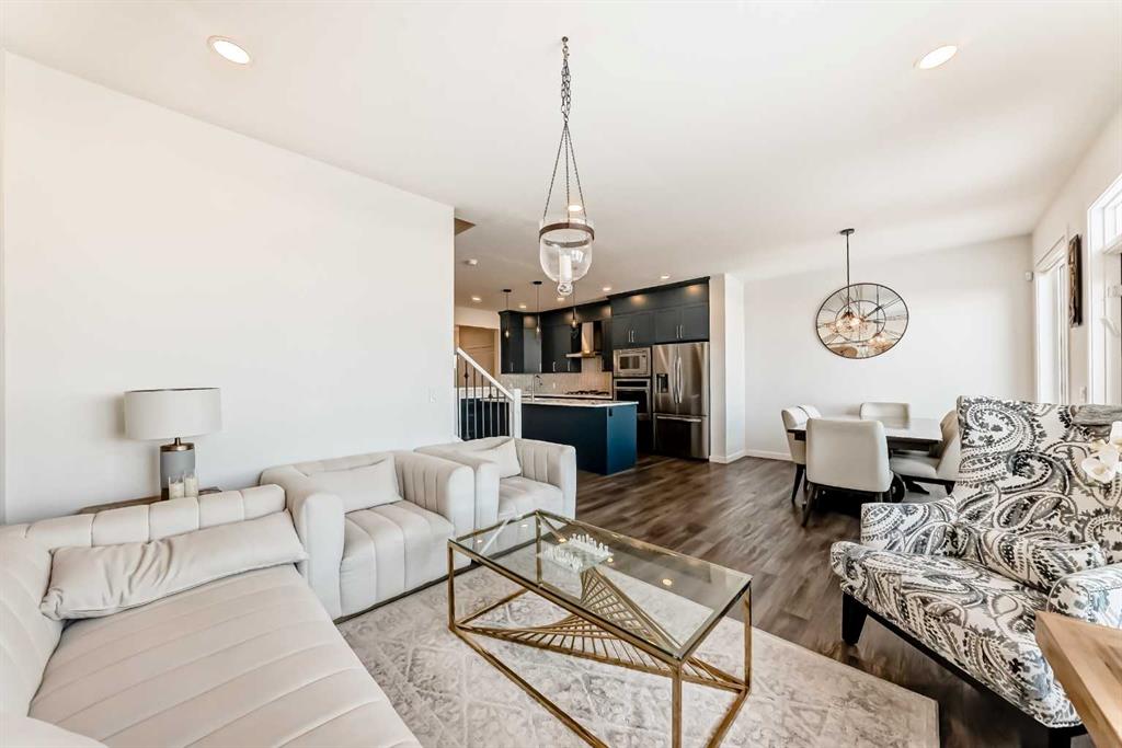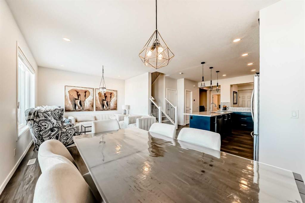 Move in before the school year starts and enjoy lake living all summer in the sought-after community of Mahogany. This beautifully designed 3-bedroom, 2.5-bath home offers 2,252 sq ft of stylish and functional living space, featuring an open-concept main floor with a standout kitchen complete with built-in appliances, a gas range, ceiling-height cabinets with crown moulding, a large island with ample storage, and an oversized pantry. The main floor also includes a convenient office, elegant open railings, and electric blinds throughout. Upstairs, all bedrooms are generously sized, with the secondary rooms offering walk-in closets and extra windows, while the primary suite boasts a luxurious 5-piece ensuite with a deep soaker tub and oversized shower. The basement is ready for future development with 9-foot ceilings and a bathroom rough-in. Outside, enjoy a fully fenced and landscaped yard with low-maintenance stone pathways and no rear neighbors, all just steps from parks, pathways, Mahogany Village Market, and with quick access to 88 Street and Stoney Trail for ultimate convenience.