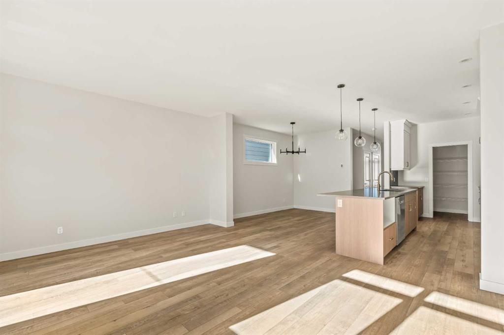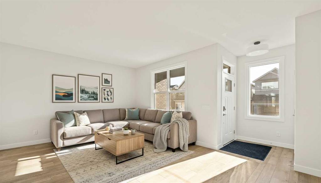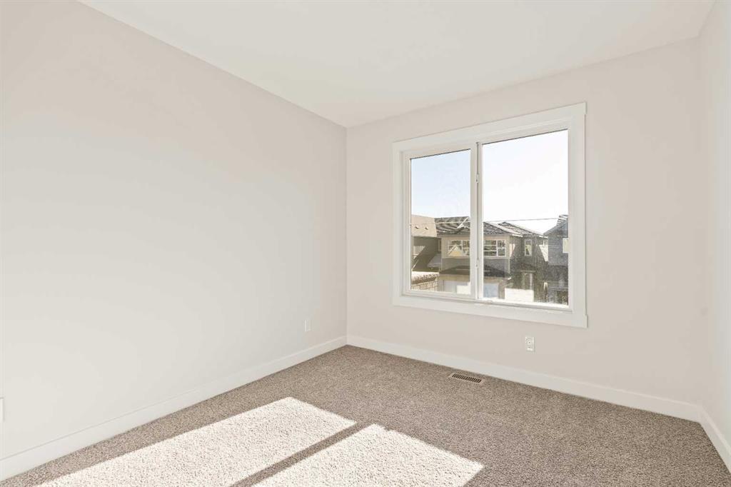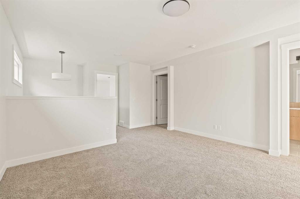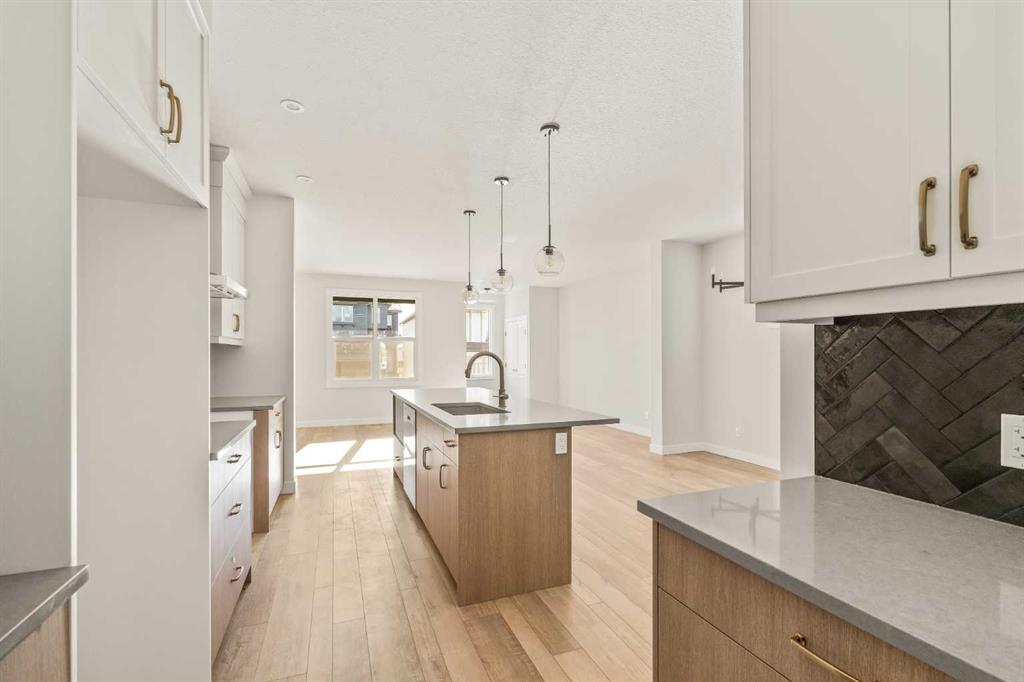 This brand new home, the ‘Oxford’, is an incredible opportunity in the desirable new community of Rockland Park and ready for immediate possession and includes a double detached garage! This home is situated on a bright and sunny lot with a southeast facing front yard – allowing natural light to pour through the main level all day long while offering west sun in the backyard during the evening. Featuring 3 bedrooms, 2.5 bathrooms and two living spaces + a home office / flex space and an undeveloped basement with a private side entrance, this property is perfect for investors, multi-generational living or those that want a large family home with space to grow! Built by Brookfield Residential, the Oxford is a stunning home boasting nearly 2,000 square ft. of living space. This open concept main floor has 9 ft. ceilings and extended height cabinets and a large island with a gourmet kitchen package including chimney hood fan, built-in microwave and gas range. The main floor features a large great room with plenty of natural light and a main floor flex space with double doors for added privacy – making it perfect for a work-from-home space! Luxurious and resilient LVP and tile flooring flow throughout the main level, making it perfect for those with children and pets. The upper level features a central bonus room that separates the primary bedroom from secondary rooms. Enjoy the luxury of this large primary suite that spans nearly 13’x13′ and is complete with a beautiful ensuite bathroom with dual sinks and a walk-in shower. Two more bedrooms, a full bathroom and a laundry room complete the second level. The basement has direct access via a side entrance and is undeveloped but includes 9′ foundation walls and rough-ins for a future suite (subject to City of Calgary approval)! Completing the home is a rear BBQ gas line for daily convenience and a double gravel parking pad with ample space to accommodate a garage if desired in the future. This home is brand new and comes with builder warranty + Alberta New Home Warranty!