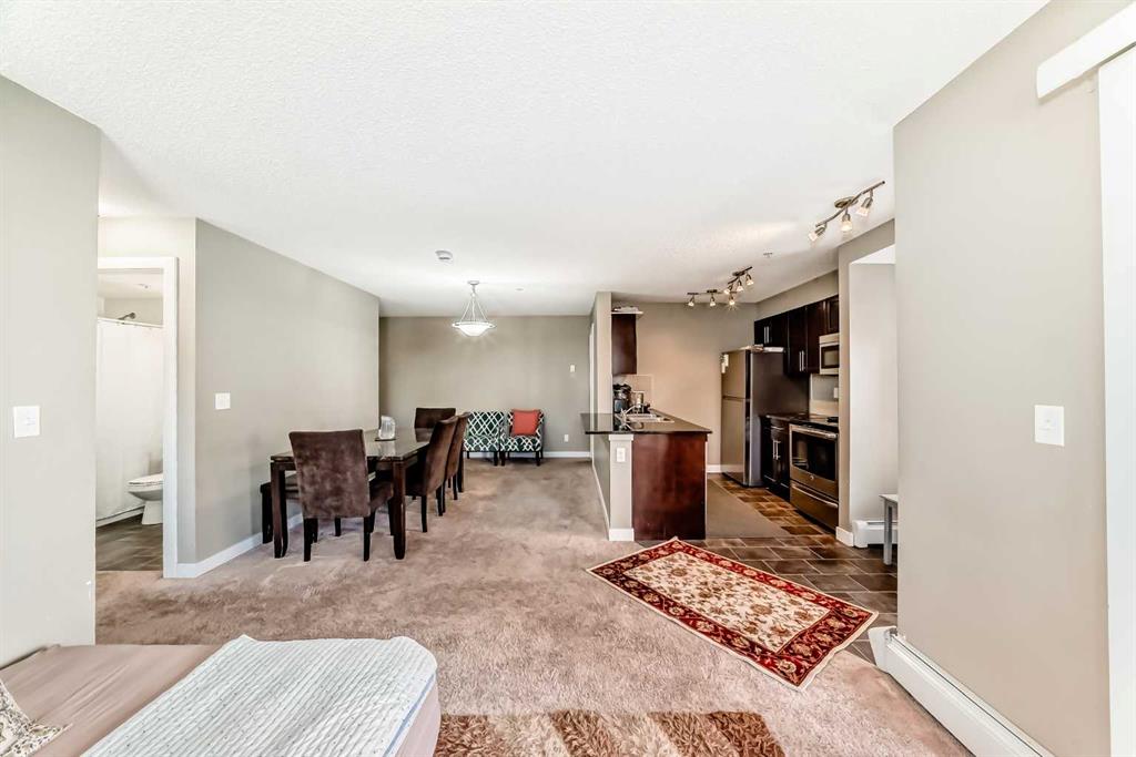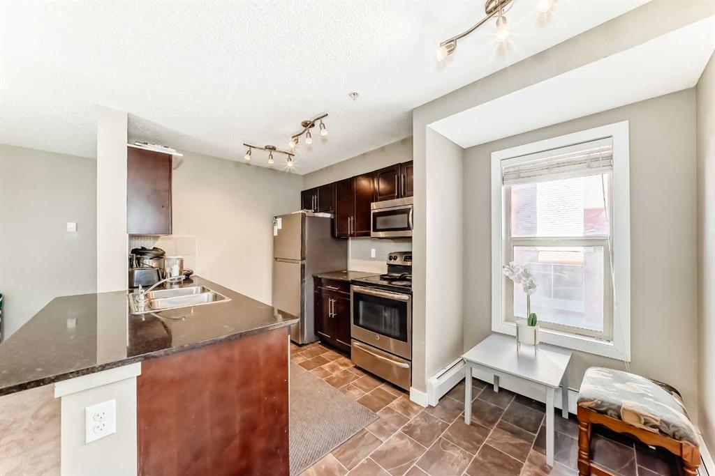 Hello, Gorgeous! Welcome to 8201-403 Mackenzie Way SW in Airdrie. This beautifully updated corner unit offers 2 bedrooms and 2 bathrooms, combining modern finishes with everyday convenience. The open-concept layout is filled with natural light and features real wood cabinetry, granite countertops in both the kitchen and baths, and a full stainless steel appliance package. The spacious primary suite includes a walk-in closet and an upgraded ensuite with a custom tiled shower. A second bedroom and full bath provide space for guests or a home office, while the dedicated office nook, in-suite laundry, and private balcony add comfort and functionality. Enjoy peace of mind with your own heated underground parking stall and condo fees that include water and heat. Perfectly located within walking distance to shopping, restaurants, and Airdrie’s scenic walking paths, this home offers stylish, low-maintenance living in a vibrant community.