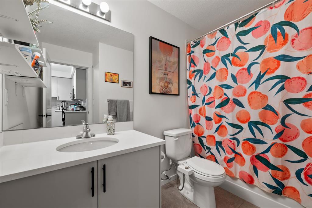 This bright and spacious 2 bedroom, 2 bath condo offers over 800 sq. ft. of comfortable living space with a clean, open layout. The modern kitchen features stylish finishes, and the private balcony is perfect for morning coffee or relaxing in the evening. Both bedrooms have large windows with plenty of natural light. The primary bedroom includes a walk-through closet with built-in organizers, and the laundry room adds extra convenience with custom shelving. Enjoy air conditioning, underground parking, and your own storage unit. Located just steps from shopping, groceries, dining, and more. Everything you need is right nearby. Perfect for first-time buyers, downsizers, or investors. Book your showing today!