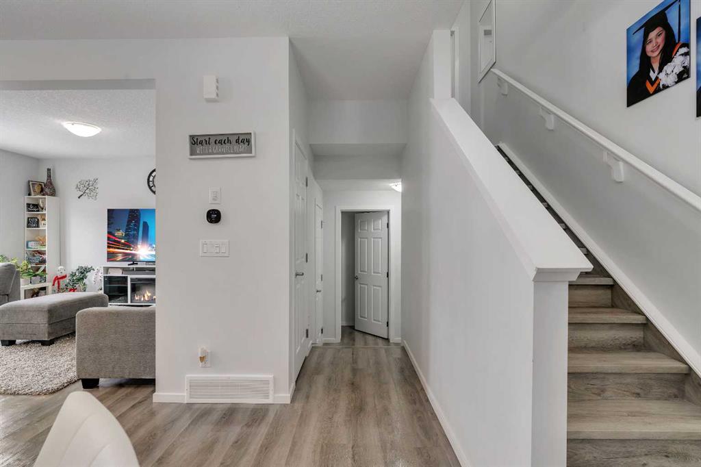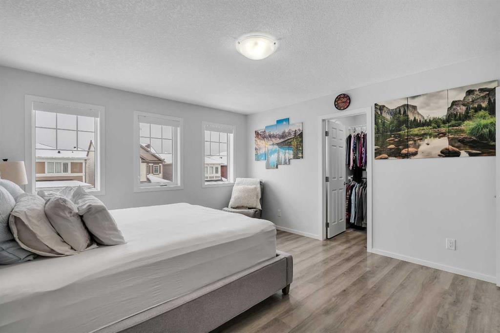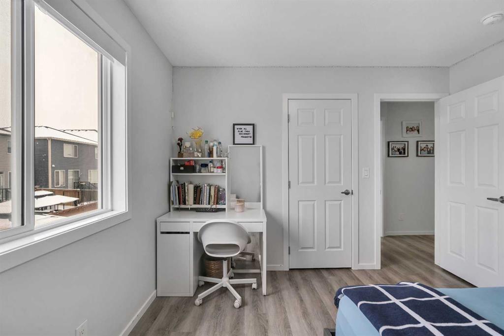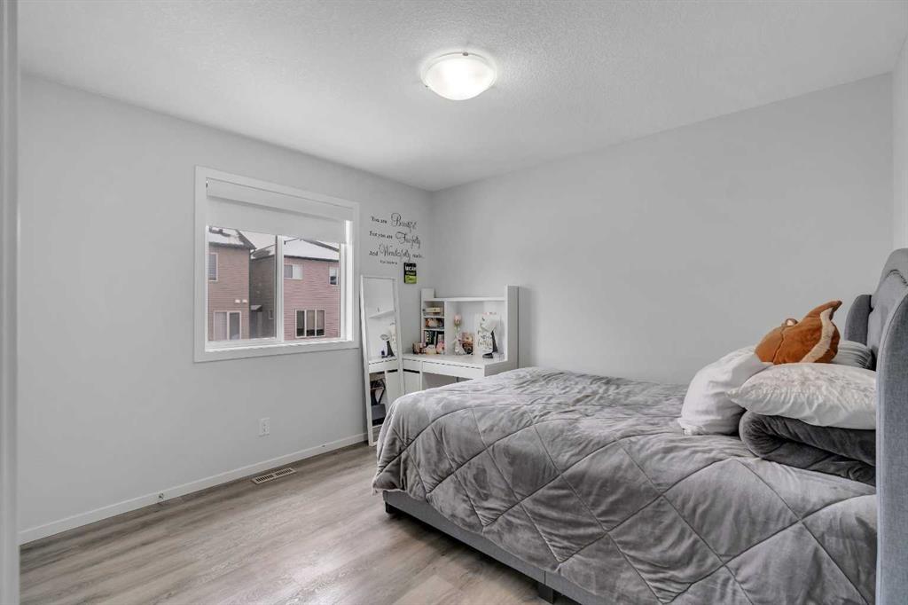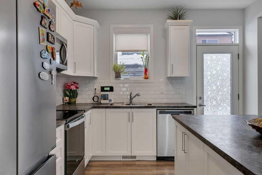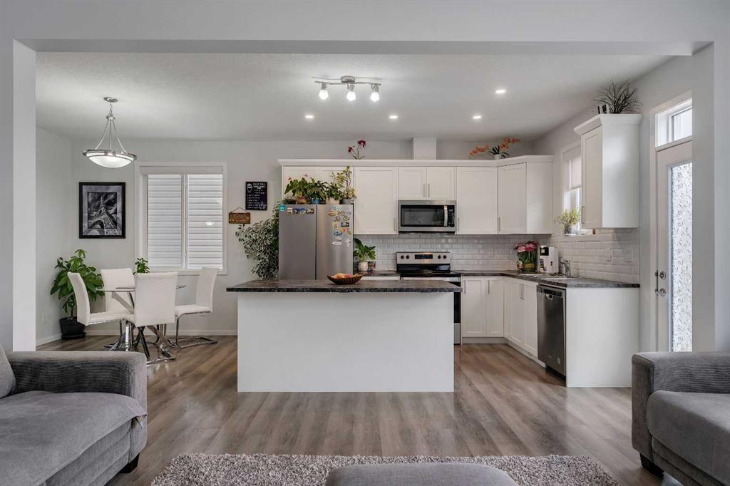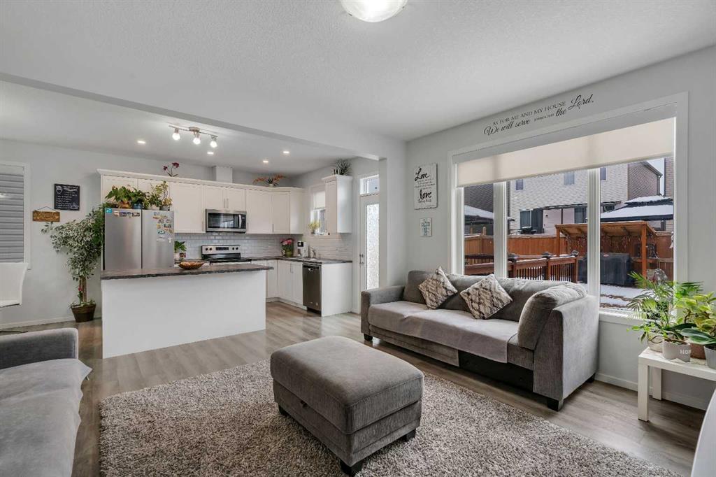 Welcome to 821 Windrow Green SW, a beautifully designed home offering modern finishes, generous living space, and exceptional functionality for today’s lifestyle. Situated on a quiet street with charming curb appeal, this home features a sun-filled south-facing backyard with upgraded landscaping, perfect for relaxing or entertaining. Step inside to an open-concept main floor designed for both everyday living and hosting guests. The stunning kitchen showcases crisp white cabinetry, stainless steel appliances, a classic white subway tile backsplash, and abundant counter space, along with a large center island with eating bar—ideal for casual meals or gathering with family and friends. The bright living room is filled with natural light from the large south-facing windows overlooking the backyard, creating a warm and inviting atmosphere. The main floor is completed with a convenient powder room, additional closet storage, and direct access to the double attached garage. Upstairs, the thoughtful layout provides privacy and comfort with a spacious bonus room separating the primary suite from the two secondary bedrooms. The expansive primary retreat features a large walk-in closet with ample shelving and hanging space, along with a luxurious 5-piece ensuite complete with dual sinks, generous counter space, and a deep soaker tub. An upper-floor laundry room adds to everyday convenience. Throughout the home you’ll appreciate hard surface flooring—including the stairs and upper level—modern vinyl plank flooring, knockdown ceilings, and transom windows above exterior doors for added natural light. Room sizes are generous, offering comfortable living for families of all sizes. Additional highlights include an oversized hot water tank ideal for larger families and partial basement development featuring a fourth bedroom, providing flexibility for guests, a home office, or growing families.