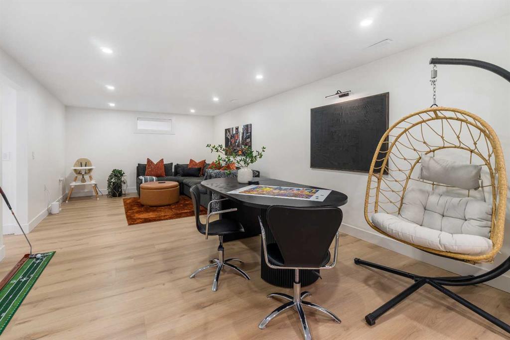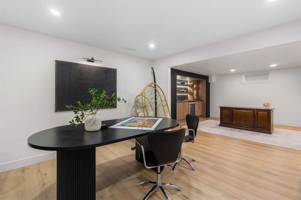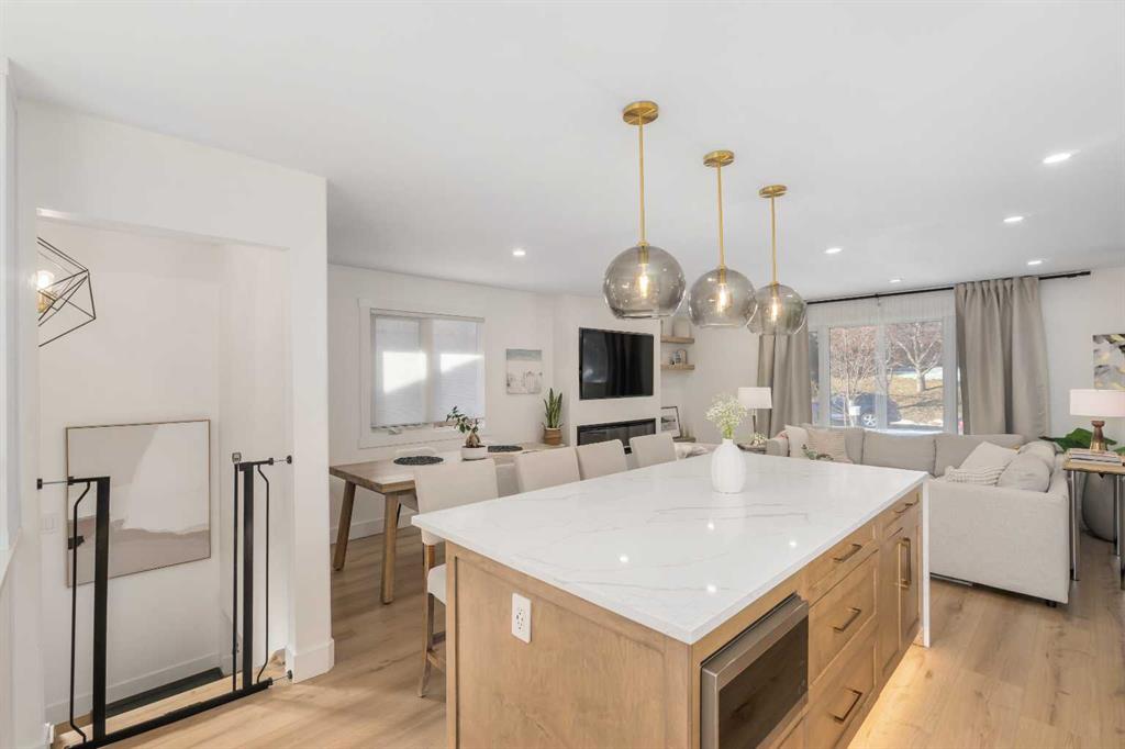Experience a refreshing new twist on the renovated home—one that honours the original character and thoughtful space planning while introducing a modern design with carefully curated materials and a warm, inviting colour palette. Unlike the typical all-white renovations, this home offers a balanced and sophisticated aesthetic from the moment you step through the front door. The main floor welcomes you with an open and airy layout that seamlessly connects the kitchen, dining area, and living room. At the heart of the home is a beautifully designed kitchen featuring a large centre island—intentionally uninterrupted by sinks or cooktops—allowing the premium quartz surface to shine as both a functional workspace and gathering place. Natural wood grain cabinetry on the island adds warmth and contrast to the elegant off-white upper cabinets. A farmhouse sink provides both style and practicality for handling larger pots and pans, while the window above offers a peaceful view of the spacious backyard. Ample cabinetry ensures plenty of storage, with room to expand if desired. The dining area comfortably accommodates gatherings of eight and flows effortlessly into the living room, where a sleek electric fireplace creates a welcoming focal point. Above the fireplace, a perfectly framed niche offers space for artwork or a mounted television, complemented by wood shelving with integrated lighting. The living room provides a backdrop of large windows that fill the space with natural light. The main level has three bedrooms, including a primary retreat with a convenient 2-piece ensuite and walk-in closet, along with two additional bedrooms located near the stylish 4-piece bathroom. The fully developed basement expands the living space with a large family room and an impressive games and entertainment area complete with a modern wet bar that could rival any downtown lounge. A generous fourth bedroom comfortably fits a king-sized bed with nightstands, and a contemporary 3-piece bathroom completes this level. Outside, the large backyard offers mature trees and a welcoming outdoor space featuring a concrete patio and Rundle rock firepit area—perfect for relaxing evenings or entertaining. Additional features include Central A/C, and an extra-wide double detached garage adds convenience and functionality. Situated in the established community of Canyon Meadows, this home offers excellent access to nearby schools including Canyon Meadows Elementary, St. Catherine Elementary, Robert Warren School, and Dr. E.P. Scarlett High School. Residents enjoy exceptional amenities such as Fish Creek Provincial Park, Canyon Meadows Golf & Country Club, the Canyon Meadows Aquatic & Fitness Centre, Trico Centre for Family Wellness, Southcentre Mall, and Willow Park Village. Commuting is effortless with convenient access to Macleod Trail, Anderson Road, and Stoney Trail, along with a short walk to the Canyon Meadows LRT Station.