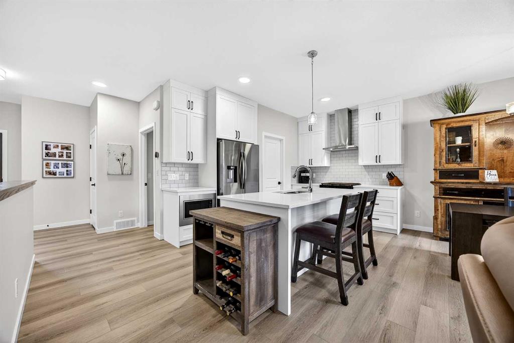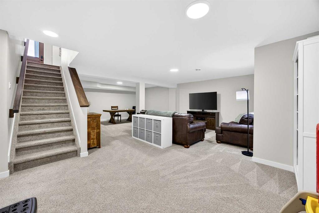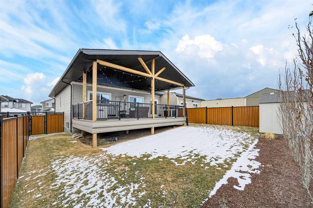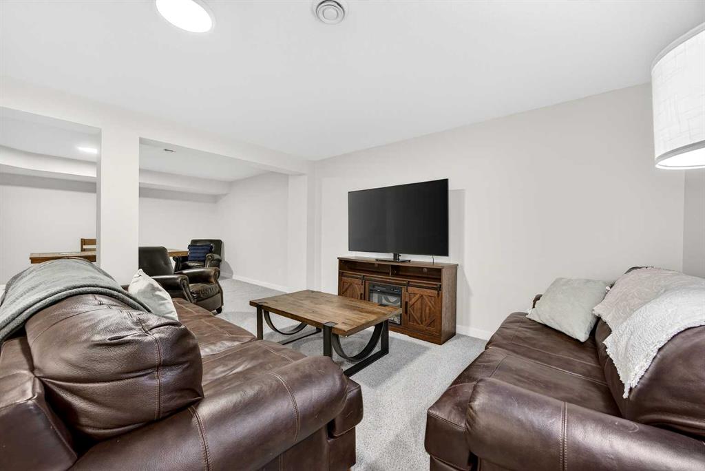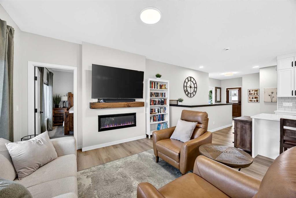 Don’t let the word duplex fool you—this FULLY FINISHED McKee 2024 built BUNGALOW offers almost 2,250 sq ft of developed living space, a 5,000+ sq ft yard, and a truly standout covered OUTDOOR LIVING space rarely found in this style of home. From the moment you walk in, the OPEN CONCEPT main floor with 9′ ceilings feels spacious and bright. The FUNCTIONAL floorplan is ideal for both everyday living and entertaining. The mudroom off the garage entrance features convenient MAIN FLOOR LAUNDRY and a WALK THROUGH PANTRY leading into the MODERN KITCHEN, complete with quartz countertops, ceiling-height cabinetry, and a full smart Samsung appliance package upgraded to include a gas range. The primary bedroom offers a 5-piece ensuite and a generous walk-in closet, while the second bedroom—currently set up as an office—is perfectly located at the front of the home beside a SECOND FULL BATH. Down the wide staircase, the FULLY FINISHED basement opens into a MASSIVE rec room with flexible space for a media area, games room, or family retreat. Two additional good sized bedrooms and a THIRD FULL BATH are tucked away for added privacy, and the large mechanical room provides excellent STORAGE options. The basement was completed by McKee with all the same finishes of the main floor for a cohesive design. One of the most impressive features of this home is the outdoor living space—step onto the 16′ x 26′ composite (Trex) deck covered by a structurally engineered gabled roof with exposed timbers, creating over 400 sq ft of comfortable outdoor entertaining space. If tech is your thing, you’ll appreciate the smart appliances, the smart thermostat, the garage door app, and the wired doorbell camera. The high efficiency furnace paired with an HRV system will be appreciated when the utility bills arrive. The yard is already beautifully established with MATURE columnar aspens, perennial plants and shrubs, maintenance-free METAL FENCING, and front flowerbeds ready to bloom each spring. The double attached HEATED GARAGE with a high ceiling adds even more value, offering plenty of room for storage or future built-in organization. Located in Mandalay Estates, this home is steps from the new Independent grocery store and the upcoming Shoppers Drug Mart, while backing onto a pathway system that leads to the community pond. Easy access to Hwy 2A (without crossing railroad tracks) makes commuting simple, and you’re just minutes from Main Street businesses and the popular Carstairs Golf Course. Homes with this level of finish, space, and outdoor living are hard to find, especially at this price point—this one is well worth a look – it’s like moving into a brand new build, with remaining New Home Warranty – without the pain of builders and landscaping! Extra bonus points for having the BEST NEIGHBOURS!