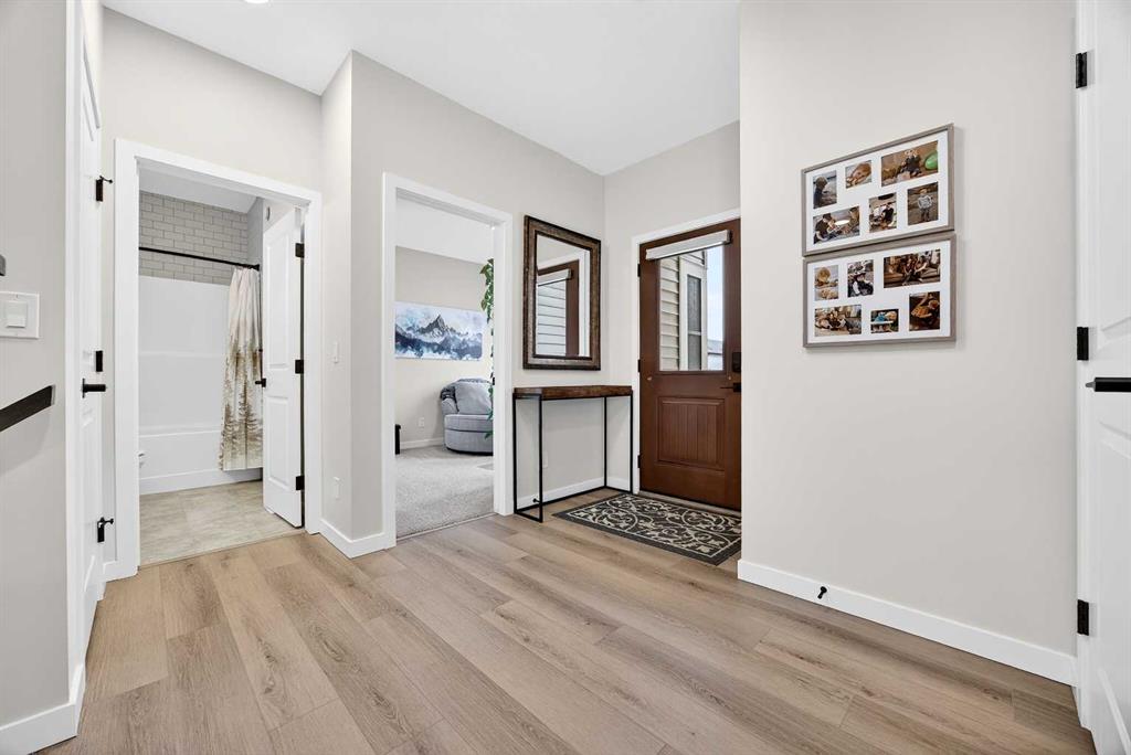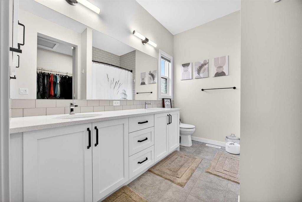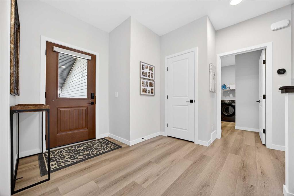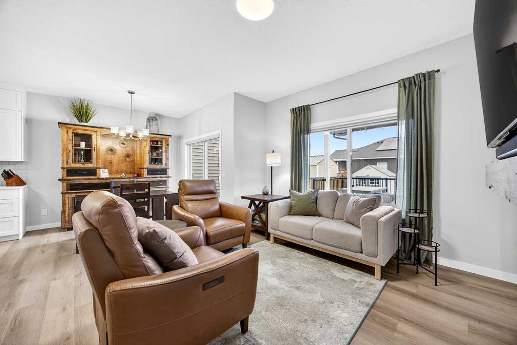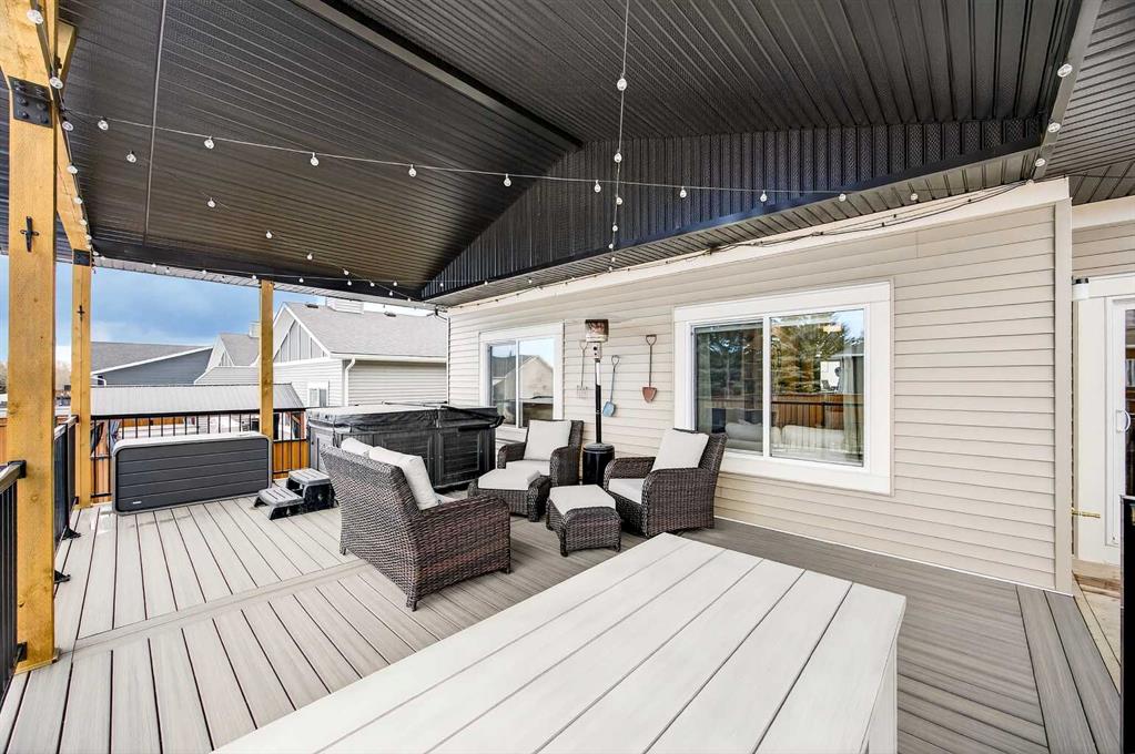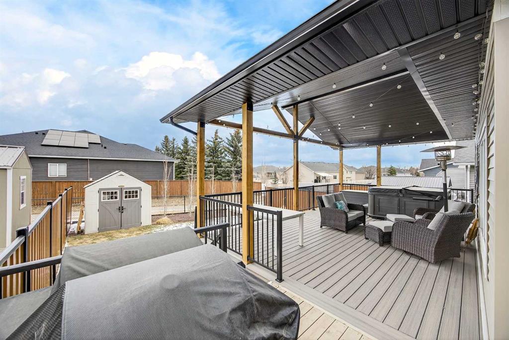 Don’t let the word duplex fool you—this FULLY FINISHED McKee 2024 built BUNGALOW offers almost 2,250 sq ft of developed living space, a 5,000+ sq ft yard, and a truly standout covered OUTDOOR LIVING space rarely found in this style of home. From the moment you walk in, the OPEN CONCEPT main floor with 9′ ceilings feels spacious and bright. The FUNCTIONAL floorplan is ideal for both everyday living and entertaining. The mudroom off the garage entrance features convenient MAIN FLOOR LAUNDRY and a WALK THROUGH PANTRY leading into the MODERN KITCHEN, complete with quartz countertops, ceiling-height cabinetry, and a full smart Samsung appliance package upgraded to include a gas range. The primary bedroom offers a 5-piece ensuite and a generous walk-in closet, while the second bedroom—currently set up as an office—is perfectly located at the front of the home beside a SECOND FULL BATH. Down the wide staircase, the FULLY FINISHED basement opens into a MASSIVE rec room with flexible space for a media area, games room, or family retreat. Two additional good sized bedrooms and a THIRD FULL BATH are tucked away for added privacy, and the large mechanical room provides excellent STORAGE options. The basement was completed by McKee with all the same finishes of the main floor for a cohesive design. One of the most impressive features of this home is the outdoor living space—step onto the 16′ x 26′ composite (Trex) deck covered by a structurally engineered gabled roof with exposed timbers, creating over 400 sq ft of comfortable outdoor entertaining space. If tech is your thing, you’ll appreciate the smart appliances, the smart thermostat, the garage door app, and the wired doorbell camera. The high efficiency furnace paired with an HRV system will be appreciated when the utility bills arrive. The yard is already beautifully established with MATURE columnar aspens, perennial plants and shrubs, maintenance-free METAL FENCING, and front flowerbeds ready to bloom each spring. The double attached HEATED GARAGE with a high ceiling adds even more value, offering plenty of room for storage or future built-in organization. Located in Mandalay Estates, this home is steps from the new Independent grocery store and the upcoming Shoppers Drug Mart, while backing onto a pathway system that leads to the community pond. Easy access to Hwy 2A (without crossing railroad tracks) makes commuting simple, and you’re just minutes from Main Street businesses and the popular Carstairs Golf Course. Homes with this level of finish, space, and outdoor living are hard to find, especially at this price point—this one is well worth a look – it’s like moving into a brand new build, with remaining New Home Warranty – without the pain of builders and landscaping! Extra bonus points for having the BEST NEIGHBOURS!