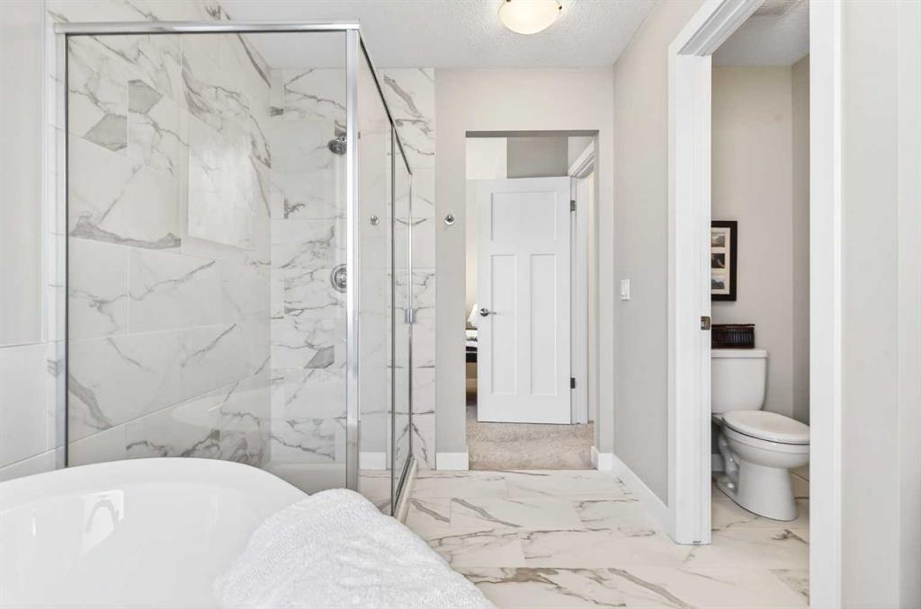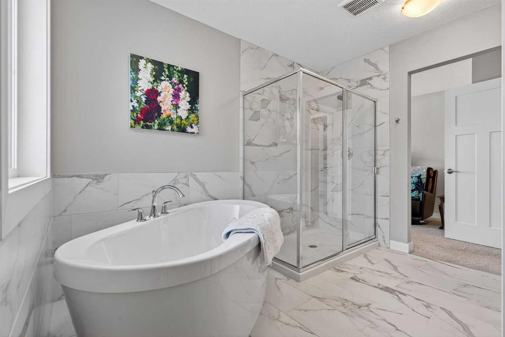 Upstairs you’ll find a beautiful primary retreat, complete with space for a cozy fireplace seating area, along with a luxurious 5-piece ensuite featuring a soaker tub, separate walk-in shower, dual vanity, and a spacious walk-in closet. The upper level also offers a bonus room, two additional bedrooms, a 4-piece bathroom, a bright laundry room with window for airflow, and a walk-in linen closet, providing exceptional function for busy households.