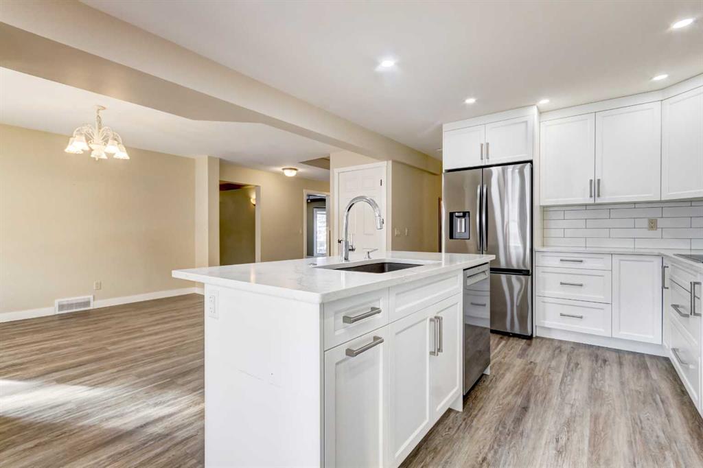 INCREDIBLE TRANSFORMATION! Welcome to this beautifully fully renovated family home including the basement(2023-2025) located in the mature and highly desirable community of Hawkwood. This rare offering features 6 bedrooms, including 4 spacious bedrooms on the upper level, making it ideal for growing families. From the moment you enter, you’ll appreciate the modern, sleek interior and thoughtful design. The main floor offers a large living room with bay window, custom built-ins, and a coffered ceiling perfect for a home office or study. The stunning white kitchen showcases a center island, quartz countertops, flat-finished ceilings, and stainless steel appliances, flowing seamlessly into the bright dining area. The cozy family room is anchored by a wood-burning fireplace with gas log lighter and enhanced by recessed mood lighting. A powder room and main-floor laundry complete this level. Upstairs, you’ll find four generously sized bedrooms, including the primary suite with a 4-piece ensuite and walk-in closet, plus an additional 4-piece bathroom. The fully finished basement (2024) offers exceptional flexibility, featuring a reconfigured layout, new bedroom, new kitchen, new bathroom, new flooring, and fresh paint, with its own separate entrance. The basement is currently an illegal suite with excellent potential for conversion. According to the contractor, most of the work required for a Legal Secondary Suite has been completed, with only an electrical panel upgrade remaining prior to City registration (buyers to verify with municipal authorities). This space is ideal for extended family living or future rental income. Additional upgrades include a new air conditioning system (2025), newer windows (approx. 12 years), two high-efficiency furnaces with drip humidifiers (approx. 5 years), a hot water tank(2025), and a brand-new covered deck. The front-drive, double heated garage is heated and equipped with 220V power and hot/cold water. Situated on a quiet crescent, just minutes from schools, shopping, and amenities, this newly modernized home offers outstanding value in an ideal family-friendly location. Don’t miss this exceptional opportunity—book your private showing today!