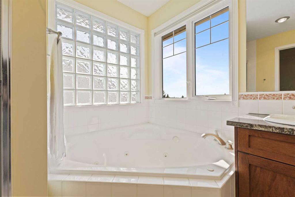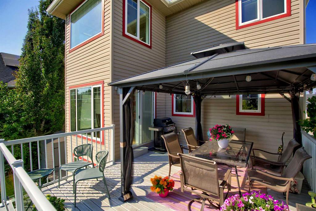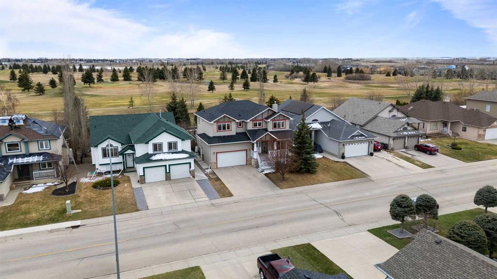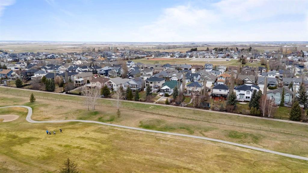 Discover refined living in this exceptional custom-built home, perfectly positioned on a sprawling lot with panoramic views of the Strathmore Golf Course. Thoughtfully designed with over 2,500 sq ft above grade and a fully developed walk-out basement, this home seamlessly blends sophistication, comfort, and practicality—ideal for both everyday living and elegant entertaining. Step inside to a breathtaking main floor where full-height vaulted ceilings and expansive windows draw in natural light and showcase the serene outdoor views. The open-concept living space is anchored by a striking rock-faced gas fireplace, while rich maple hardwood flooring and 9-foot ceilings add a touch of timeless elegance. The chef-inspired kitchen is both functional and beautiful, featuring custom maple cabinetry, a large center island with a prep sink, premium gas stove, a brand new Bosch dishwasher, and a spacious walk-in pantry. Adjacent to the kitchen, a bright breakfast nook leads to a large deck complete with a charming gazebo—an inviting space to unwind or entertain, all while overlooking the lush backyard and fairway beyond. Smart design continues throughout with main floor laundry, including a convenient laundry chute from the second floor, and abundant storage to keep your home organized with ease. Upstairs, retreat to a private primary suite boasting vaulted ceilings, a cozy sitting area with golf course views, a luxurious 5-piece ensuite, and a generous walk-in closet. Two additional bedrooms provide ample space for family or guests. The fully finished walk-out basement adds versatility with a spacious fourth bedroom, large recreation and media areas, and even more storage. Outside, the landscaped yard offers underground sprinklers, mature plantings, and plenty of space for kids, pets, or a garden oasis. To top it all off, this home is located within walking distance to the local public junior and senior high school—an unbeatable location for growing families. With brand new roof shingles and every detail meticulously maintained, this home is the total package: custom craftsmanship, an enviable setting, and thoughtful features throughout. Come experience it for yourself. Call your AWESOME REALTOR today!