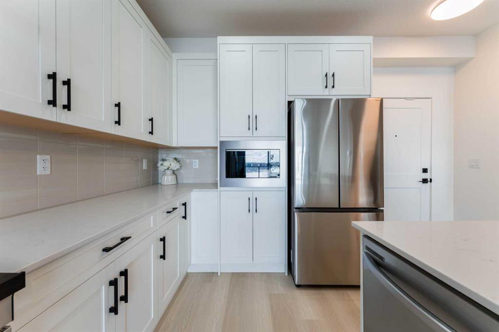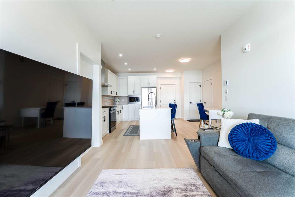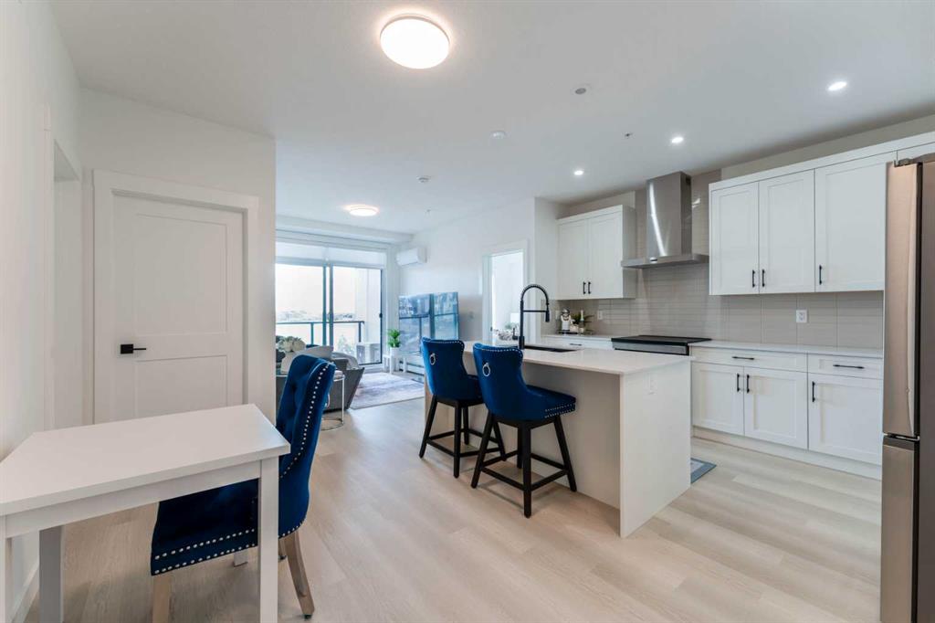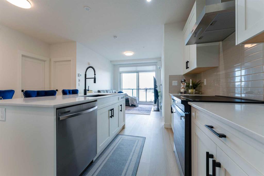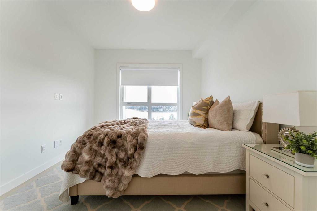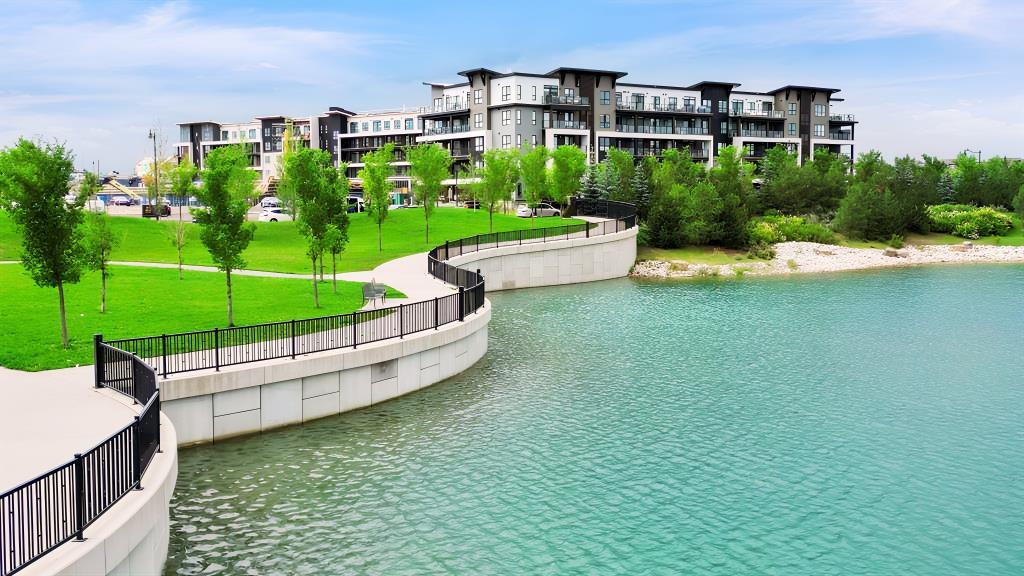 WELCOME TO THIS LAKE FACING UNIT, BEAUTIFULLY UPGRADED AND THOUGHTFULLY DESIGNED 2-BEDROOM, 2-BATHROOM CONDO UNIT LOCATED IN THE HIGHLY SOUGHT-AFTER LAKE COMMUNITY OF MAHOGANY! Offering over 766 sq ft of living space with $40,000+ WORTH OF PREMIUM UPGRADES, this stunning unit combines MODERN FINISHES, functional layout, and exceptional comfort—perfect for first-time buyers, downsizers, or investors. Step inside to discover a bright and OPEN CONCEPT FLOOR PLAN featuring a spacious living room that seamlessly flows into the dining area and contemporary kitchen—ideal for both everyday living and entertaining. The kitchen is a true highlight, showcasing EXTENSIVE UPGRADES, including a sleek INDUCTION RANGE, UPGRADED STAINLESS STEEL APPLIANCES, extended cabinetry, and a beautifully designed island with added storage and overhang for casual seating. The thoughtful kitchen layout maximizes both style and functionality. The primary bedroom offers a comfortable retreat with VIEWS OF THE LAKE FROM ITS WINDOW, a walk-in closet and a private 4-ENSUITE WITH DOUBLE VANITY, featuring UPGRADED FINISHES and a FULLY-TILED SHOWER for a spa-like experience. The second bedroom, ALSO WITH VIEWS OF THE MAHOGANY LAKE FROM ITS WINDOW, is well-sized and conveniently located near the 3-piece main bathroom, also enhanced with modern fixtures and a fully tiled shower. Additional interior features include in-suite laundry, upgraded cabinetry details, modern hardware, and carefully selected finishes throughout that elevate the overall aesthetic of the home. Enjoy your morning coffee or unwind in the evening on the PRIVATE BALCONY OVERLOOKING THE LAKE, providing an ideal outdoor space to relax. This unit also benefits from approximately $44,000 in upgrades such as UPGRADED SAMSUNG KITCHEN APPLIANCES (induction range & refrigerator), extended kitchen island and cabinetry enhancements, custom pantry configuration, fully tiled showers in both bathrooms with frameless glass doors, upgraded plumbing fixtures and comfort-height toilets, under-cabinet lighting and modern matte black hardware and enhanced interior finishing details throughout. Located in the AWARD-WINNING COMMUNITY OF MAHOGANY, residents enjoy access to CALGARY’S LARGEST FRESHWATER LAKE, beaches, walking paths, parks, and an abundance of nearby amenities including shopping, restaurants, and schools. This is a rare opportunity to own a highly upgraded, move-in-ready condo in one of Calgary’s premier lake communities—don’t miss it!