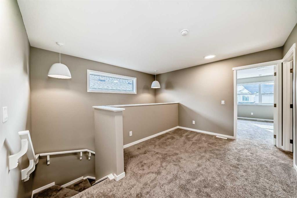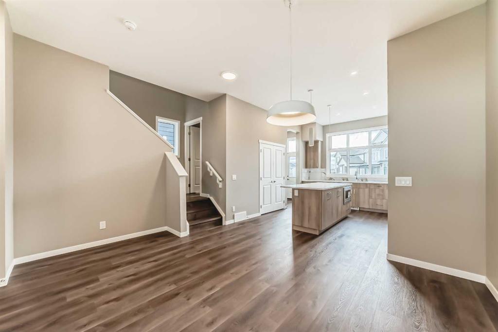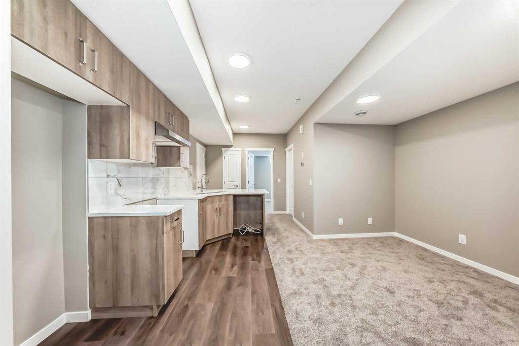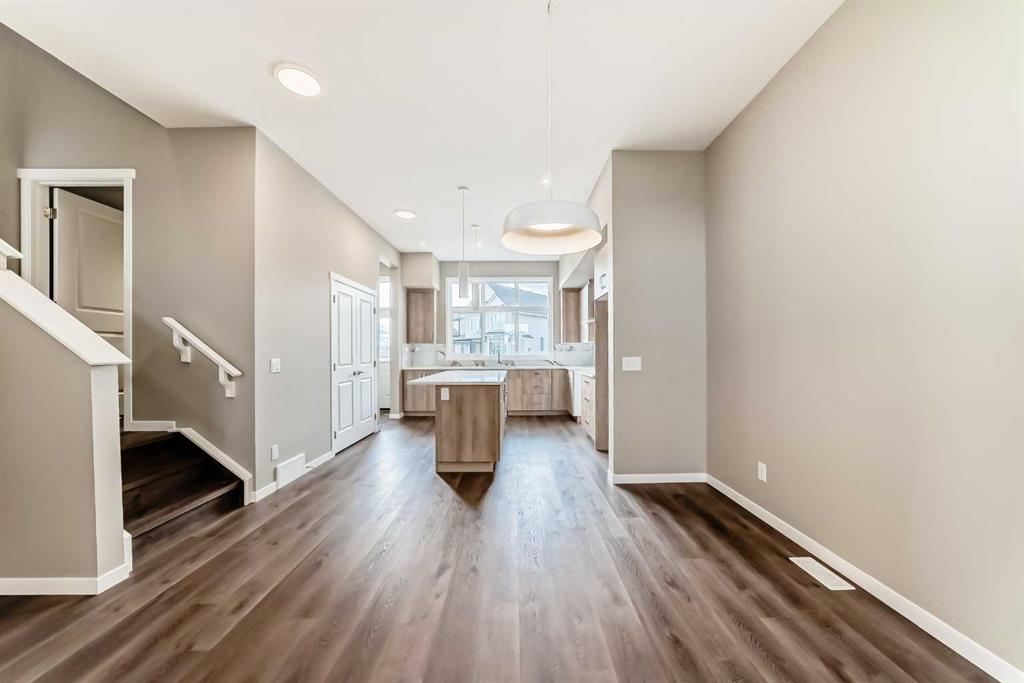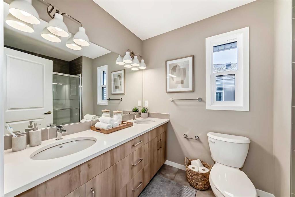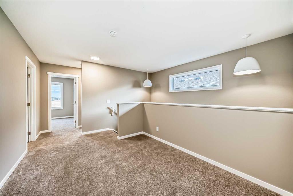 Welcome to the “Joni” floor plan—an intelligently designed semi-detached home that blends stylish finishes, practical functionality, and an unbeatable location in one of Calgary’s most desirable lake communities. Situated directly across from the historic Ollerenshaw Heritage Ranch, this home offers a truly special setting—combining Mahogany’s vibrant modern lifestyle with a sense of character, openness, and charm that is difficult to find elsewhere. Inside, the main floor makes an immediate impression with soaring 10’ ceilings, wide-plank luxury vinyl flooring, and a bright, airy layout that feels both elevated and welcoming. At the front of the home, a versatile flex room creates the perfect space for a home office, reading area, playroom, or creative workspace—offering flexibility to suit a variety of lifestyles. Moving toward the back of the home, the layout opens beautifully into the main living area, where the kitchen, dining, and living spaces connect seamlessly for easy everyday living and effortless entertaining. The spacious living room flows into the oversized dining area, creating a warm and functional setting for family meals, casual gatherings, or hosting friends. The kitchen is a standout, featuring raised cabinetry, quartz countertops, stainless steel appliances, a stand-alone chimney hood fan, modern tile backsplash, and a large central island that anchors the space with style and function. Upstairs, a central bonus room provides valuable additional living space—ideal for movie nights, a kids’ hangout, or a quiet place to relax. The primary bedroom offers a peaceful retreat, complete with a generous walk-in closet and a spa-inspired 4-piece ensuite that adds a touch of everyday luxury. Two additional bedrooms, another full 4-piece bathroom, and a conveniently located upper-floor laundry room complete the level with comfort and practicality. Adding even more value and versatility, the basement is fully finished with a legal 2 bedroom, 2 bathroom secondary suite—perfect for multi-generational living, extended family, guests, or those looking for the added benefit of rental income. With its own separate living space and legal status, this lower level significantly enhances both the functionality and long-term appeal of the home. Beyond the home itself, the location is a major highlight. Being directly across from Ollerenshaw Heritage Ranch adds a unique sense of place and character to everyday life. Set within the award-winning lake community of Mahogany, residents enjoy access to Calgary’s largest freshwater lake, two sandy beaches, the private Beach Club, skating rinks, sport courts, fishing docks, and over 22 km of scenic pathways winding through stunning wetlands. Just minutes from South Health Campus, the Seton Urban District, and Mahogany’s growing selection of shops, restaurants, and amenities, this is a community built around convenience, connection, and year-round lifestyle. This is more than just a home—it’s a lifestyle worth enjoying!