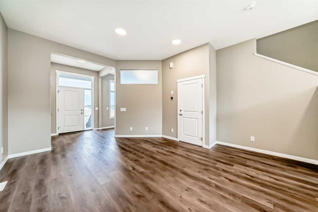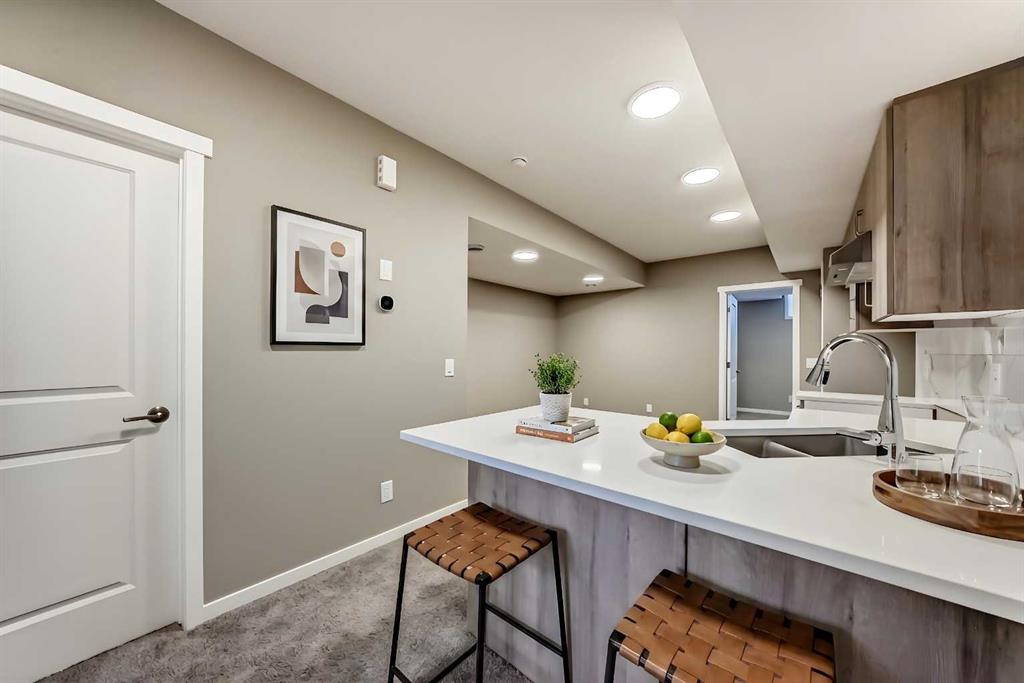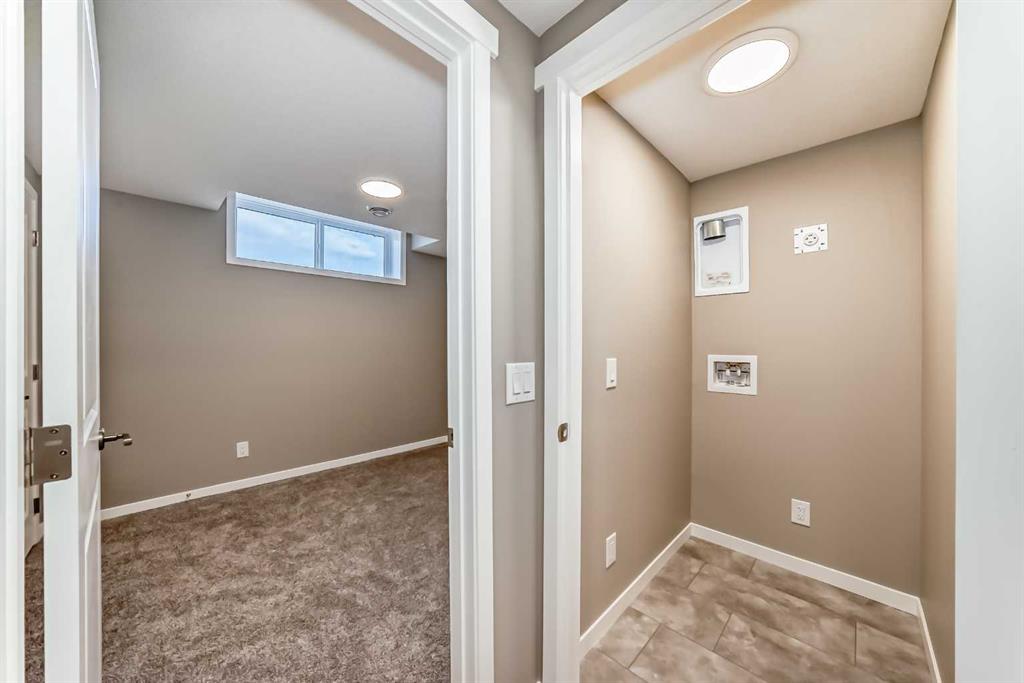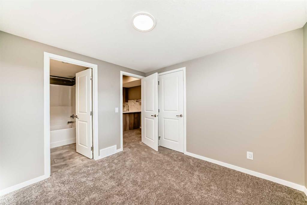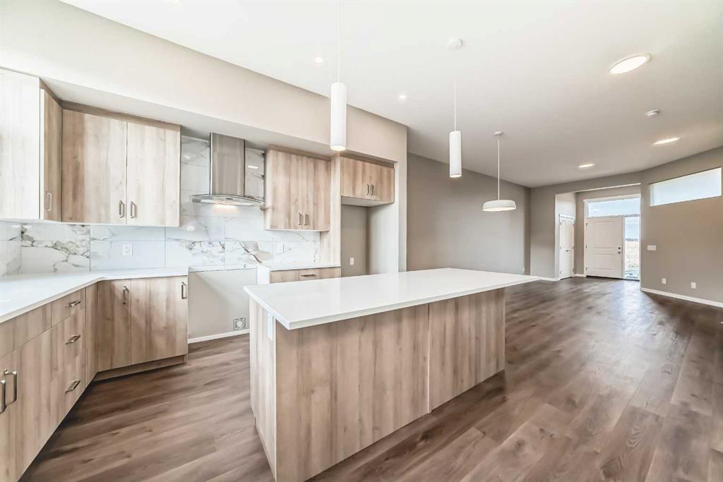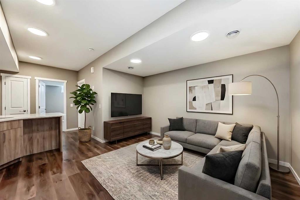 Welcome to the “Joni” floor plan—an intelligently designed semi-detached home that blends stylish finishes, practical functionality, and an unbeatable location in one of Calgary’s most desirable lake communities. Situated directly across from the historic Ollerenshaw Heritage Ranch, this home offers a truly special setting—combining Mahogany’s vibrant modern lifestyle with a sense of character, openness, and charm that is difficult to find elsewhere. Inside, the main floor makes an immediate impression with soaring 10’ ceilings, wide-plank luxury vinyl flooring, and a bright, airy layout that feels both elevated and welcoming. At the front of the home, a versatile flex room creates the perfect space for a home office, reading area, playroom, or creative workspace—offering flexibility to suit a variety of lifestyles. Moving toward the back of the home, the layout opens beautifully into the main living area, where the kitchen, dining, and living spaces connect seamlessly for easy everyday living and effortless entertaining. The spacious living room flows into the oversized dining area, creating a warm and functional setting for family meals, casual gatherings, or hosting friends. The kitchen is a standout, featuring raised cabinetry, quartz countertops, stainless steel appliances, a stand-alone chimney hood fan, modern tile backsplash, and a large central island that anchors the space with style and function. Upstairs, a central bonus room provides valuable additional living space—ideal for movie nights, a kids’ hangout, or a quiet place to relax. The primary bedroom offers a peaceful retreat, complete with a generous walk-in closet and a spa-inspired 4-piece ensuite that adds a touch of everyday luxury. Two additional bedrooms, another full 4-piece bathroom, and a conveniently located upper-floor laundry room complete the level with comfort and practicality. Adding even more value and versatility, the basement is fully finished with a legal 2 bedroom, 2 bathroom secondary suite—perfect for multi-generational living, extended family, guests, or those looking for the added benefit of rental income. With its own separate living space and legal status, this lower level significantly enhances both the functionality and long-term appeal of the home. Beyond the home itself, the location is a major highlight. Being directly across from Ollerenshaw Heritage Ranch adds a unique sense of place and character to everyday life. Set within the award-winning lake community of Mahogany, residents enjoy access to Calgary’s largest freshwater lake, two sandy beaches, the private Beach Club, skating rinks, sport courts, fishing docks, and over 22 km of scenic pathways winding through stunning wetlands. Just minutes from South Health Campus, the Seton Urban District, and Mahogany’s growing selection of shops, restaurants, and amenities, this is a community built around convenience, connection, and year-round lifestyle. This is more than just a home—it’s a lifestyle worth enjoying!