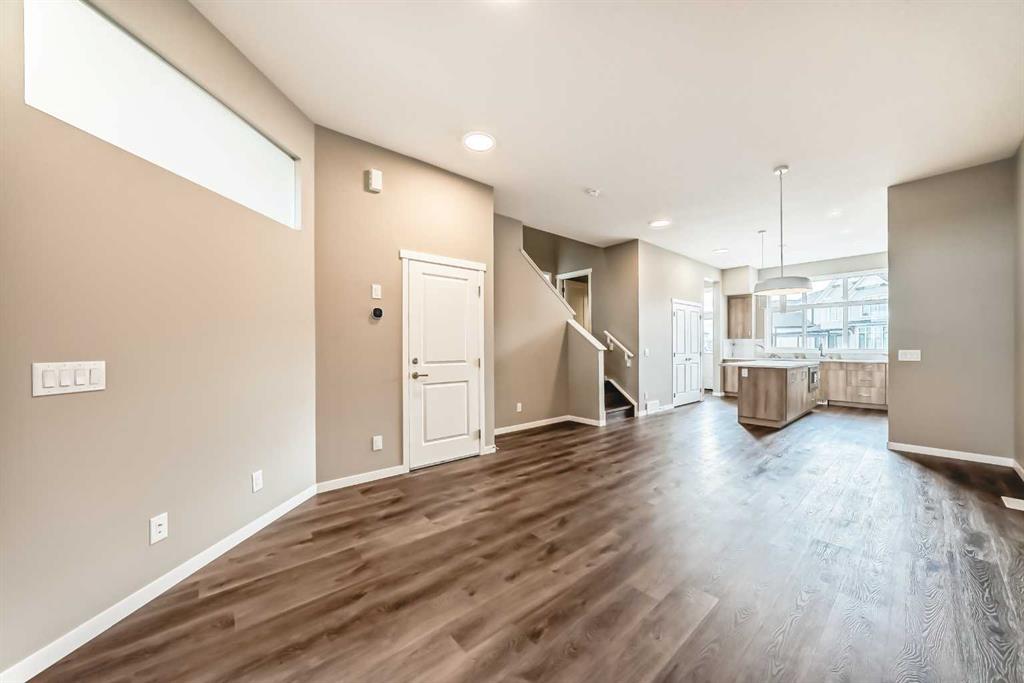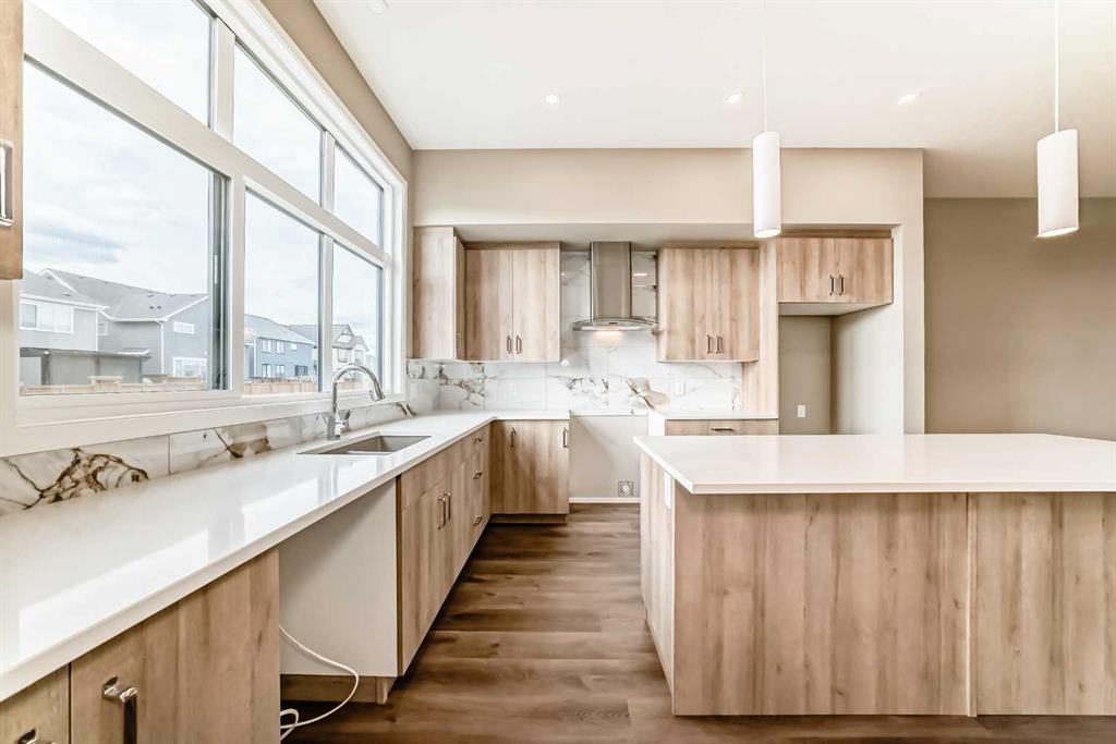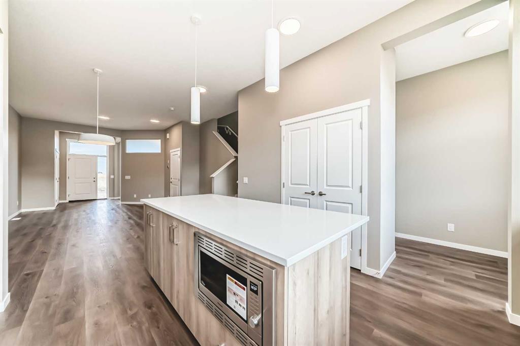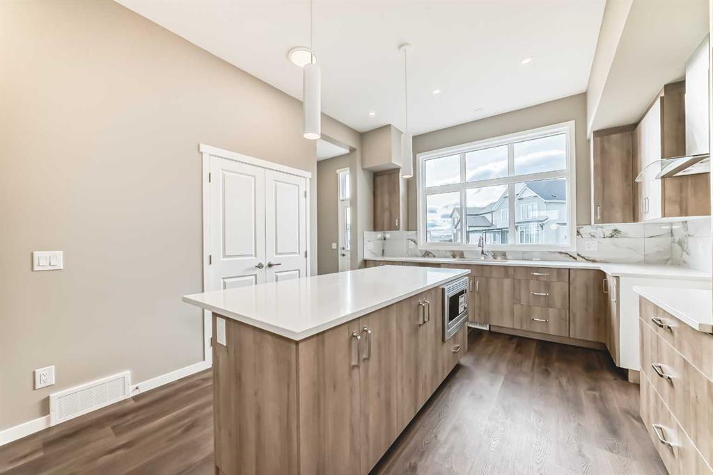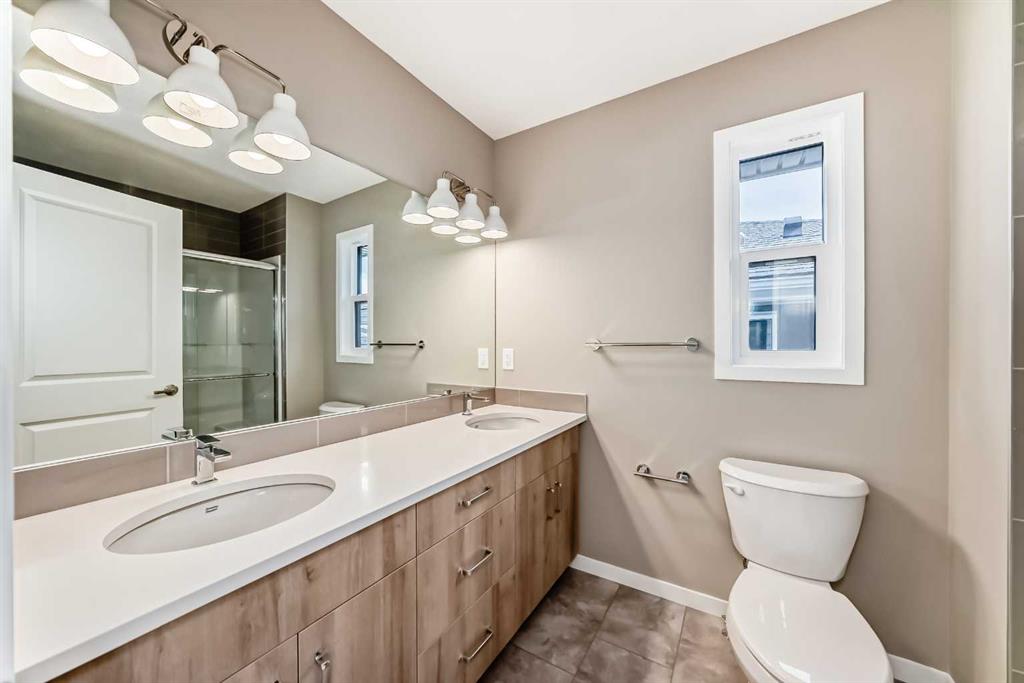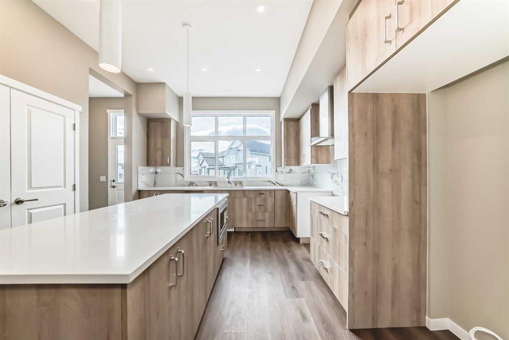 Welcome to the “Joni” floor plan—an intelligently designed semi-detached home that blends stylish finishes, practical functionality, and an unbeatable location in one of Calgary’s most desirable lake communities. Situated directly across from the historic Ollerenshaw Heritage Ranch, this home offers a truly special setting—combining Mahogany’s vibrant modern lifestyle with a sense of character, openness, and charm that is difficult to find elsewhere. Inside, the main floor makes an immediate impression with soaring 10’ ceilings, wide-plank luxury vinyl flooring, and a bright, airy layout that feels both elevated and welcoming. At the front of the home, a versatile flex room creates the perfect space for a home office, reading area, playroom, or creative workspace—offering flexibility to suit a variety of lifestyles. Moving toward the back of the home, the layout opens beautifully into the main living area, where the kitchen, dining, and living spaces connect seamlessly for easy everyday living and effortless entertaining. The spacious living room flows into the oversized dining area, creating a warm and functional setting for family meals, casual gatherings, or hosting friends. The kitchen is a standout, featuring raised cabinetry, quartz countertops, stainless steel appliances, a stand-alone chimney hood fan, modern tile backsplash, and a large central island that anchors the space with style and function. Upstairs, a central bonus room provides valuable additional living space—ideal for movie nights, a kids’ hangout, or a quiet place to relax. The primary bedroom offers a peaceful retreat, complete with a generous walk-in closet and a spa-inspired 4-piece ensuite that adds a touch of everyday luxury. Two additional bedrooms, another full 4-piece bathroom, and a conveniently located upper-floor laundry room complete the level with comfort and practicality. Adding even more value and versatility, the basement is fully finished with a legal 2 bedroom, 2 bathroom secondary suite—perfect for multi-generational living, extended family, guests, or those looking for the added benefit of rental income. With its own separate living space and legal status, this lower level significantly enhances both the functionality and long-term appeal of the home. Beyond the home itself, the location is a major highlight. Being directly across from Ollerenshaw Heritage Ranch adds a unique sense of place and character to everyday life. Set within the award-winning lake community of Mahogany, residents enjoy access to Calgary’s largest freshwater lake, two sandy beaches, the private Beach Club, skating rinks, sport courts, fishing docks, and over 22 km of scenic pathways winding through stunning wetlands. Just minutes from South Health Campus, the Seton Urban District, and Mahogany’s growing selection of shops, restaurants, and amenities, this is a community built around convenience, connection, and year-round lifestyle. This is more than just a home—it’s a lifestyle worth enjoying!