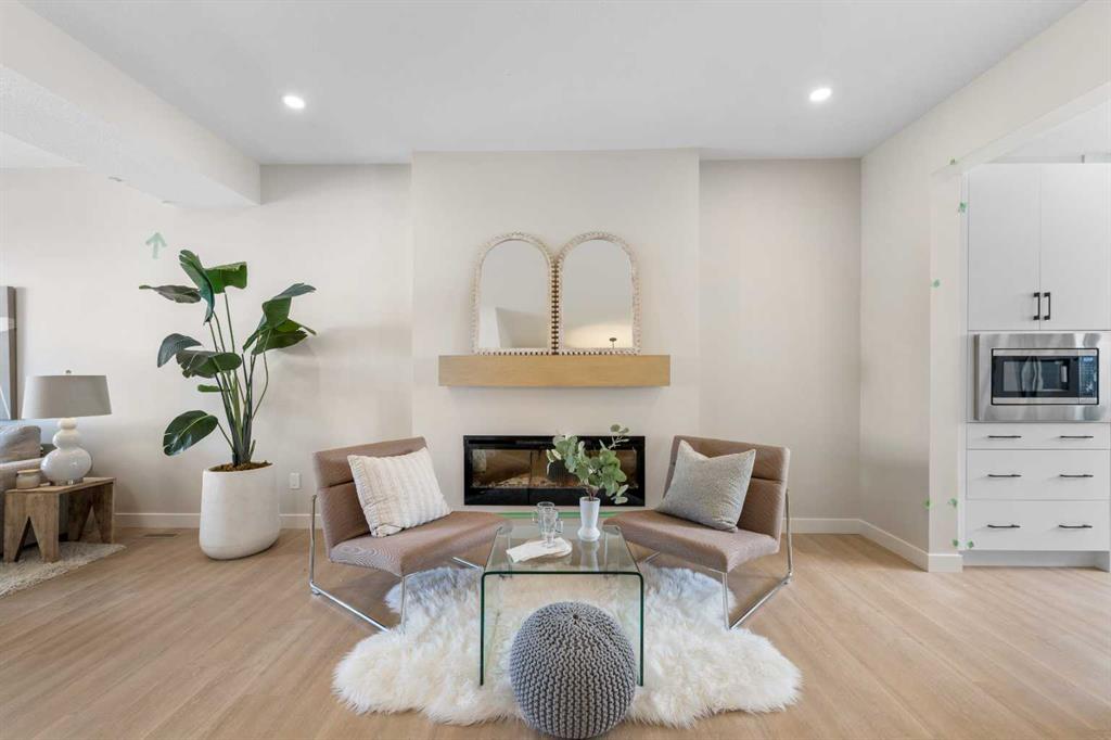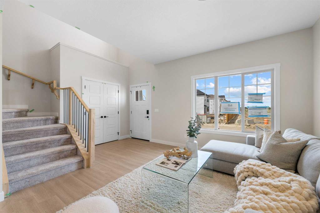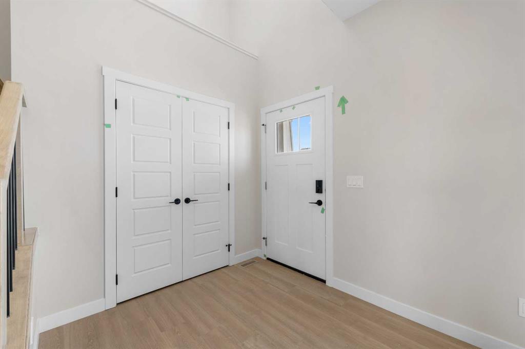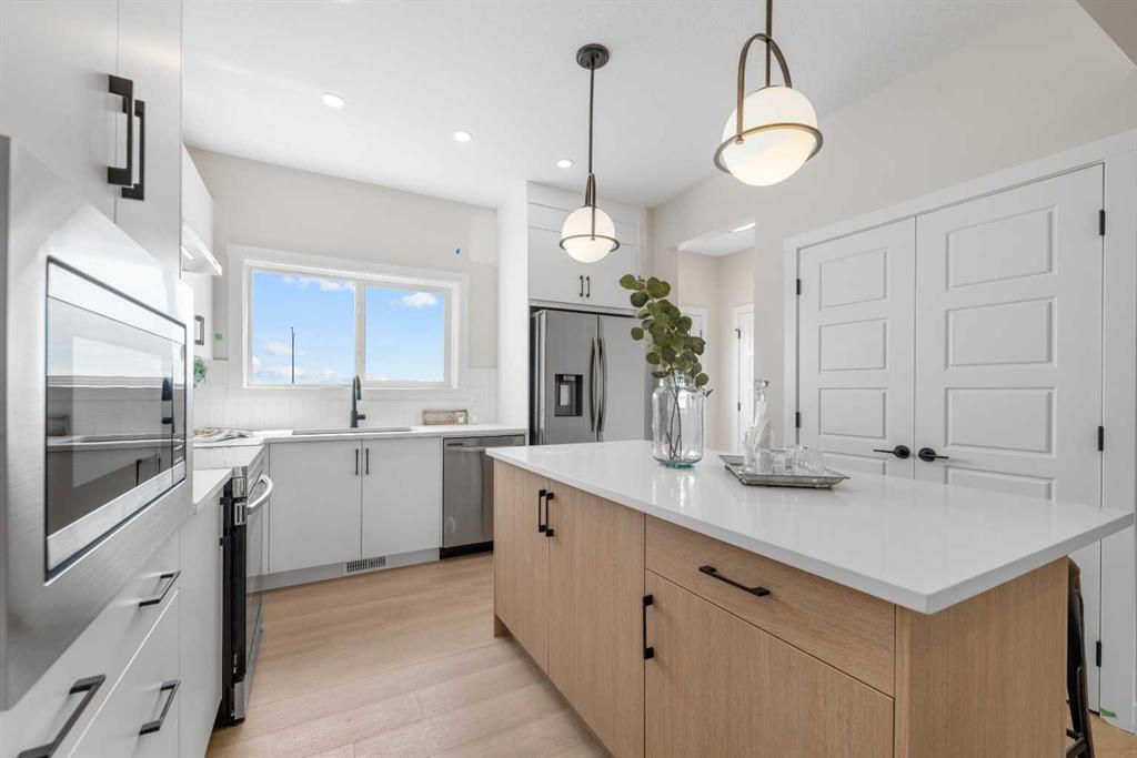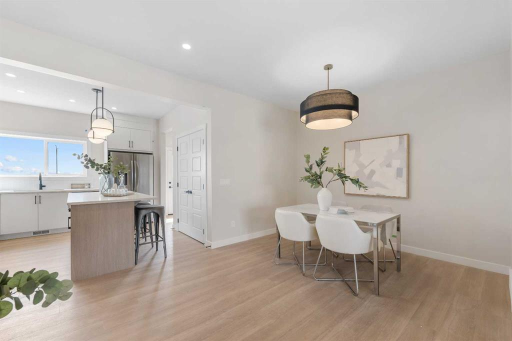 ** Brand New Home built by Genesis Homes Ready for Summer 2026 ** The Amber | Stunning Open Floor Plan | Open to Below Ceilings | Top of the Line Finishes | Sparkling Kitchen | Quartz Countertops | Stainless Steel Appliances | Kitchen Island | Barstool Seating | Pantry | 50″ Electric Fireplace | Wide Plank LVP Flooring | Recessed Lighting | Expansive Living Space | Main Level Flex Room | Upper Level Bonus Room | Upper Level Laundry | 3 Sizeable Bedrooms | 2.5 Bathrooms | Plus Carpet Flooring in the Bedrooms | Unfinished Basement | 9Ft Basement Ceilings | Great Backyard | Alley Access | Steps Away from the Future Park. Welcome to your brand new 2-storey family home boasting 1,595 SqFt throughout the main and upper levels. Step inside to a foyer with open to below ceiling and views into the open floor plan main level. This home was designed with style and comfort at the forefront; wide plank LVP flooring, large windows, recessed lighting, high ceilings and more! The front flex room is ready for anyone with a work-from-home lifestyle or can easily be used as a day seating entertainment room. The great room is both spacious and comfortable plus has a stylish flare of a 50″ electric fireplace. Next are the kitchen and dining room. The kitchen is outfitted with a sparkling quartz countertop, stainless steel appliances, ample cabinet space and a centre island with barstool seating. The dedicated dining room is ready for you to enjoy all your family meals. At the rear of the home is a mud room with closet storage and a door to your back yard. The main level is complete with a 2pc bath. Upstairs you’ll find 3 sizeable bedrooms all with plush carpet flooring. The primary bedroom has its very own 3pc ensuite bath and a walk-in closet. Bedrooms 2 & 3 share the 4pc bath with a tub/shower combo. The upper level hall laundry is every home owner’s dream as its located steps away from all bedrooms! Downstairs, the unfinished basement is a blank canvas ready for your own personal design! The basement of this home includes rough-ins ready for a legal secondary suite subject to approval and permitting by the city/municipality with a separate entrance, & 9Ft ceilings. Outside is a great backyard to enjoy in the warm summer months. This home has rear lane access if you choose to build a detached double garage. Hurry and book a showing at this gorgeous brand new Genesis home today!