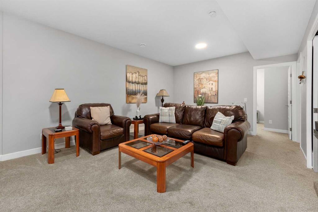 Additional highlights include a heated garage with epoxy-coated floors, wide-plank hardwood, and triple-pane windows. Step outside to enjoy your east-facing backyard that greets the morning sun, where gemstone lighting and the surrounding forest create a serene retreat. The Bow River pathway system is only steps away, offering endless opportunities for morning walks, evening bike rides, or simply enjoying the calm of nature right outside your door.