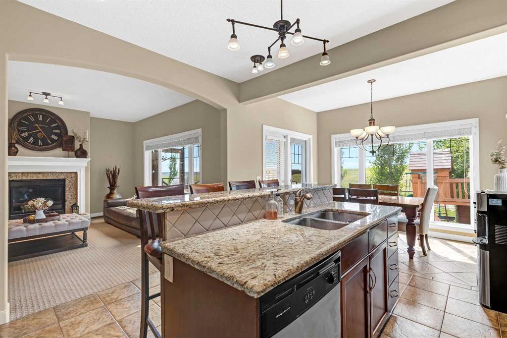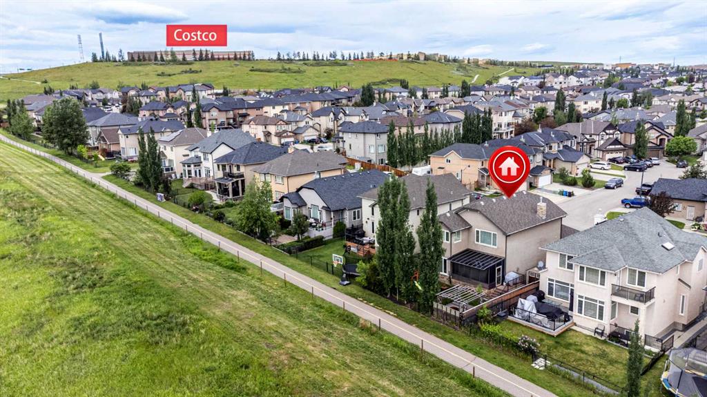 Welcome to 84 Sherwood Rise NW, a beautifully upgraded home offering over 3,100 sq. ft. of total living space including a fully finished basement, Central A/C, and backing directly onto peaceful green space with no rear neighbors. The main floor is thoughtfully designed with 9-foot ceilings, a bright home office or den, and a spacious laundry room complete with sink and cabinetry. The open-concept kitchen, dining nook, and living room create an inviting space for everyday living and entertaining. The kitchen features granite countertops, stainless steel appliances, a corner pantry, and a large island with bar seating, while the living room centers around a cozy gas fireplace. From the dining nook, step into the enclosed sunroom with UV-blocking glass panels—perfect for year-round use—which opens onto a private backyard oasis with a hot tub on the spa deck, underground sprinklers, a children’s play structure, and beautiful views of the surrounding greenspace. The driveway is bouncy and rubber-coated, making them non-slip in winter and easy to maintain -easy to shovel, less icy, gentle on knees, and perfect for road hockey or basketball.