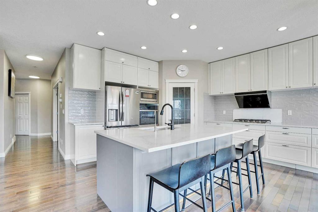 Great cozy home backing into a greenspace/park,custom built home with tons of upgrade is sure to impress!!You will be amazed by this fully finished 2-storey walkout (3931sft total living space) home which offers 4 beds, 4 baths & some of the best views of NW Calgary. Upgrades inclde: New roof/siding/gutter in 2025,new kitchen cabinet in 2023,new dishwasher,new dryer/washer, new microwave/gas stove and hood fan,new carpets in upper floor. The main floor offers 9 ft. knock down ceiling, hardwood flooring throughout, an office, great room and dinning area that opens up into your own sunny urban paradise. The chef-inspired kitchen is equipped with stainless steel appliances, quartz kitchen countertop that’s all about functionality, while still providing space to set out drinks and appetizers at the eating bar for your friends and family. The extra-large windows allow in bright natural light during the daytime and enough room for everyone to nestled up by the fireplace at night. Upper floor features the uniquely designed stairs, sunny bonus room and three spacious bedrooms. The master bedroom has more than enough room to easily fit a king-sized bed, bedside tables and a dresser and still have enough room to do your morning stretches, also has a walk-in closet and 5-piece ensuite includes quartz countertop, shower, large soaker tub and dual sinks. Fully finished walkout basement features a huge recreation room, another bedroom and a full bathroom. Fully fenced and landscaped, this home backs onto a green space so you can safety watch your kids play at park. Only few minutes walk to school. Close to established amenities, transit, shopping and major roads, this home provides the perfect environment for your family to grow.This is a 10/10 house you must see on the market now! call your favorite realtor to have a showing now!!!