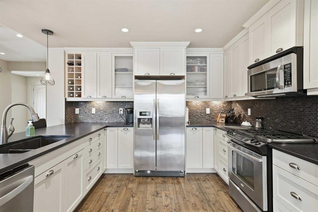 Location, location, location! Welcomre home to this executive, 3-bdrm, 2-storey Sabal Homes “Vida Model”, w/ builder upgrades too numerous to mention. Largest floor plan available in the much desired community of Mahogany. 2 min drive to the new South Calgary hospital, and steps away from beach access to Lake Mahogany. Large corner lot directly across from a beautiful treed park, with southwest backyard. Light and bright with main floor open concept, with walnut hardwood, X-large front door at grand entry, and main floor office. Chef’s kitchen , custom wine racks, upgraded soft touch cabinets, under cabinet lighting, stainless steel appliance package, granite countertops. Large master primary bedroom has spacious walk-in; lots of windows, and a gorgeous 5-pce spa ensuite w/separate tiled shower and soaker tub. Spacious upstairs great/media room, upstairs laundry. Shows 10/10!!