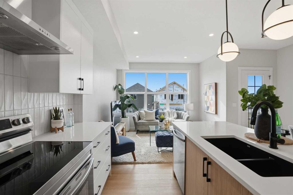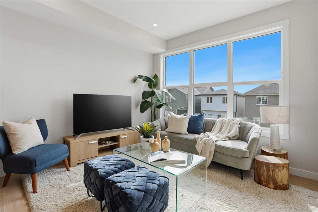 ** Brand New No Condo Fee Townhome Built by Genesis Homes ** Move-in Ready | 1,703 SqFt | 3 Beds | 3.5 Baths | End Unit | Three-Level Layout | Bonus Room | Main Floor Office | Open Concept Living | Elevated Finishes Throughout | Quartz Countertops | Designer Backsplash | Full Height Cabinetry | Stainless Steel Builder Appliance Package | Upper Level Laundry | Smart Home Features | Private Balcony | BBQ Gas Line | James Hardie Siding | Welcome to the Haley model by Genesis Homes—offering 1,703 SqFt of beautifully designed living space in a brand new end unit townhome with NO condo fees. Thoughtfully crafted for families, professionals, or investors, this three-level layout combines modern style, flexibility, and everyday function. The entry level welcomes you with a spacious foyer, convenient home office, half bathroom, and direct access to your attached garage—perfect for working from home or creating a private flex space. The second level features a bright and open-concept main living area where oversized windows fill the home with natural light. The stylish kitchen is finished with quartz countertops, full height cabinetry, designer backsplash, stainless steel appliances, and a functional island with seating that flows seamlessly into the dining area and spacious living room. Step outside to your private balcony complete with a BBQ gas line—ideal for relaxing or entertaining. This level also offers a generously sized bedroom and full bathroom, making it perfect for guests, roommates, or multi-generational living. The third level is designed for comfort and privacy, featuring two additional bedrooms including the spacious primary retreat, complete with a walk-in closet and private ensuite. A second full bathroom, upper level laundry, and a versatile bonus room complete the top floor—ideal for a media space, playroom, or additional lounge area. Finished with durable James Hardie siding and equipped with smart home features, this home offers style, convenience, and peace of mind. Located just moments from essential amenities and nestled close to a picturesque park, you’ll enjoy easy access to shops, dining, and outdoor recreation. Take in spectacular mountain views and sunsets while enjoying the nearby pathways and green space. Don’t miss your opportunity to own this stunning Haley model—book your showing today!