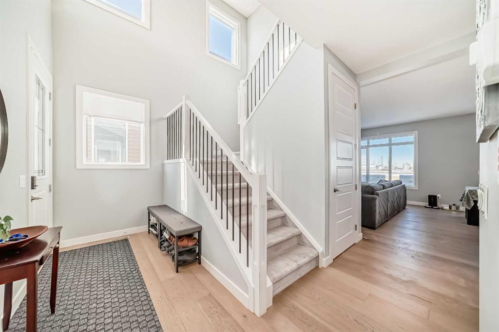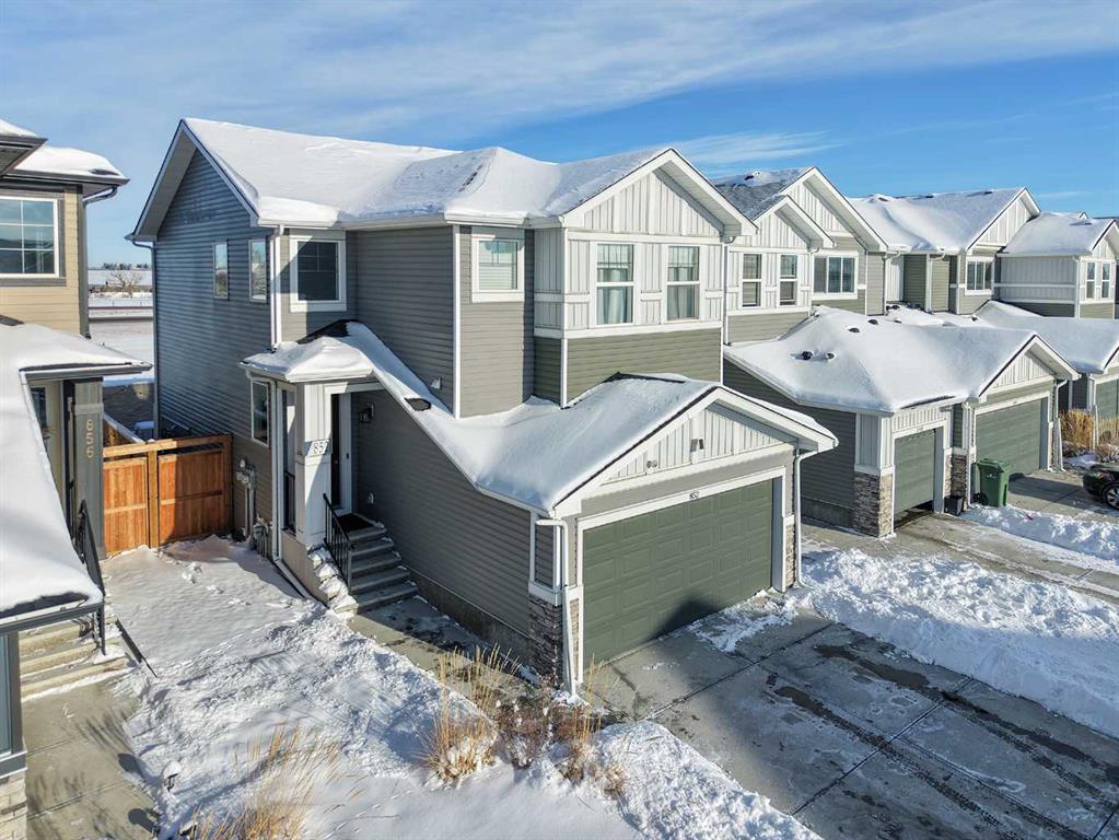 A warm, elegant townhome with absolutely NO CONDO FEES! Because of the front ATTACHED DOUBLE GARAGE and smart layout with 1600+ sqft, it feels more like a “real” home than a typical townhouse. Inside, you’ll notice calm blue-grey tones, light HARDWOOD flooring, and a bright, relaxed vibe that makes the whole space feel easy to live in. Plus, the TRIPLE-PANE WINDOWS keep things quiet and energy-friendly. The main floor has an open design with a VAULTED CEILING as you enter. The kitchen has QUARTZ counters, an ISLAND, a corner PANTRY, and plenty of room to cook. Just steps away, the living area features an electric FIREPLACE that gives the room a comfortable glow – perfect for movie nights or lazy Sundays. The dining area is sized perfectly for a large table to feast with friends. And the BACK DECK is another bonus for BBQs and summer soirees. Upstairs, a BONUS ROOM sits between the bedrooms – use it as a play space, hangout zone, or whatever fits your lifestyle. The PRIMARY bedroom includes a WALK-IN CLOSET and an ensuite with DOUBLE SINKS and a WALK-IN SHOWER. Two more bedrooms, a second full bathroom, and upstairs laundry make daily routines easy. The BASEMENT is unfinished, giving you the chance to design it your way – a rec room, a home gym, a fourth bedroom and bathroom, or even extra storage. And let’s not forget there’s also CENTRAL A/C for those warm summer days. Lakepointe is a family-friendly neighbourhood with easy access to schools, parks, pathways, shopping, and of course, CHESTERMERE LAKE. It’s the kind of place where you can walk the dog, hang out at the park, or enjoy a lakeside afternoon. If your wish list includes a home that feels super stylish and practically brand new, 852 Marina Drive is a fantastic fit!