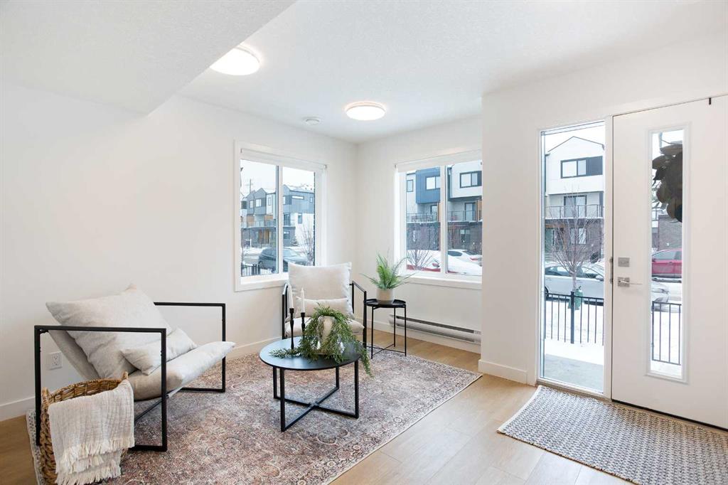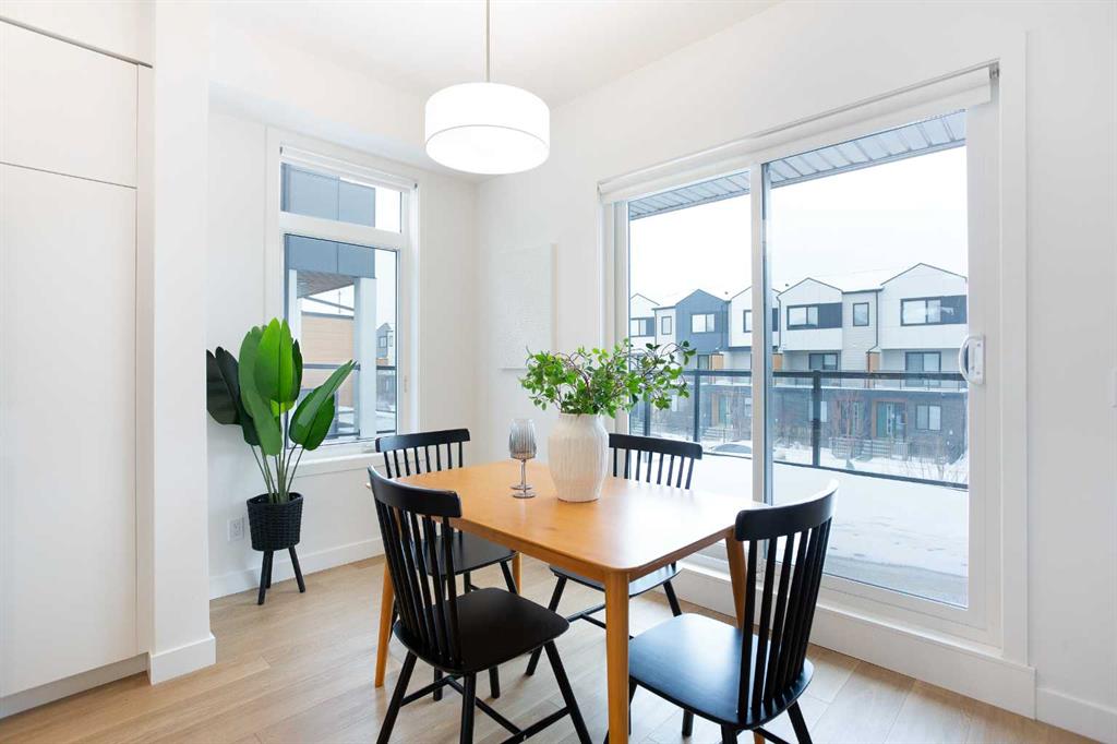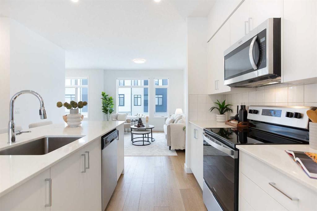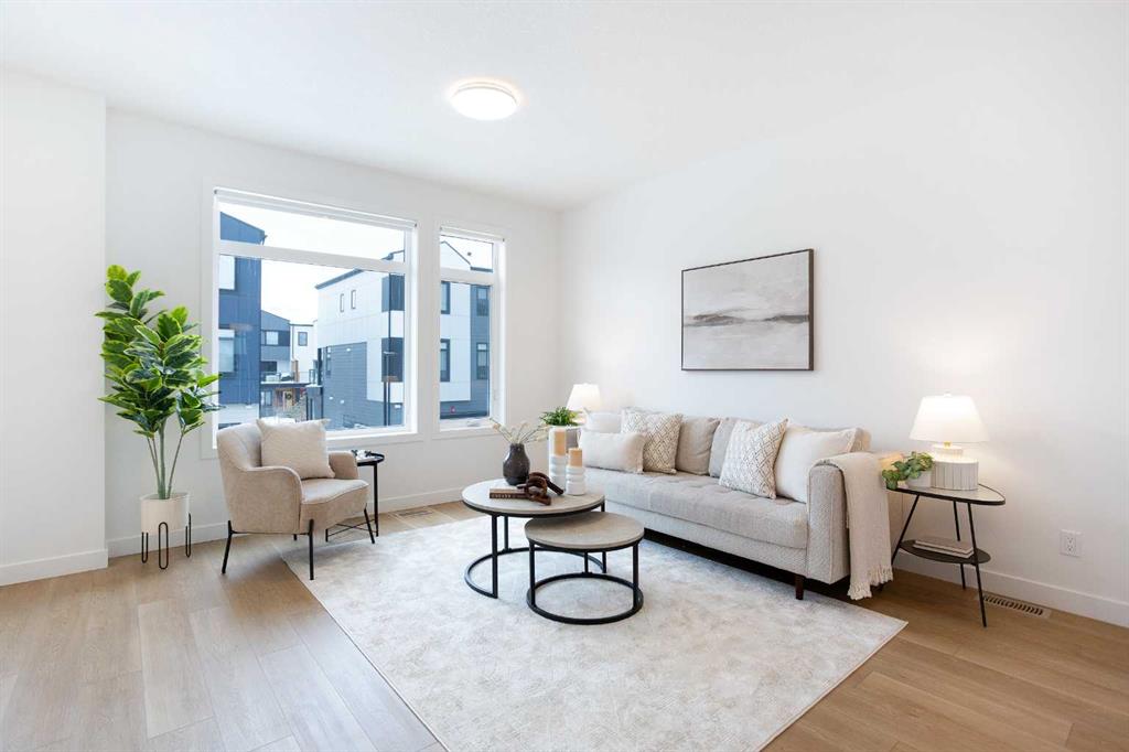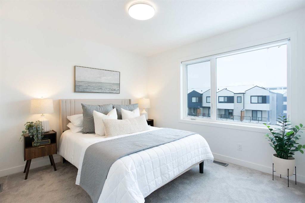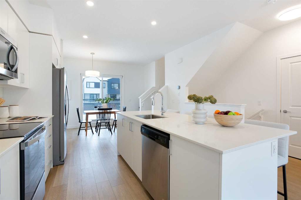 *** OPEN HOUSE SUNDAY JANUARY 18TH: 1:00 PM – 4:00 PM *** Step into a world where sophistication seamlessly meets everyday comfort in this remarkable contemporary townhome. Boasting over 1,634 sqft spread across three impeccably designed levels, this residence features three spacious bedrooms and two and a half bathrooms, offering an environment of refined, turn-key living. The moment you enter the welcoming foyer, you are greeted by a beautiful main floor living room, bathed in an abundance of natural light. This ground floor ensures ultimate functionality, featuring a generously sized coat closet, utility room, and a practical mudroom that provides direct, access to your convenient double attached garage. Upstairs, discover the heart of the home – a bright and open haven for both daily life and entertaining. The family room provides an idyllic setting and offers a bright and inviting ambience. The stunning, modern kitchen showcases sleek countertops, ample cabinetry, and is anchored by a large center island that provides comfortable seating for four. This culinary space flows effortlessly into the generously sized dining room. Extending your living space outdoors is a sunny balcony located just off the dining area—the perfect spot for enjoying your morning coffee or hosting summer evening gatherings. For the convenience of your guests, a stylish two-piece powder room completes this impressive main entertaining level. The private upper level is dedicated to peaceful relaxation. The flooring transitions to plush carpeting, creating a tranquil environment for the three spacious bedrooms. The primary suite is a true retreat, featuring a private three-piece ensuite and a dedicated walk-in closet. The two additional great-sized bedrooms, each with ample closet space, share a well-appointed four-piece main bathroom, plus an essential addition to this floor is the conveniently located upper-level laundry room. Beyond the elegant interior, this home offers superb comfort and convenience, including central air conditioning, parking for 4, plus a storage room within the garage. Designed for those who value style, comfort, and unparalleled convenience, this home checks all the boxes. Set in Belvedere—one of Calgary’s most exciting and fast-growing neighborhoods, you are placed moments from everything you need. Whether you’re a first-time buyer, growing family, or investor, this property is a must-see so book your showing today!
