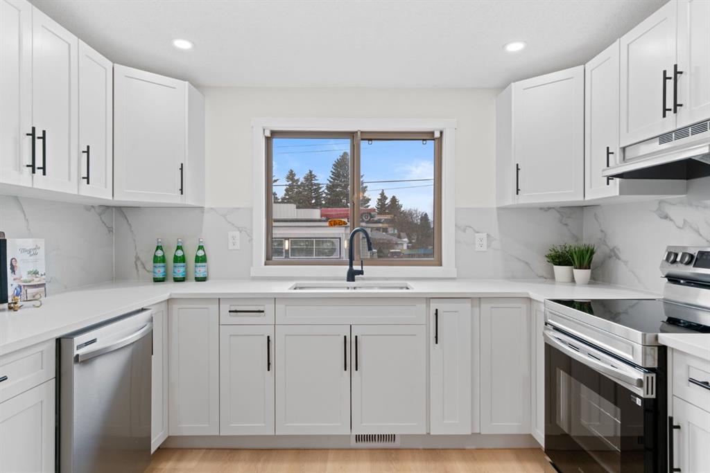 OPEN HOUSE SAT MARCH 7 1:00-3:00PM!!! Welcome to this beautifully updated duplex located in the highly desirable community of Bowness. Situated on a corner lot and just steps from the Bow River pathways and Bowness Park, this home offers the perfect combination of modern updates, functional living space, and an unbeatable location. The main level has been thoughtfully refreshed with brand new flooring, fresh paint, and a fully renovated kitchen, creating a bright and inviting living space. The stunning new kitchen features crisp white cabinetry, modern hardware, sleek countertops, stainless steel appliances, and stylish backsplash finishes. The adjacent dining and living areas are filled with natural light and provide a comfortable layout for both everyday living and entertaining. From the living room, step out onto the front balcony, the perfect place to enjoy your morning coffee. This level also offers two spacious bedrooms and a full bathroom, providing convenient single-level living if desired. The fully finished basement expands the living space with a large recreation area, two additional bedrooms, a second full bathroom, and a dedicated laundry area, making it ideal for families, guests, or a home office setup. Outside, the property offers a private backyard space along with a detached double garage, providing ample parking and storage. The corner lot adds additional privacy and curb appeal. Located in the heart of Bowness, this home is surrounded by some of Calgary’s best outdoor amenities. Enjoy walking or biking along the Bow River pathways, spending summer days at nearby Bowness Park, or taking advantage of the quick access west to the mountains. The property is also conveniently located close to schools, shopping, restaurants, and is directly across from the iconic Angel’s Drive-In, a beloved local landmark. With easy access to major routes, commuting to downtown Calgary is quick and convenient. Offering modern updates, a functional layout, and an incredible location, this home presents an excellent opportunity to enjoy everything Bowness has to offer.