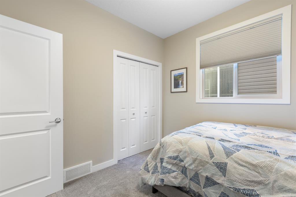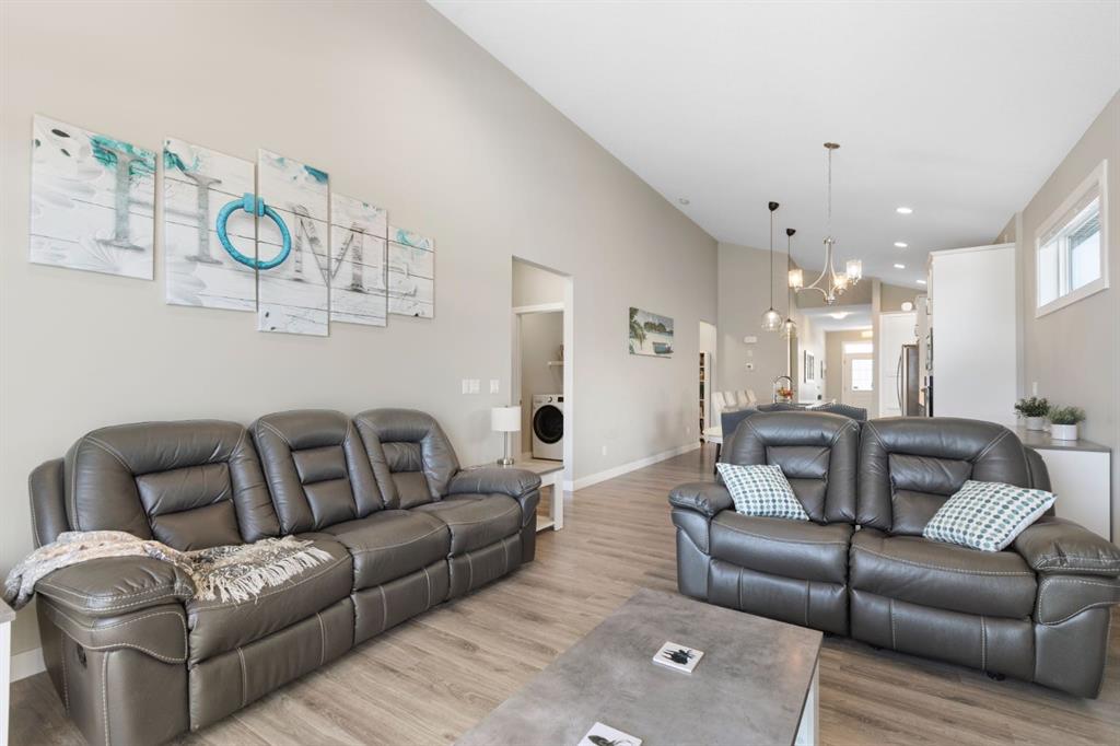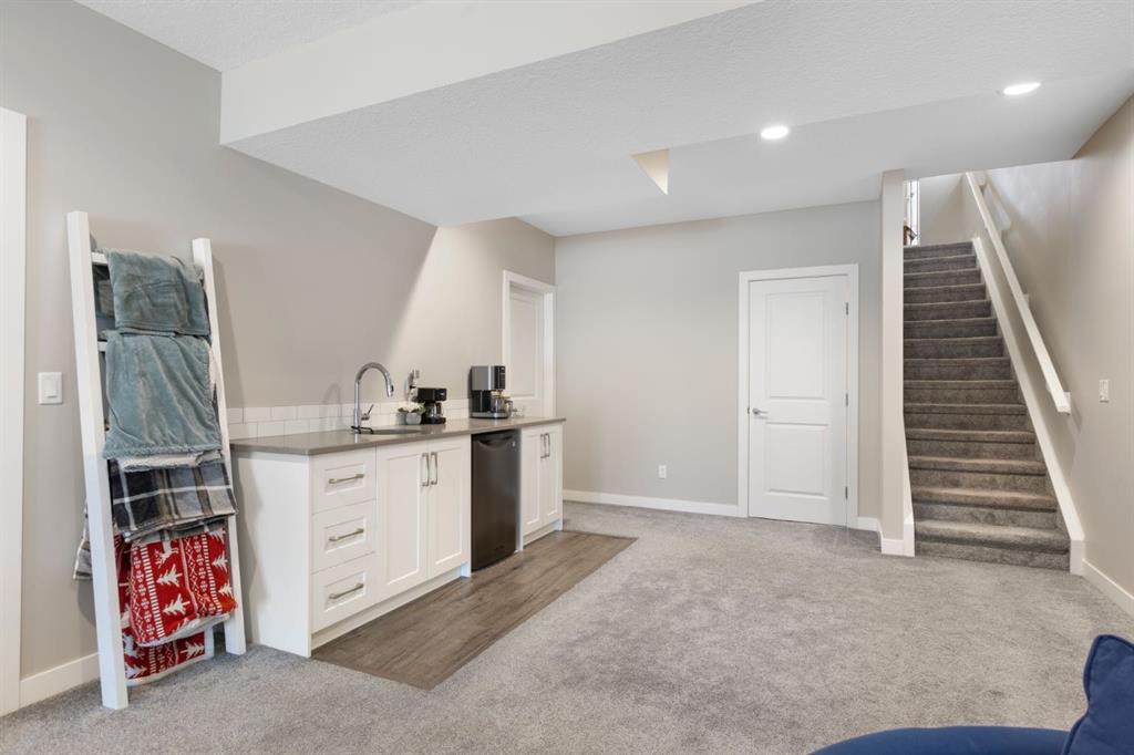 Wake up to water views in this stunning walk-out bungalow backing directly onto the Bayview canal, a rare opportunity to enjoy privacy, tranquility, and year-round outdoor living in one of Airdrie’s most desirable communities. With just water, pathways, and open sky, this home offers the peaceful retreat so many buyers are searching for but rarely find. Designed for effortless main-floor living, the home features vaulted ceilings throughout the main level, including the primary bedroom and living room, creating a bright, open atmosphere filled with natural light. The kitchen is both stylish and functional, showcasing a gas range, stainless steel appliances, quartz countertops, and a full side pantry, making it ideal for those who love to cook and entertain. Step outside to the east-facing back deck overlooking the canal—perfect for enjoying morning sun, coffee, or hosting guests. The primary suite is a true retreat, offering serene water views, a walk-in closet plus a second closet, and a spa-inspired 5-piece ensuite with dual sinks and a deep soaker tub. The main level also includes a second bedroom, full bathroom, convenient laundry room, and a spacious mudroom off the garage, adding everyday practicality to the elegant layout. A cozy gas fireplace anchors the living room, enhancing both comfort and ambiance. The finished walk-out basement extends the living space with a large family room, two additional bedrooms, a full bathroom, and a wet bar with patio access, making it ideal for entertaining, guests, or multigenerational living. Tucked away beneath the stairs is a hidden “secret room,” accessed through a closet—perfect as a play space, dog den, or additional storage. The fully landscaped backyard is complete with a hot tub and a gate providing direct access to the walking path and canal, where residents enjoy skating, hockey, canoeing, kayaking, paddle boarding, and peaceful strolls throughout the seasons. Located in a family-friendly, well-maintained neighbourhood, this home is just a short walk to Nose Creek Elementary, multiple parks, playgrounds, a bike track, tennis courts, basketball courts, and an outdoor fitness area. Bayview Park, with its creeks, picnic areas, amphitheater, and additional tennis courts, is minutes away. In winter, the community comes together to create skating rinks enjoyed all season long—right outside your back door. This 4-bedroom, 3-bathroom walk-out bungalow delivers a lifestyle defined by convenience, comfort, and connection to nature. Backing onto the Bayview canal, it offers a rare blend of privacy, views, and low-maintenance luxury in a quiet, established setting—an exceptional place to call home.