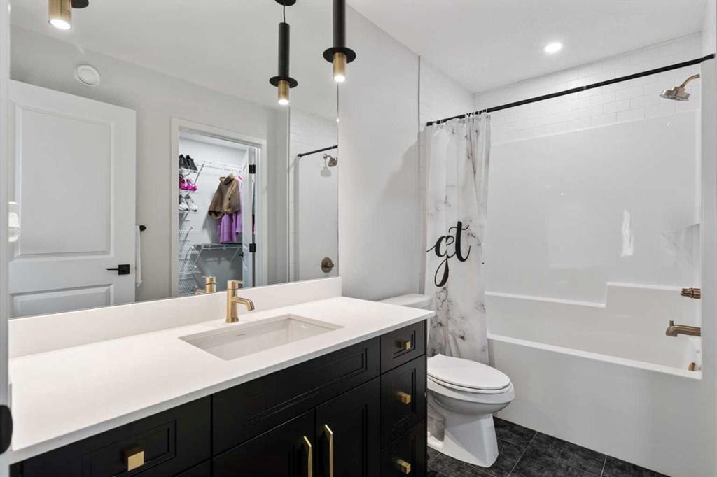 This beautifully curated residence offers refined luxury, thoughtful design, and exceptional upgrades in one of Calgary’s most desirable southwest communities. From the moment you enter the inviting open foyer, elegance and functionality are immediately apparent. A generous mudroom with direct garage access and a stylish 2-piece powder room provide everyday convenience right off the entry. The heart of the home is the gourmet kitchen, showcasing the Gourmet Advantage Package with 3 cm GG quartz countertops, full-height backsplash and cabinetry, deep undermount sink, built-in wine rack, walk-through pantry, breakfast bar, and upgraded stainless steel appliances. A 600 CFM Faber chimney hood fan completes the space, while a gas line with shut-off valve is installed for a gas range, offering flexibility to convert from the current electric stove if desired. Recessed lighting and an open-concept layout enhance the home’s bright, upscale ambiance. The sun-filled dining area features elegant glass sliding patio doors that open directly to the backyard, creating seamless indoor-outdoor living. The formal living room is anchored by a striking feature fireplace with custom built-ins, providing a refined focal point for both entertaining and relaxing. Upstairs, a large bonus room offers a versatile family space, while the primary suite serves as a private retreat with oversized windows, a massive walk-in closet, and a spa-inspired 4-piece ensuite. Two additional generously sized bedrooms share a beautifully appointed 4-piece bathroom with custom shelving. A convenient upper-level laundry room with sink and storage adds to the home’s thoughtful design. The fully developed basement expands your living space with a spacious family/recreation room, a large bedroom, and a 4-piece bathroom—ideal for guests, teens, or a home office. Outside, enjoy a fully fenced and landscaped backyard complete with a private patio and gas BBQ line, perfect for summer entertaining or quiet evenings at home. Additional premium upgrades include heated floors in all bathrooms, central air conditioning, Kinetico water softener and dechlorinator, Blanco Liven Silgranit laundry sink, upgraded stair railings to the basement, oak wood-capped stub wall detailing, and recessed lighting throughout.Ideally located near parks, pathways, schools, shopping, and major routes, this exceptional home delivers a lifestyle where luxury meets everyday comfort—a must-see to truly appreciate.