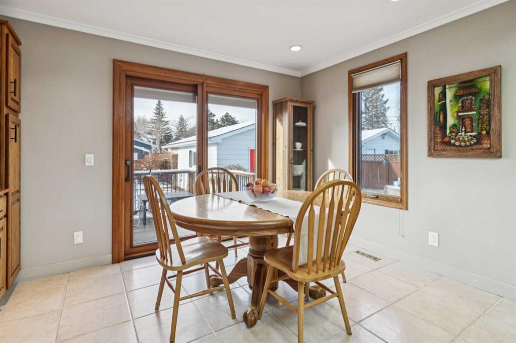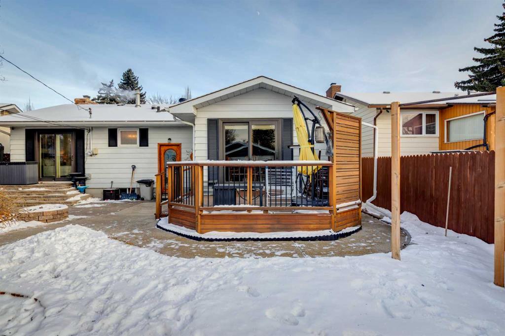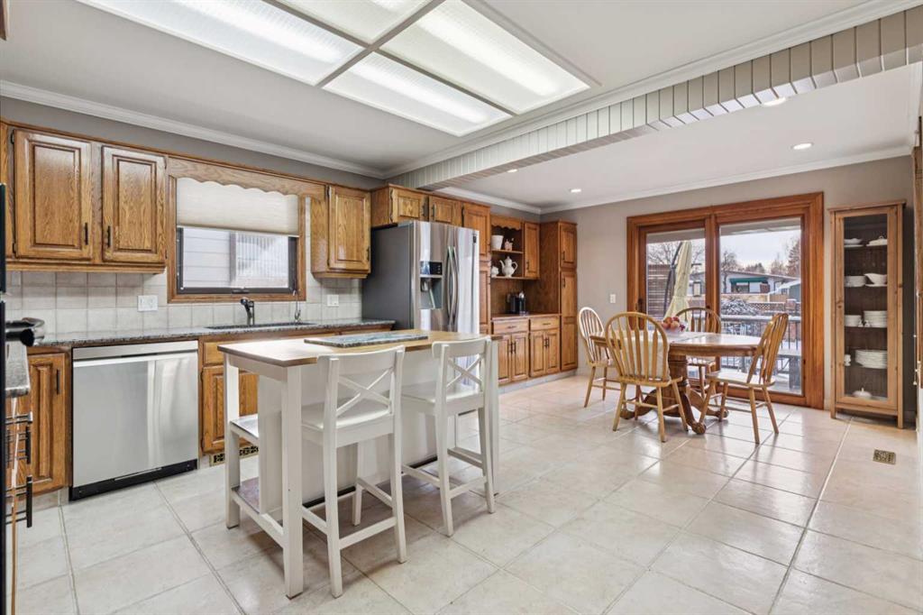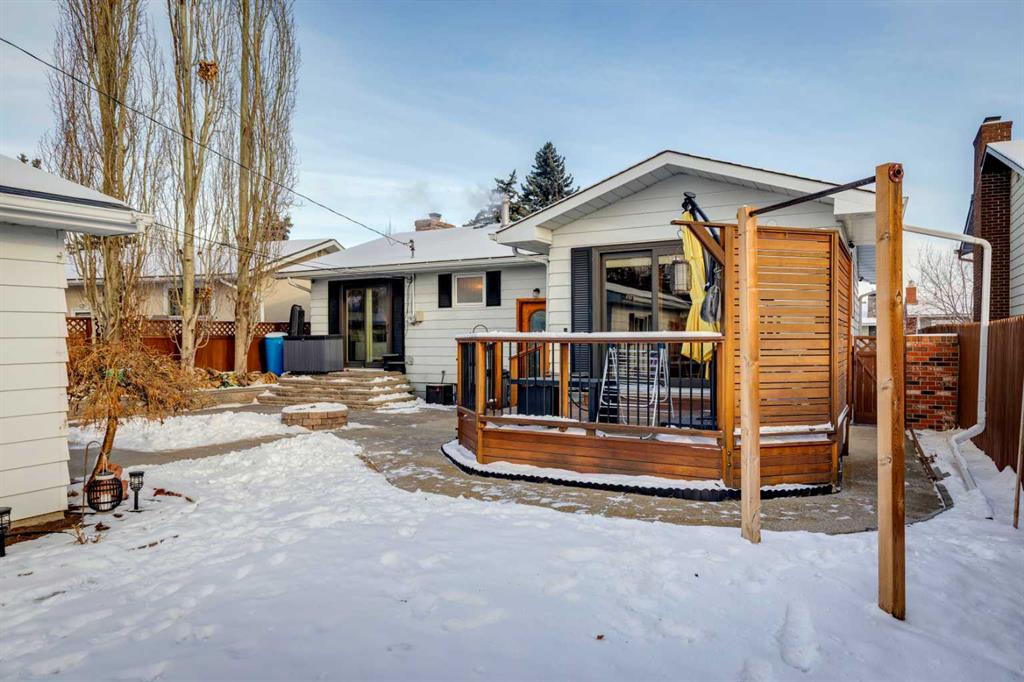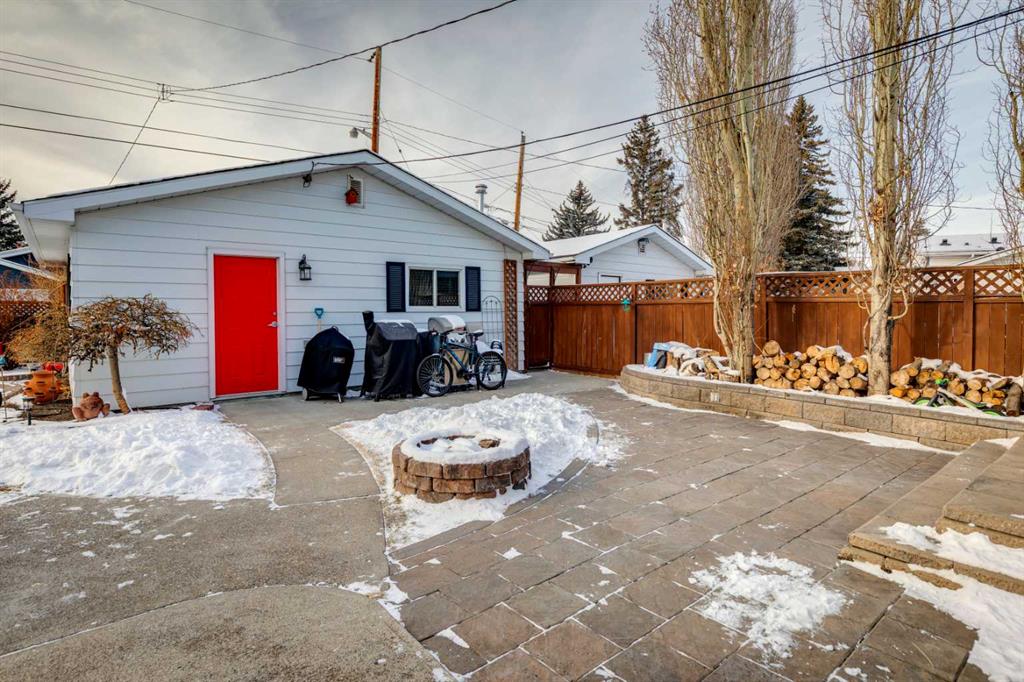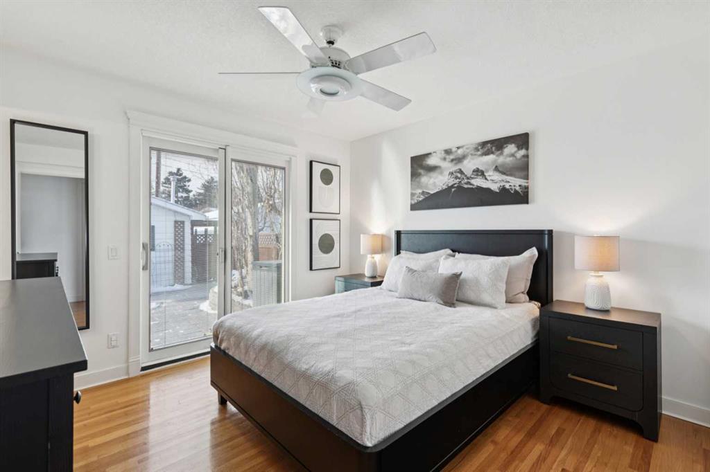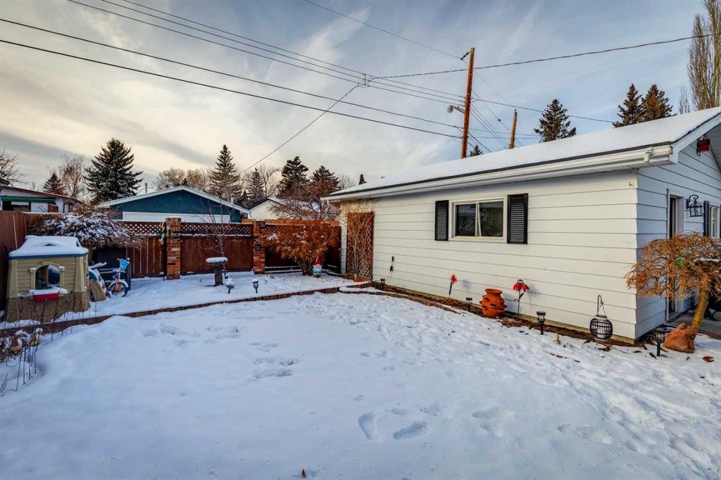 This well-cared-for bungalow offers a welcoming layout and practical upgrades in a location that’s hard to beat. Step into a defined foyer with space for coats and shoes before moving up into a sun-filled living room, where large windows and original hardwood floors create a bright, comfortable space ideal for everyday living or entertaining. Down the hall are three bedrooms, including two generous secondary rooms with closets and great natural light, plus a full bathroom with a skylight, linoleum flooring, and convenient access from the hallway. The primary bedroom is set apart for privacy, featuring a ceiling fan, a 2-piece ensuite, and sliding doors that open directly to the backyard. The kitchen and dining area offer excellent functionality with ample cabinetry, a movable island for added prep space, full-size appliances including a wall oven and microwave, an electric cooktop, a nearly new dishwasher, and a recently replaced fridge. Sliding doors off the dining area lead to the deck, bringing in more light and making indoor-outdoor living easy. The fully finished basement expands your living space with a large recreation room, built-in storage, a cozy gas fireplace, and a Murphy bed for guests that tucks away when not in use. A combined utility and laundry room includes a newer washer, a 3-piece bathroom, and flexible space for storage or hobbies. Outside, the fully fenced backyard is thoughtfully landscaped with a deck, fire pit, stone pathways, underground sprinklers, and easy access to the detached garage. A paved alleyway provides convenience for garage access. As an additional perk, the garage roof was replaced just 2–3 years ago. Additional highlights include full-house air conditioning, recently cleaned carpets, tile and wood flooring where practical, and close proximity to public and charter schools, IKEA, Costco, and everyday amenities. Located in Acadia, this home is part of a mature, tree-lined community known for its strong sense of neighbourhood, excellent access to transit and major routes, abundant parks, and a central Calgary location that makes commuting and daily errands quick and convenient.