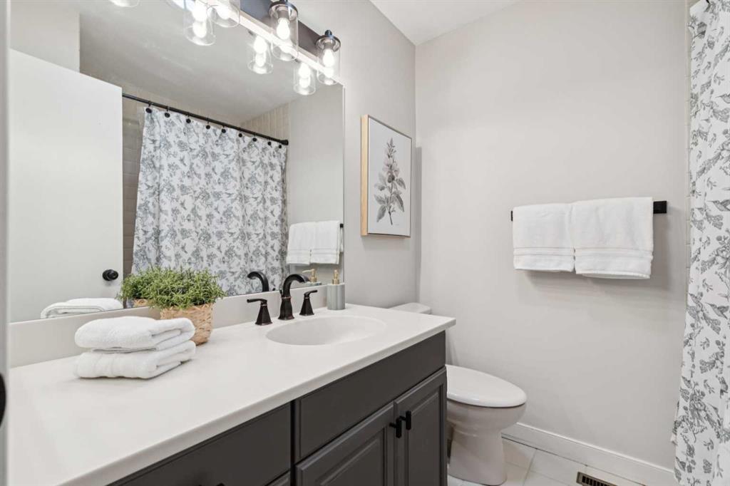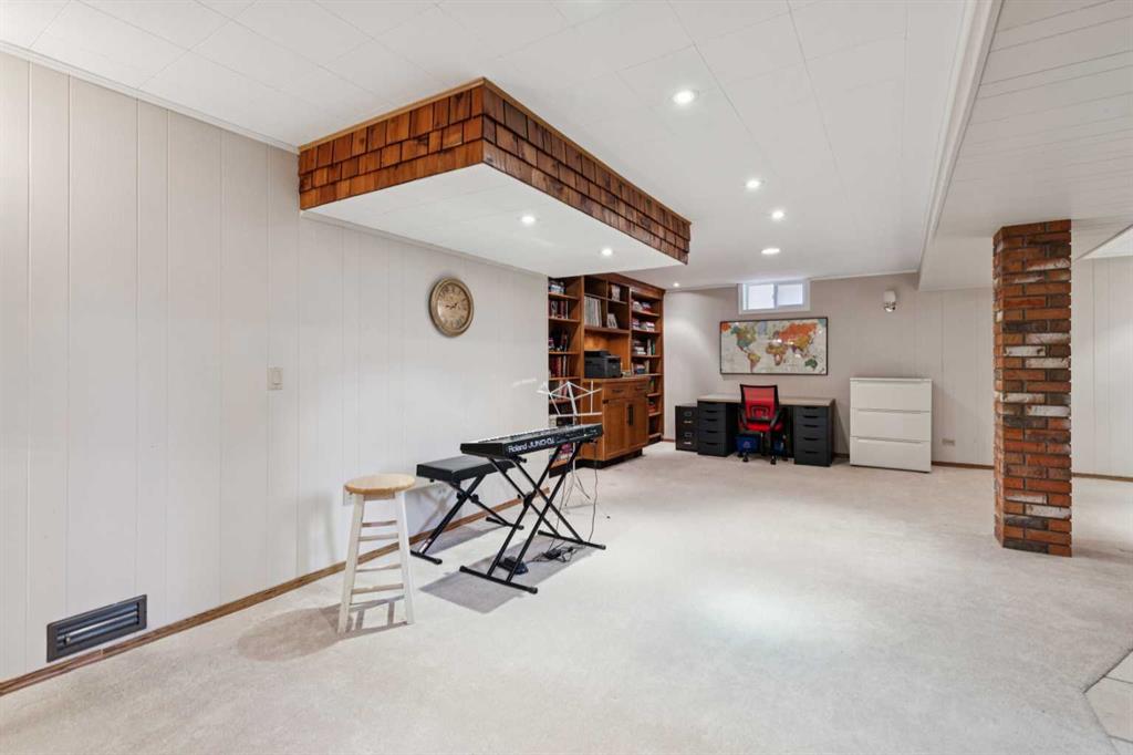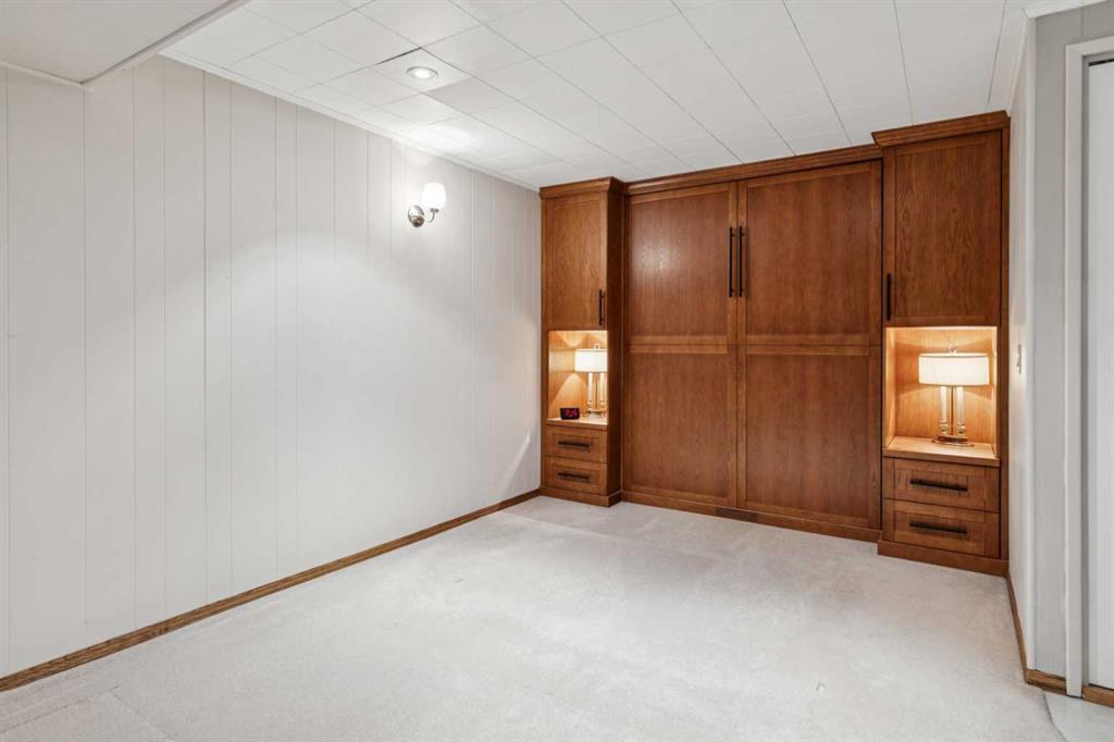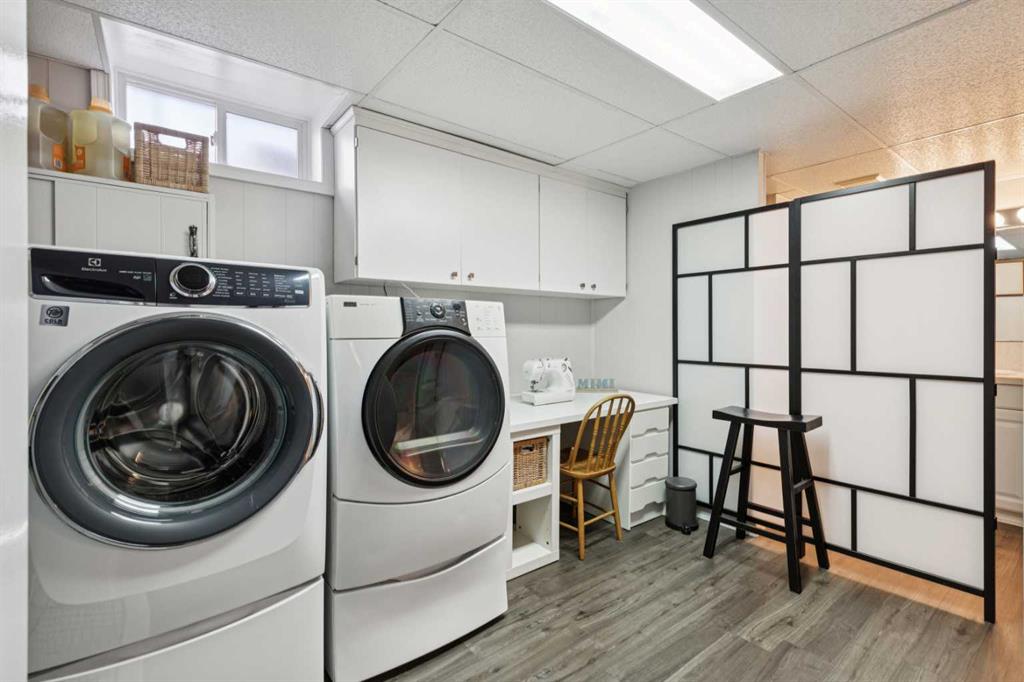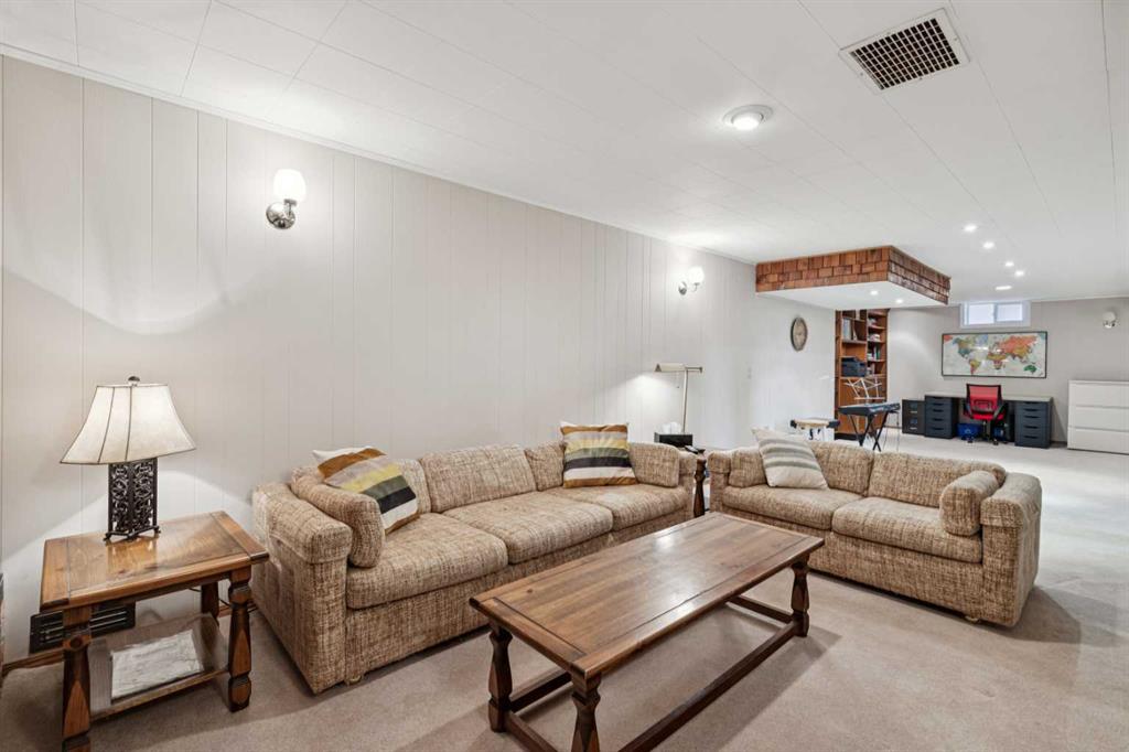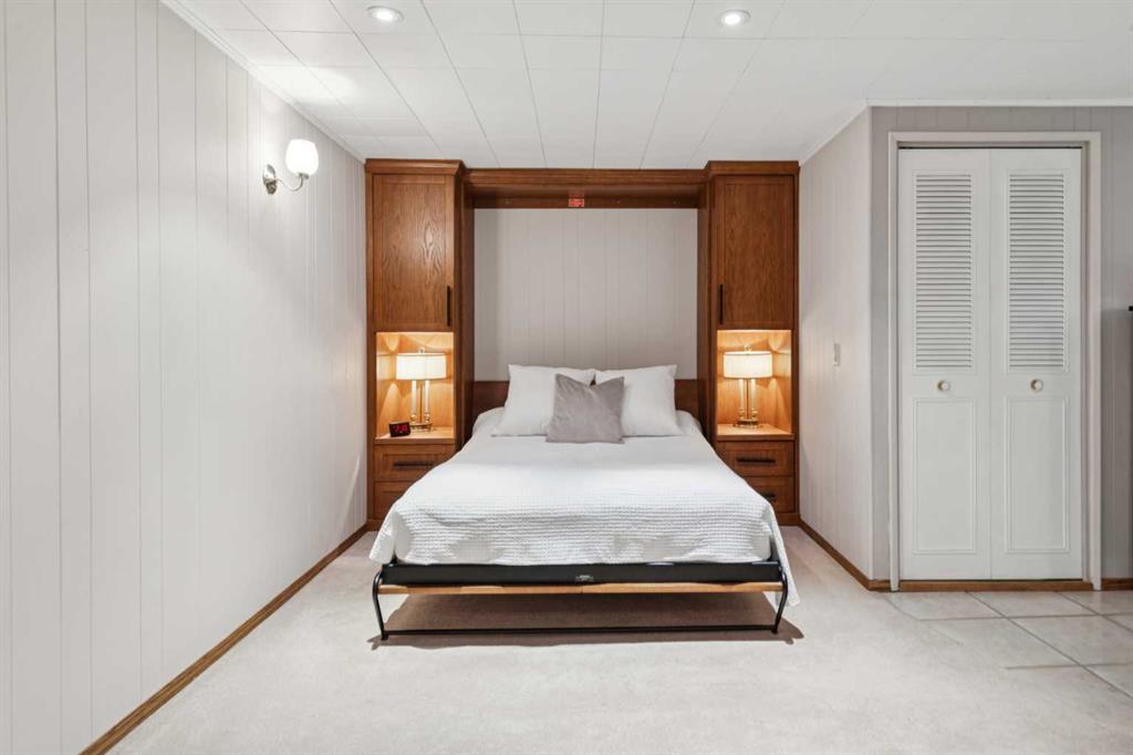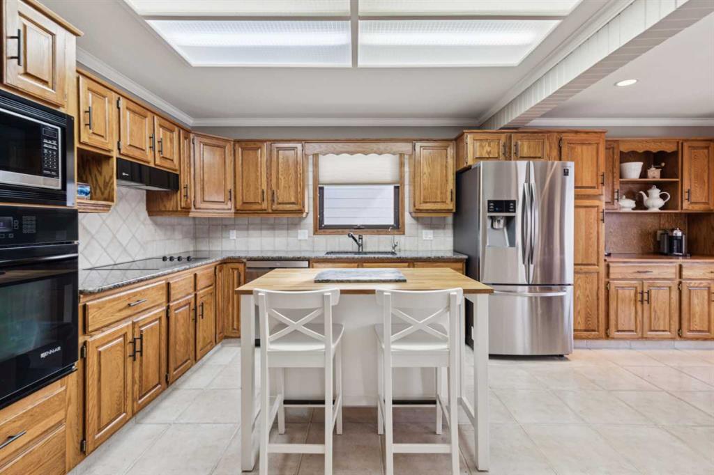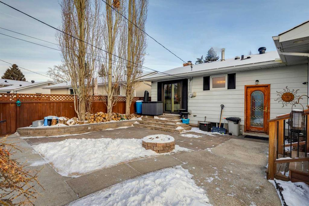 This well-cared-for bungalow offers a welcoming layout and practical upgrades in a location that’s hard to beat. Step into a defined foyer with space for coats and shoes before moving up into a sun-filled living room, where large windows and original hardwood floors create a bright, comfortable space ideal for everyday living or entertaining. Down the hall are three bedrooms, including two generous secondary rooms with closets and great natural light, plus a full bathroom with a skylight, linoleum flooring, and convenient access from the hallway. The primary bedroom is set apart for privacy, featuring a ceiling fan, a 2-piece ensuite, and sliding doors that open directly to the backyard. The kitchen and dining area offer excellent functionality with ample cabinetry, a movable island for added prep space, full-size appliances including a wall oven and microwave, an electric cooktop, a nearly new dishwasher, and a recently replaced fridge. Sliding doors off the dining area lead to the deck, bringing in more light and making indoor-outdoor living easy. The fully finished basement expands your living space with a large recreation room, built-in storage, a cozy gas fireplace, and a Murphy bed for guests that tucks away when not in use. A combined utility and laundry room includes a newer washer, a 3-piece bathroom, and flexible space for storage or hobbies. Outside, the fully fenced backyard is thoughtfully landscaped with a deck, fire pit, stone pathways, underground sprinklers, and easy access to the detached garage. A paved alleyway provides convenience for garage access. As an additional perk, the garage roof was replaced just 2–3 years ago. Additional highlights include full-house air conditioning, recently cleaned carpets, tile and wood flooring where practical, and close proximity to public and charter schools, IKEA, Costco, and everyday amenities. Located in Acadia, this home is part of a mature, tree-lined community known for its strong sense of neighbourhood, excellent access to transit and major routes, abundant parks, and a central Calgary location that makes commuting and daily errands quick and convenient.