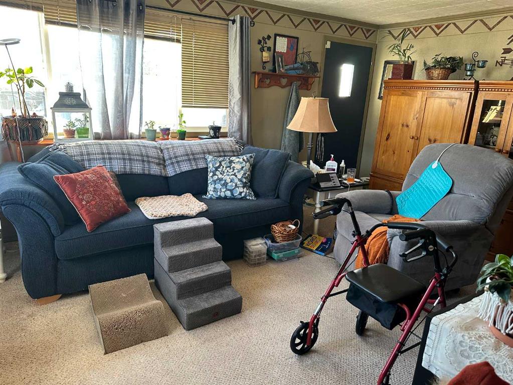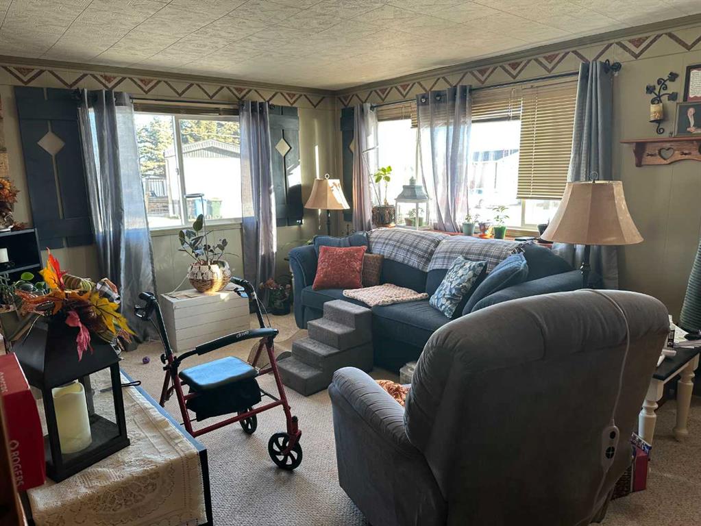 Here is a perfect opportunity to get into the real estate market at a very affordable price. This 3 bedroom, 1 bathroom mobile would be a great place to invest in and create home ownership. Located on a corner lot in Didsbury Mobile Home Park, there is extra space for parking your vehicles. With a large opening in the wall between the kitchen and living room, visiting with family and guests will be very comfortable, as the home cooked meals are being prepared. In the summer months you can fire up the BBQ and enjoy a steak, hamburger or hot dog on the west facing covered deck, followed by a relaxing time as you unwind for the evening. Give some serious thought to this property and see if it would work for you.