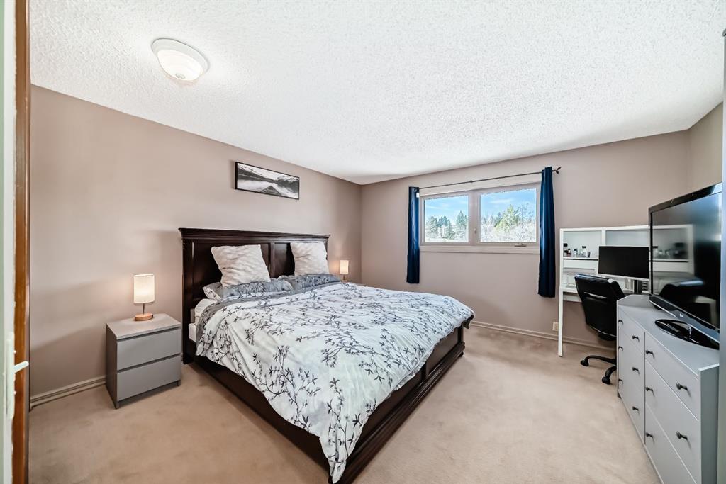 Welcome to Beddington Heights! Perfectly positioned on a corner lot directly facing Berwick Park, this bright, move-in ready home offers over 1,700 sq ft of developed living space, a sun filled backyard, and extensive recent upgrades. Living room is flooded w/natural light and is the perfect spot to relax while enjoying a brand new gas fireplace (2025). The kitchen has good storage and large windows overlooking the expansive backyard. Patio doors lead to a tiered, no maintenance deck with a gas line for your BBQ. Alley access with a gate provides RV parking potential. Upstairs, the spacious primary bedroom easily fits a king bed, it also has an updated bath, and two well sized additional bedrooms. The developed basement offers a large bedroom that can be used as a recreation room, ample storage, and a new egress window. Major updates: furnace (2023), water heater (2023), electrical panel (2023), solar panels (2023) producing an annual average of approximately 3,450 kWh/yr over the past two years, central A/C (2024), and roof (2025). The huge backyard enjoys ample sun exposure, ideal for gardening, entertaining, or relaxing outdoors. Walk to Nose Hill Park, Beddington Towne Centre, St. Bede School and Beddington Heights School, with quick access to Beddington Boulevard NW, transit (#3 bus route), Ascension Catholic Parish, and Deerfoot Trail. This is a move in ready home where the big expenses are already taken care of, offering comfort, efficiency, and an exceptional family friendly setting.