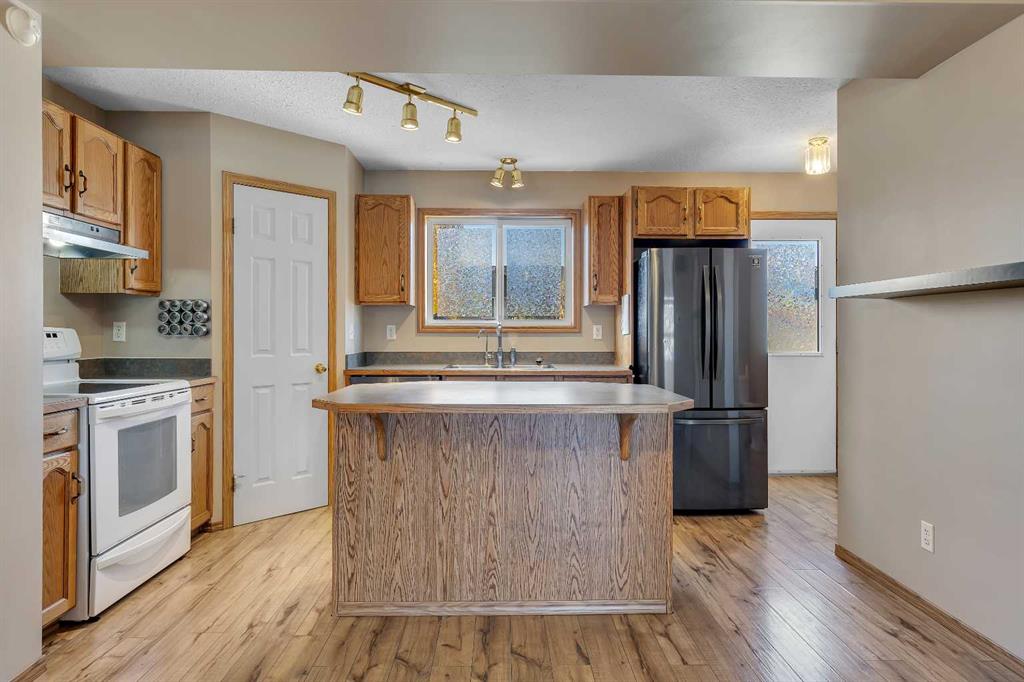 The bright and inviting main floor features an open layout perfect for family living and entertaining. Upstairs you’ll find 3 good-sized bedrooms, while the fully developed basement adds a 4th bedroom, additional living space, and a 3 piece bath. This beautiful yard has a Schubert choke cherry tree, chum tree (cherry plum hybrid), 4 haskap (blue honeysuckle berry) bush that produces delicious sweet berries, rose bush, gooseberry bush, 3 different type of strawberries, pink rose bush, black/red/golden raspberries, sour cherry & a Saskatoon berry bush. The seller is including a 1100 litre cistern at the rear of the home so the new owner can easily and economically water these plants/trees.