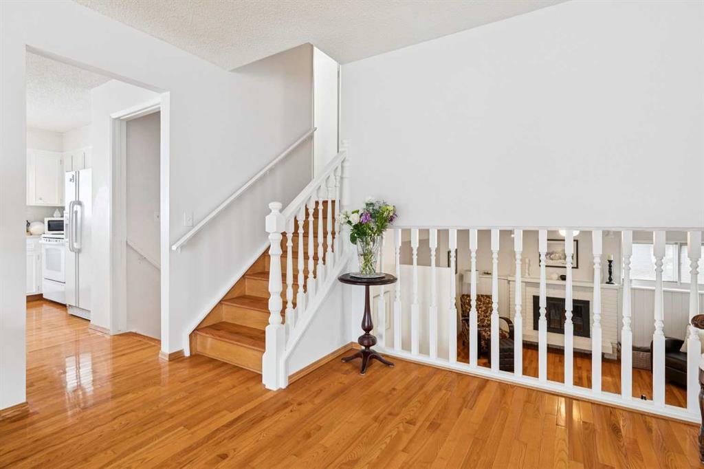 **Open house Sat April 18 from 2-4pm, and Sunday April 19 from 12-2pm** In the desirable community of Edgemont, this 4-level split offers 1,866 sq ft of developed living space with a functional layout. The living room showcases a large bay window that fills the space with natural light, complemented by beautiful oak hardwood flooring. A dedicated dining area offers ample space to accommodate a full-sized table and hutch. The kitchen features an eat-in dining area along with plenty of counter space for everyday living. Upstairs, the spacious primary suite includes a three-piece ensuite. Two additional bedrooms and a full bathroom complete this level.
