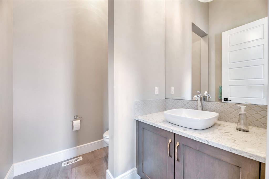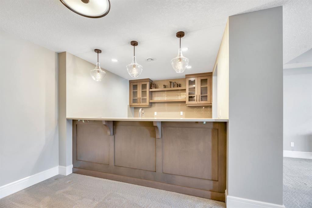 The fully finished walkout basement with in-floor heating slab extends the living space with comfort and versatility, a generous entertainment area with wet bar, a full bathroom, and a fifth bedroom plus ample storage space in the mechanical room.