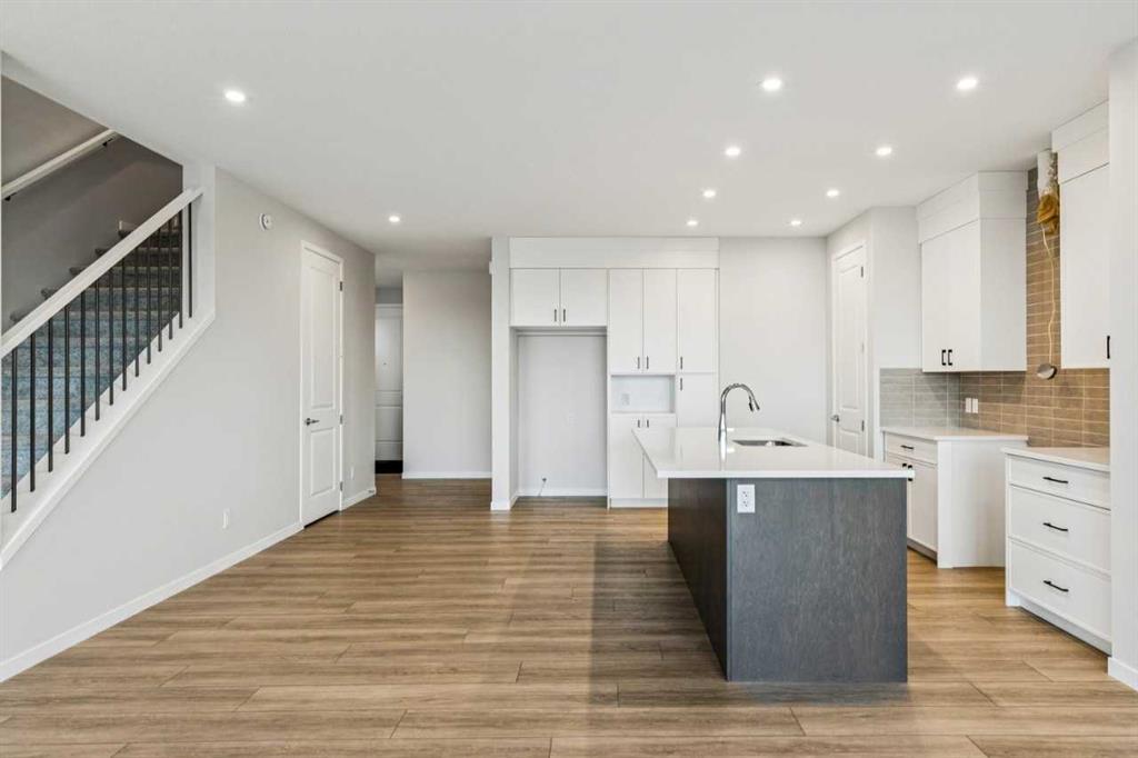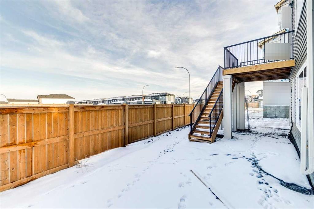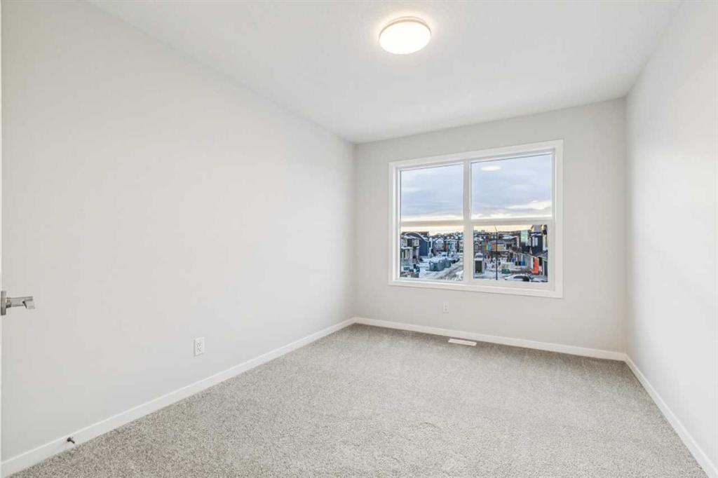 This walkout home offers a bright, practical layout designed for everyday living and entertaining. The main floor includes a front flex room and an open concept living, dining, and kitchen area anchored by a fireplace. The kitchen features tight to ceiling cabinetry and connects seamlessly to the main living space. Added windows throughout enhance natural light, and 8 ft main floor doors add to the open feel. Upstairs, four bedrooms are arranged around a central bonus room with light from the stairwell window. The primary bedroom includes an upgraded five-piece ensuite with a soaker tub, tiled shower, dual sinks, and a walk in closet. Additional upgrades include railing throughout the home, a large walkout deck with stairs to the backyard, appliance allowance to select appliances that fit your lifestyle, and a tankless water heater. The home sits on a 108 ft long lot with no neighbours behind, providing added privacy and space. The walkout basement is roughed in for future potential development, offering long term flexibility. Never lived in and comes with full new home warranty coverage, this property represents a rare final phase opportunity in Belmont.