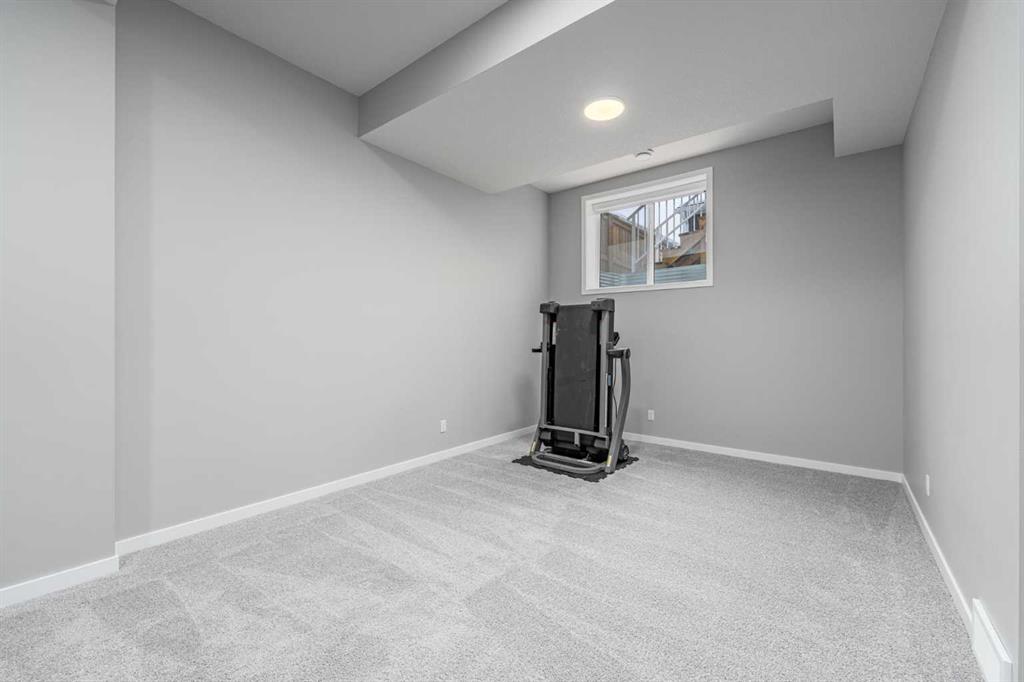 The basement is fully finished with exceptionally high ceilings, a huge rec room with a massive window letting in natural light, a large under-stair storage area that even includes a freezer, and a bedroom with its own walk-in closet.