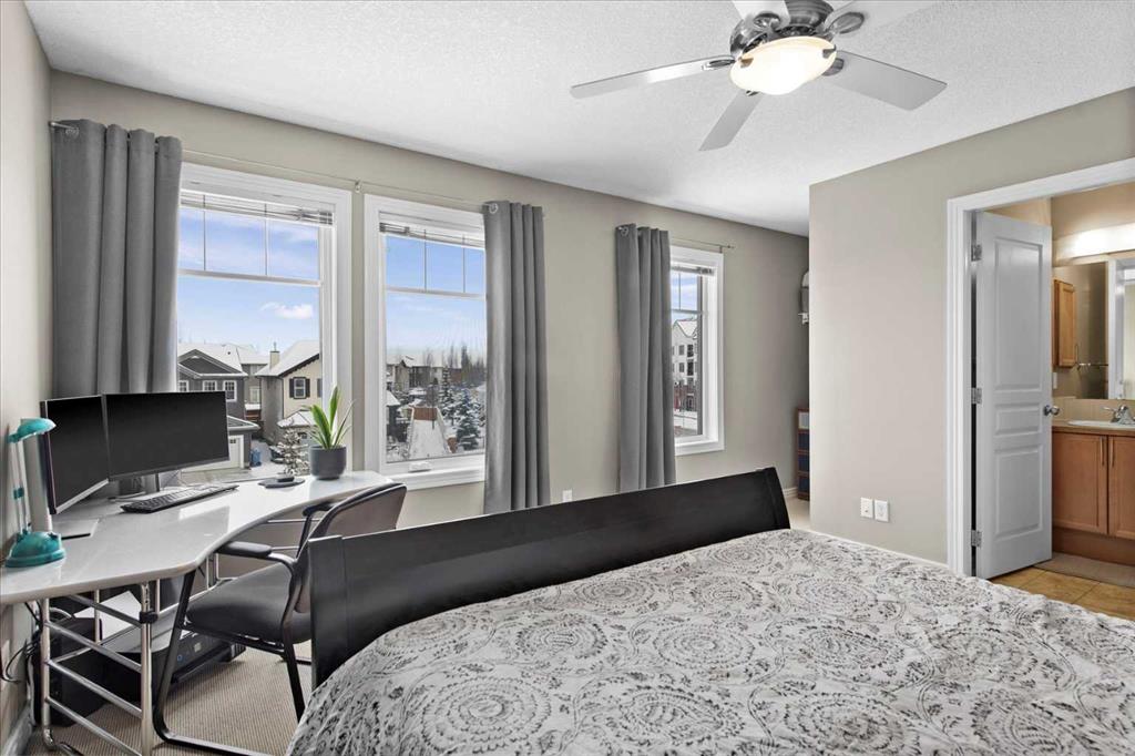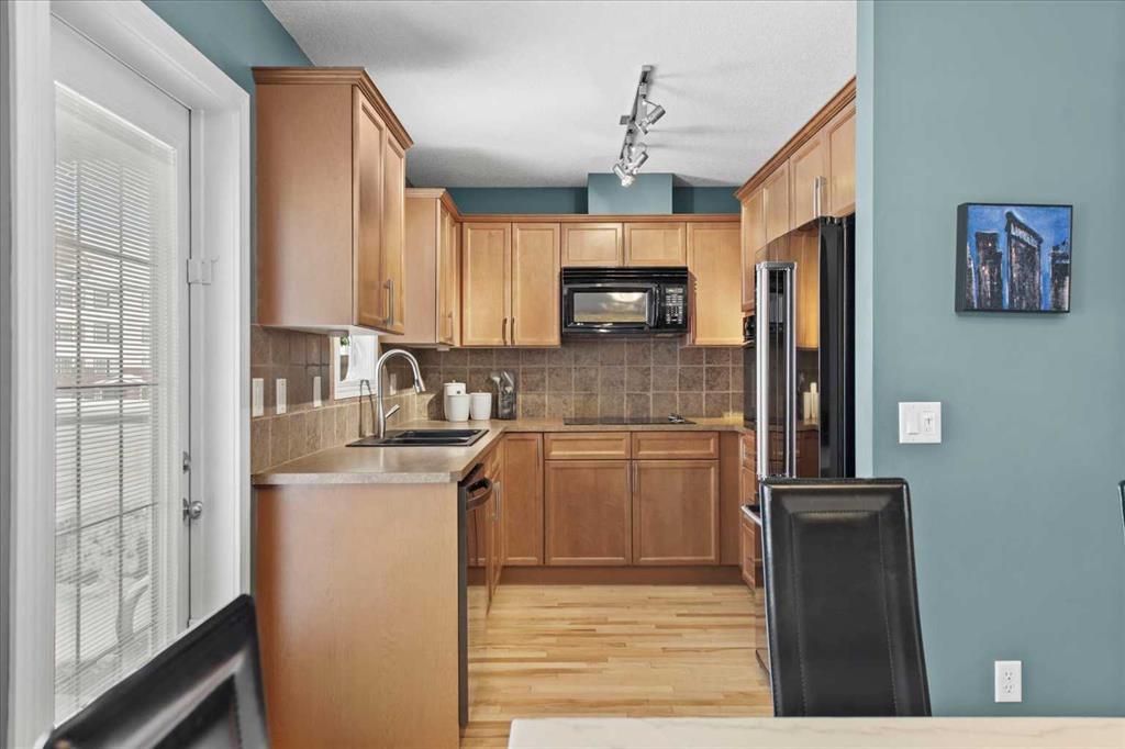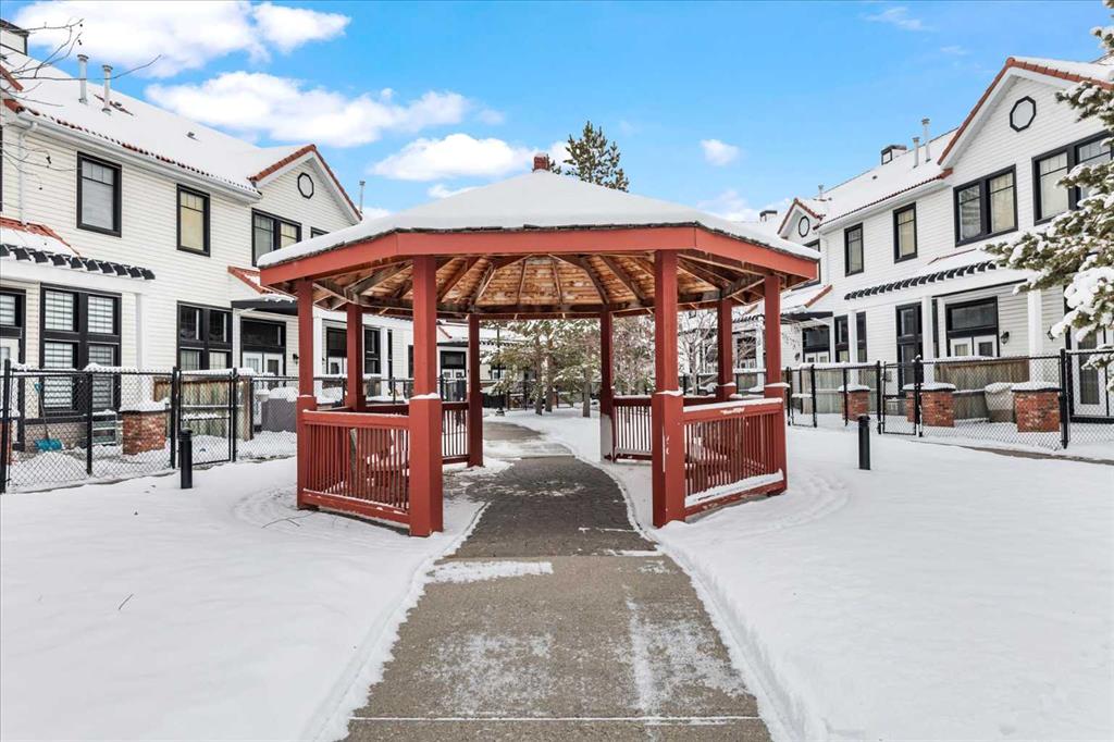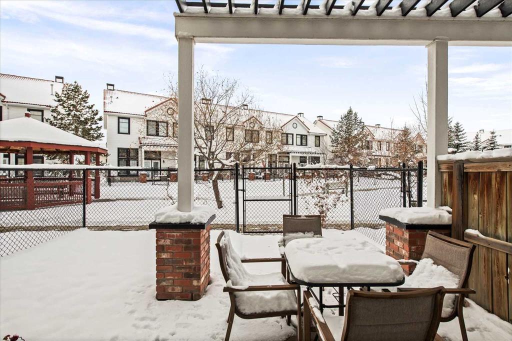 Cherished by its original owners since 2007, this lovely townhome is being offered to the market for the very first time. Set back from Royal Oak Way on an internal lane, this bright and welcoming residence reveals its character the moment you step inside. Heated tile flooring greets you in the foyer before you head up to the main level family room, where soaring vaulted ceilings and a dramatic wall of windows create an atmosphere of openness and light. Gleaming maple hardwood floors flow throughout the main living spaces, while garden doors open to your own fenced yard – a rarity in townhome living – complete with a pergola-covered patio for summer gatherings. Beyond your fence, a landscaped central courtyard unfolds with winding pathways, mature trees, and a charming gazebo shared by the community. Climb another half-flight to discover the kitchen and dining area, where warm maple cabinetry, and under cabinet lighting features, speak to the quality built into this home. A half-wall allows you to look down into the family room and out to the green-space beyond – maintaining connection across the levels. A second garden door leads to an upper balcony, while a convenient powder room on this level accommodates the stacking washer and dryer. The top floor presents dual primary bedrooms, each generously sized with its own walk-in closet and ensuite bathroom – ideal for a variety of living arrangements. Back at entry level, a door leads to the partial basement – currently unfinished but ideal for a home gym, hobby space, or additional storage. The attached single garage completes the practical amenities. Location amplifies the appeal: the community park with its recreation options sits immediately next door, two schools are within walking distance, and shopping and dining are a two-minute drive away. It’s little wonder the original owners stayed so long!