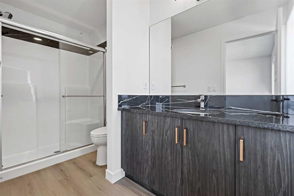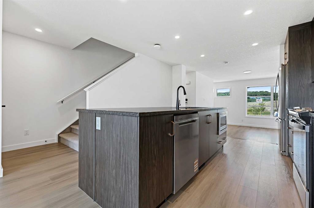 **BRAND NEW HOME ALERT** Great news for eligible First-Time Home Buyers – NO GST payable on this home! The Government of Canada is offering GST relief to help you get into your first home. Save $$$$$ in tax savings on your new home purchase. Eligibility restrictions apply. For more details, visit a Jayman show home or discuss with your friendly REALTOR®. *PREMIER TOWN HOME COLLECTION*BEAUTIFUL JAYMANBUILT NEW HOME*SOLAR & SMART TECH*NO CONDO FEES*PARKING FOR 2 CARS*This lovely 2 story END UNIT townhouse features a nice open floor plan that flows smoothly into the modern kitchen with a centralized flush eating bar, Elegant Black Pearl counters, full pantry, Stainless Steel WHIRLPOOL appliances that includes a 25 cu ft French Door Refrigerator with icemaker, Broan Power Pack hood fan with shroud, built-in Panasonic microwave with trim kit and upgraded slide in smooth top stove. As well as a convenient half bath + nice back entry! The 2nd level offers a Primary Bedroom with a private 3 piece en suite with sliding glass door shower & walk-in closet along with 2 additional spacious bedrooms & a full 4 piece main bath. Bonus: Upper Laundry room with Washer & Dryer! The unfinished basement provides roughed in plumbing & an opportunity for you to create & finish your ideal additional living space. Beautiful interior selections that include a silgranite Coal Black sink & soft close drawers. Other upgrades include 7×4 rear deck, fully fenced and landscaped, QUARTZ counters tops in kitchen and bathrooms, professionally designed Ebony Oasis colour palette, no condo fees, Triple Pane Windows, 10 solar panels, BuiltGreen Canada Standard with an EnerGuide rating, UV-C ultraviolet light air purification system, high efficiency furnace with Merv 13 filters & HRV unit, Navien-Brand tankless hot water heater, raised 9ft ceiling height in Living Room and Smart Home Technology Solutions. Enjoy living in this beautiful new community with nature as your back drop and trails within steps of your brand new Jayman BUILT Home. Located in an outstanding location in a vibrant new enclave with access to the Bow River, 80km of trails, playground and 9 acre ‘Woof Willow’ off-leash dog park. Situated close to the South city express ways and the popular new Township shopping area, Calgary’s newest shopping destination, packed full of amenities, all while being tucked away from the everyday busyness. Welcome Home!