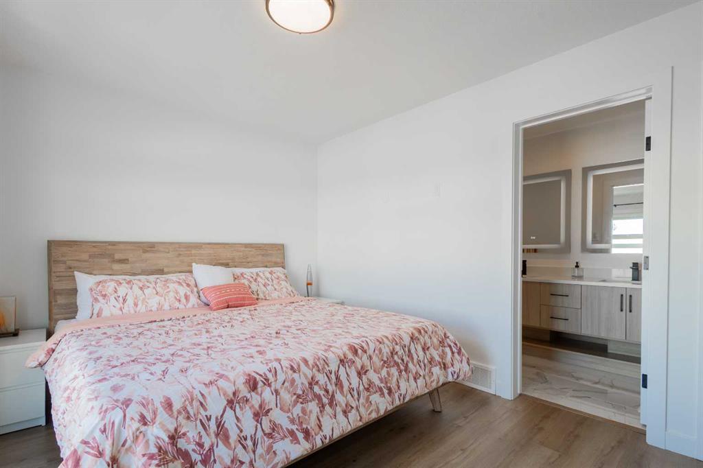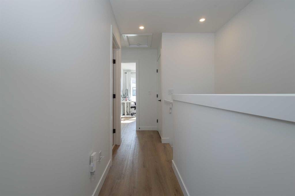 The upper level hosts a generously sized primary bedroom, complete with a walk-in closet featuring built-ins and a beautifully designed ensuite. Two additional well-proportioned bedrooms, a full bathroom, and a conveniently located laundry area complete this floor.