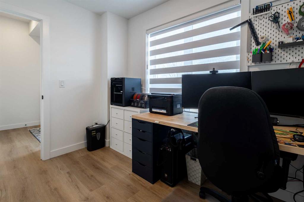 The entry level features a thoughtfully designed foyer, complemented by a private, enclosed office—ideal for working from home—alongside a spacious double attached garage.