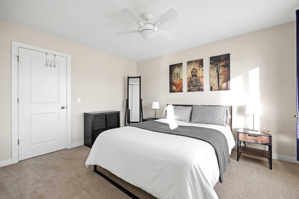 Upstairs you’ll find TWO SPACIOUS BEDROOMS. The primary suite easily fits a KING-SIZE BED and includes a spacious closet with built ins. The second bedroom is generously sized and perfect for guests, kids, or additional office space. The upper level is completed with a 4-piece bathroom featuring GRANITE COUNTERS + MODERN VANITY, along with a convenient laundry room with BRAND NEW washer and dryer.