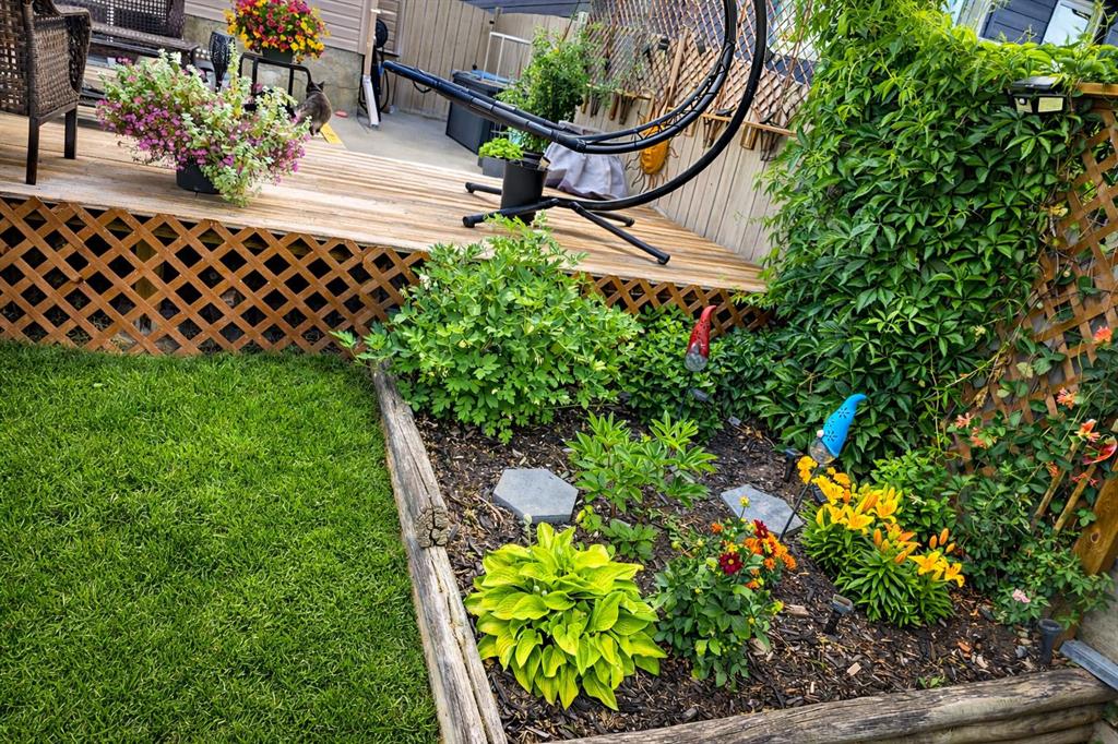 Step outside to your private outdoor retreat featuring a new deck (May 2022) overlooking tranquil green space—ideal for hosting guests, relaxing, or enjoying family time. The improved yard includes perennial flower beds, berry bushes, and thoughtful landscaping upgrades, providing year-round beauty and functionality.