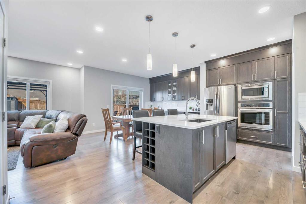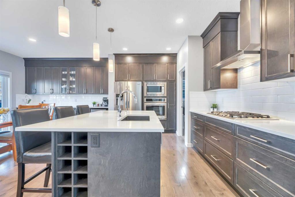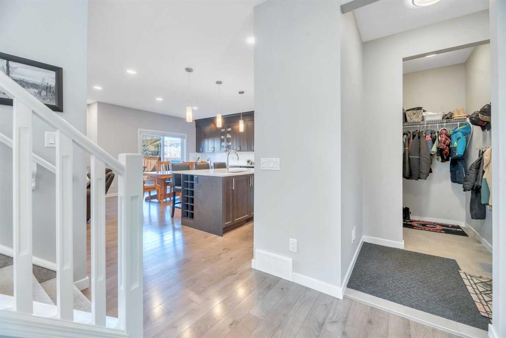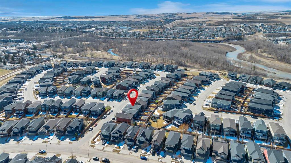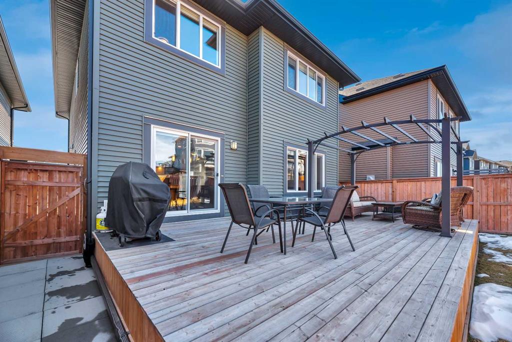 **OPEN HOUSE Sat Apr 25 1-4pm Sun 12-3pm** Nestled in a quiet, family-friendly neighborhood, this vibrant residence puts you within reach of parks, playgrounds, and the winding walking paths that Mountainview is famous for—plus Sheep River and jaw-dropping mountain vistas. You’ll be just minutes from downtown vibes while enjoying a welcoming, small-town feel. Packed with upgrades, this 2260 sq ft two-storey lives large with a bright, open floor plan centered by a welcoming wide front foyer and a mudroom with tons of hooks and storage. The star of the show is the bright custom kitchen, featuring a host/hostess bar with extra cabinetry, an oversized island with quartz counters, a colossal pantry, a gas cooktop, and a built-in oven. Patio doors spill out onto a west-facing backyard designed for effortless entertaining: easy-care landscaping, a handy shed, a gas line for BBQ, and a cozy seating area under a charming pergola. Little details make a big difference—Hunter Douglas blinds keep the sun in check, while central air conditioning keeps things comfy year-round. A snug gas fireplace adds warmth and ambiance to the living room, complemented by stylish pot lighting for mood-setting. A convenient 2-piece bath on the main floor completes the level. Upstairs, a walk through laundry suite designed for seamless everyday living with shelves keeps things tidy, and the primary suite sweeps you into luxury with a upgraded 5-piece ensuite (dual sinks, separate shower, deep soaker tub) and a massive walk-in closet. Three more bedrooms (two with walk-in closets) and a generous bonus room complete the upper level.