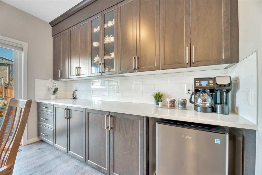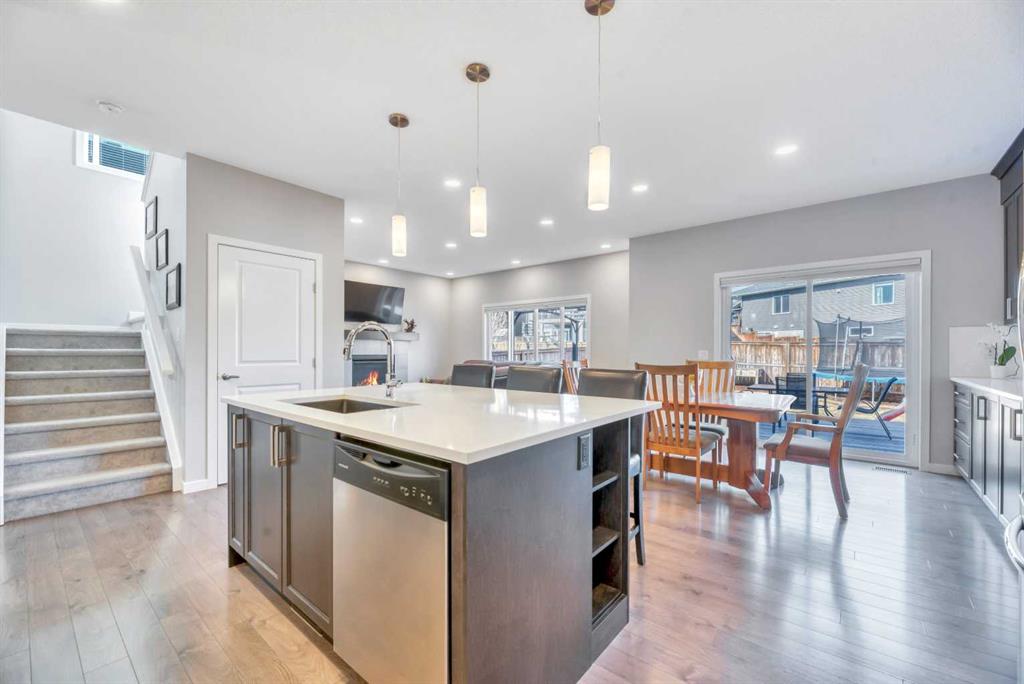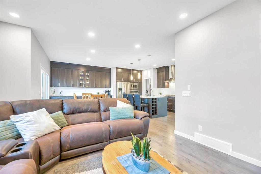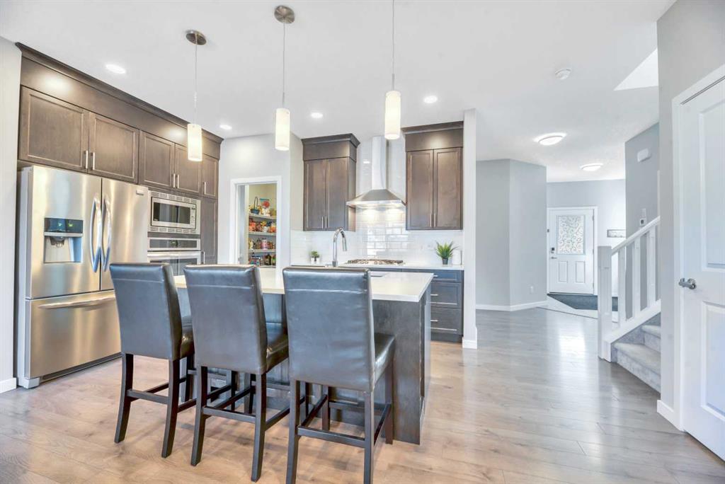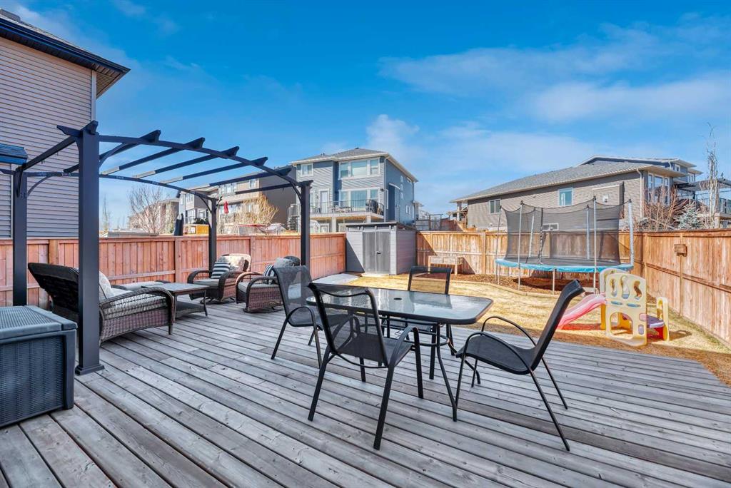 **OPEN HOUSE Sat Apr 25 1-4pm Sun 12-3pm** Nestled in a quiet, family-friendly neighborhood, this vibrant residence puts you within reach of parks, playgrounds, and the winding walking paths that Mountainview is famous for—plus Sheep River and jaw-dropping mountain vistas. You’ll be just minutes from downtown vibes while enjoying a welcoming, small-town feel. Packed with upgrades, this 2260 sq ft two-storey lives large with a bright, open floor plan centered by a welcoming wide front foyer and a mudroom with tons of hooks and storage. The star of the show is the bright custom kitchen, featuring a host/hostess bar with extra cabinetry, an oversized island with quartz counters, a colossal pantry, a gas cooktop, and a built-in oven. Patio doors spill out onto a west-facing backyard designed for effortless entertaining: easy-care landscaping, a handy shed, a gas line for BBQ, and a cozy seating area under a charming pergola. Little details make a big difference—Hunter Douglas blinds keep the sun in check, while central air conditioning keeps things comfy year-round. A snug gas fireplace adds warmth and ambiance to the living room, complemented by stylish pot lighting for mood-setting. A convenient 2-piece bath on the main floor completes the level. Upstairs, a walk through laundry suite designed for seamless everyday living with shelves keeps things tidy, and the primary suite sweeps you into luxury with a upgraded 5-piece ensuite (dual sinks, separate shower, deep soaker tub) and a massive walk-in closet. Three more bedrooms (two with walk-in closets) and a generous bonus room complete the upper level.