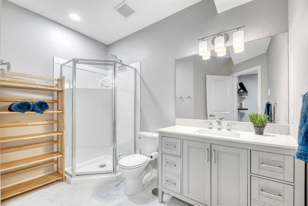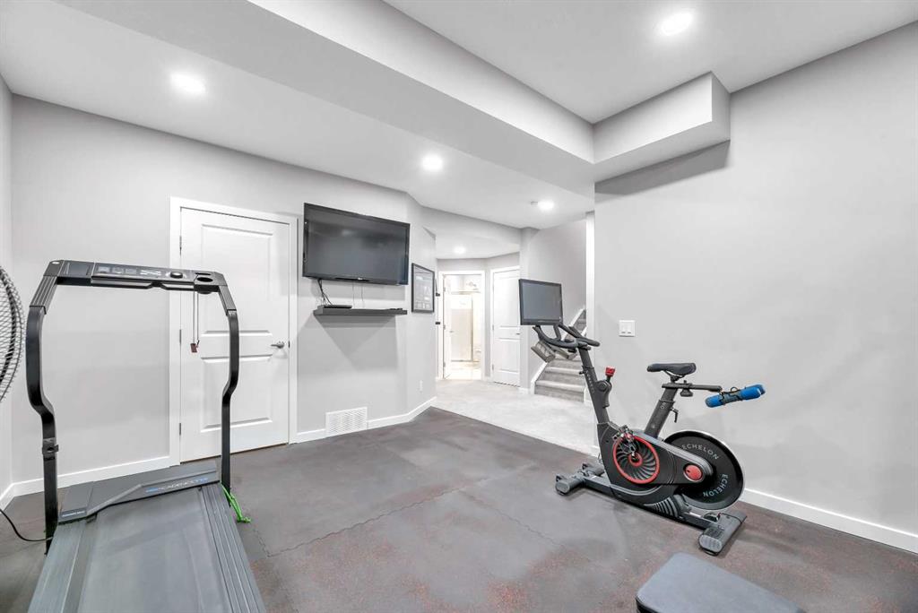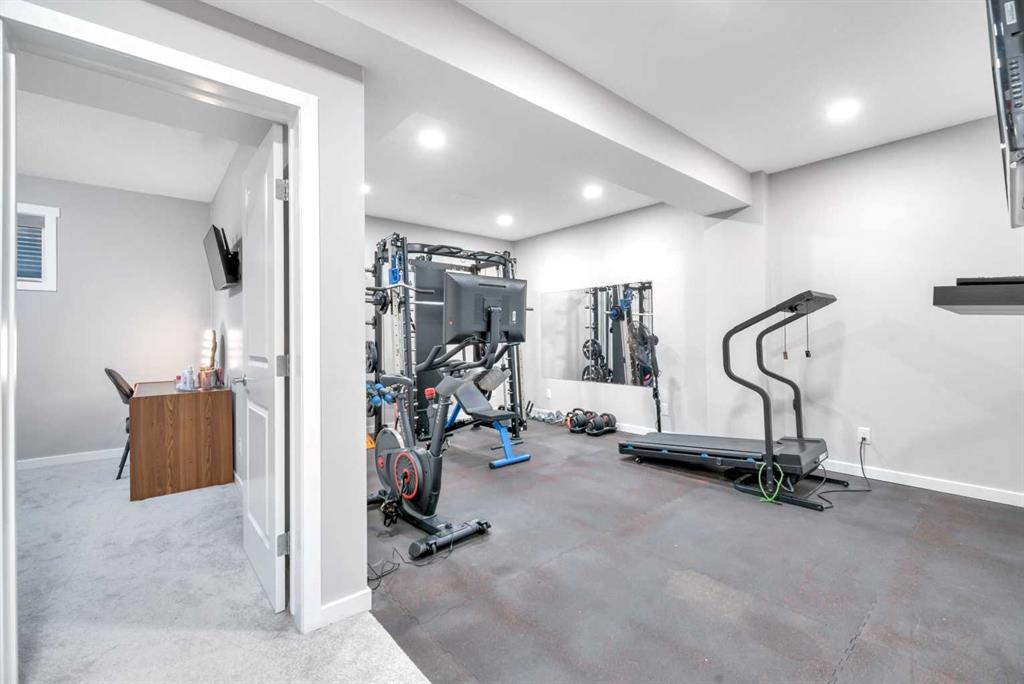 The fully developed basement hosts a gym that looks pro—with rubber matting that stays put—plus a fifth bedroom and a brand-new three-piece bath with heated floors and storage. The double attached garage offers infrared heating and a mezzanine storage area for every gadget and gadgetry. Freshly painted and move-in ready, this beauty is just waiting for you to bring the fun and chaos! No work to do—just bring yourself and your personal vibe!