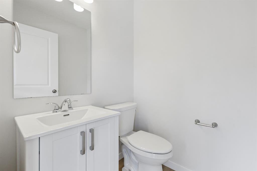 Welcome to this stylish and affordable freehold townhouse with no condo fees. Located on a corner lot in the desirable community of Valarosa, this home offers nearly 1,500 sq ft of functional living space with thoughtful design and family-friendly features. The main level includes an attached garage big enough for a truck , spacious utility/storage room, and direct access to the backyard — offering both practicality and convenience. Upstairs, the bright and spacious main floor boasts an open dining area, cozy living room, and a modern kitchen complete with white soft-close cabinets, white quartz countertops, a pantry, and vinyl plank flooring in a warm, neutral tone. This level also includes a 2-piece bathroom and access to your private rear deck — ideal for relaxing or entertaining. On the third floor, you’ll find three generously sized bedrooms, a 4-piece bathroom, and a convenient upstairs laundry room. The primary bedroom features dual closets, providing excellent storage space. Carpet flooring adds warmth and comfort to the bedrooms and hallway. Set on a corner lot, this townhouse offers a spacious fully fenced and landscaped backyard, a side yard, and a front yard — a rare find. Located just steps from a scenic protected forest area with walking paths and local wildlife, and close to a playground and baseball diamond, this home is perfect for families looking for space and community. Don’t miss your chance to own this well-crafted home in a peaceful, family-oriented neighbourhood.