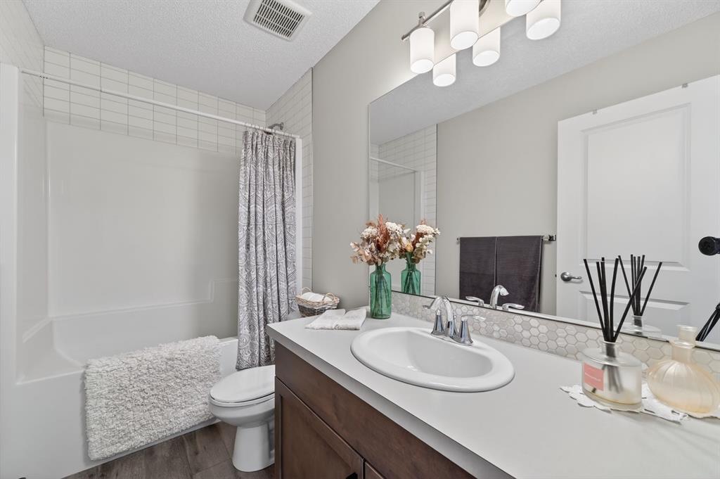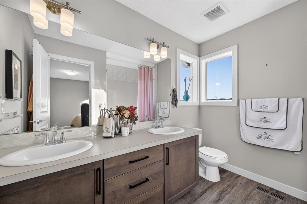 Flooded with plenty of windows and abundant natural light throughout, the home feels airy and inviting from the moment you step inside. Premium finishes elevate every space, including luxury vinyl plank flooring on the main level and in all bathrooms for easy maintenance and a modern feel. The impressive kitchen is a true highlight, boasting loads of cupboards and countertop space, sleek quartz countertops, and a complete Whirlpool stainless steel appliance package. Thoughtful details continue with stylish stair railing, low-maintenance Hardiboard siding on the exterior, professional front yard landscaping that set this home apart. The primary bedroom comes complete with a spacious 5-piece ensuite bathroom and a generous walk-in closet—perfect for unwinding and staying organized.