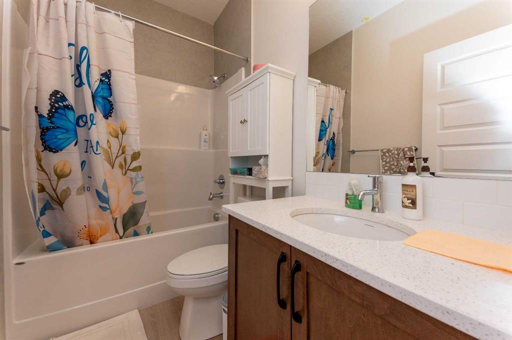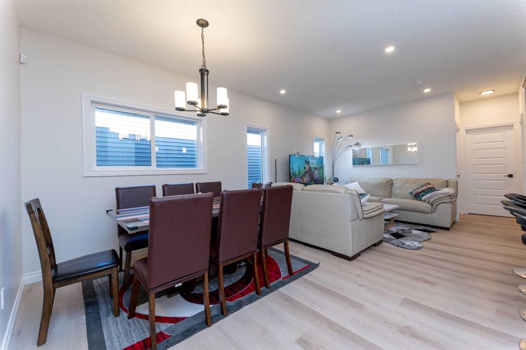 Welcome to this impressive newly built detached home offering exceptional space, functionality, and investment potential in the thriving community of Homestead. Featuring a double front-attached garage and a thoughtfully planned layout, this residence delivers five bedrooms and three full bathrooms across three fully developed levels. The main floor is designed to impress with its bright, open-concept configuration and seamless flow. The contemporary kitchen serves as the heart of the home, showcasing a large center island, modern cabinetry, ample counter space, and a spacious walk-in pantry. The adjoining dining and living areas provide a comfortable yet elegant setting for both entertaining and everyday family life. Two generously sized bedrooms and a full four-piece bathroom on this level offer rare main-floor flexibility—ideal for guests, aging parents, or a dedicated home office. Upstairs, the primary suite provides a private and relaxing retreat, complete with a walk-in closet and a well-appointed four-piece ensuite. A conveniently located upper-level laundry room enhances practicality and day-to-day convenience. The fully developed basement with a separate side entrance significantly expands the home’s possibilities. It features two additional bedrooms, a four-piece bathroom, and a large recreation/family room. An outstanding opportunity for homeowners and investors alike in one of Calgary’s fastest-growing and most promising communities.