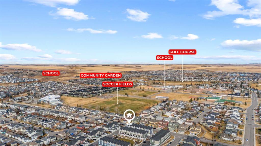 This well-maintained home is ideally positioned in a convenient and family-friendly location. You are within walking distance of Our Lady Queen of Peace Elementary School, C. W. Perry Middle School, ponds, playgrounds, walking paths, and Woodside Golf Course. Everyday amenities including Sobeys, restaurants, gas station, and local shops are only minutes away. Commuting is smooth with quick access to 8 Street, Veterans Boulevard, and easy connectivity to Deerfoot Trail. You are also a short drive from Airdrie Main Street, Genesis Place Recreation Centre, and the new Airdrie Public Library, making this property a perfect blend of comfort, accessibility, and lifestyle.