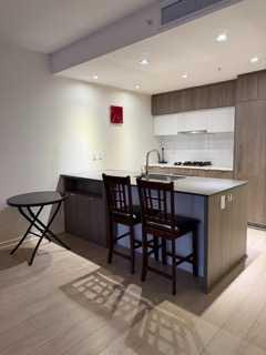 Inside, the layout is efficient and open, with large windows bringing in consistent daylight and showcasing the river views. The living space flows into a modern kitchen with built-in appliances, quartz countertops, clean finishes, and a central island that works well for everyday meals or hosting friends. In-suite laundry and secure storage add to the convenience.